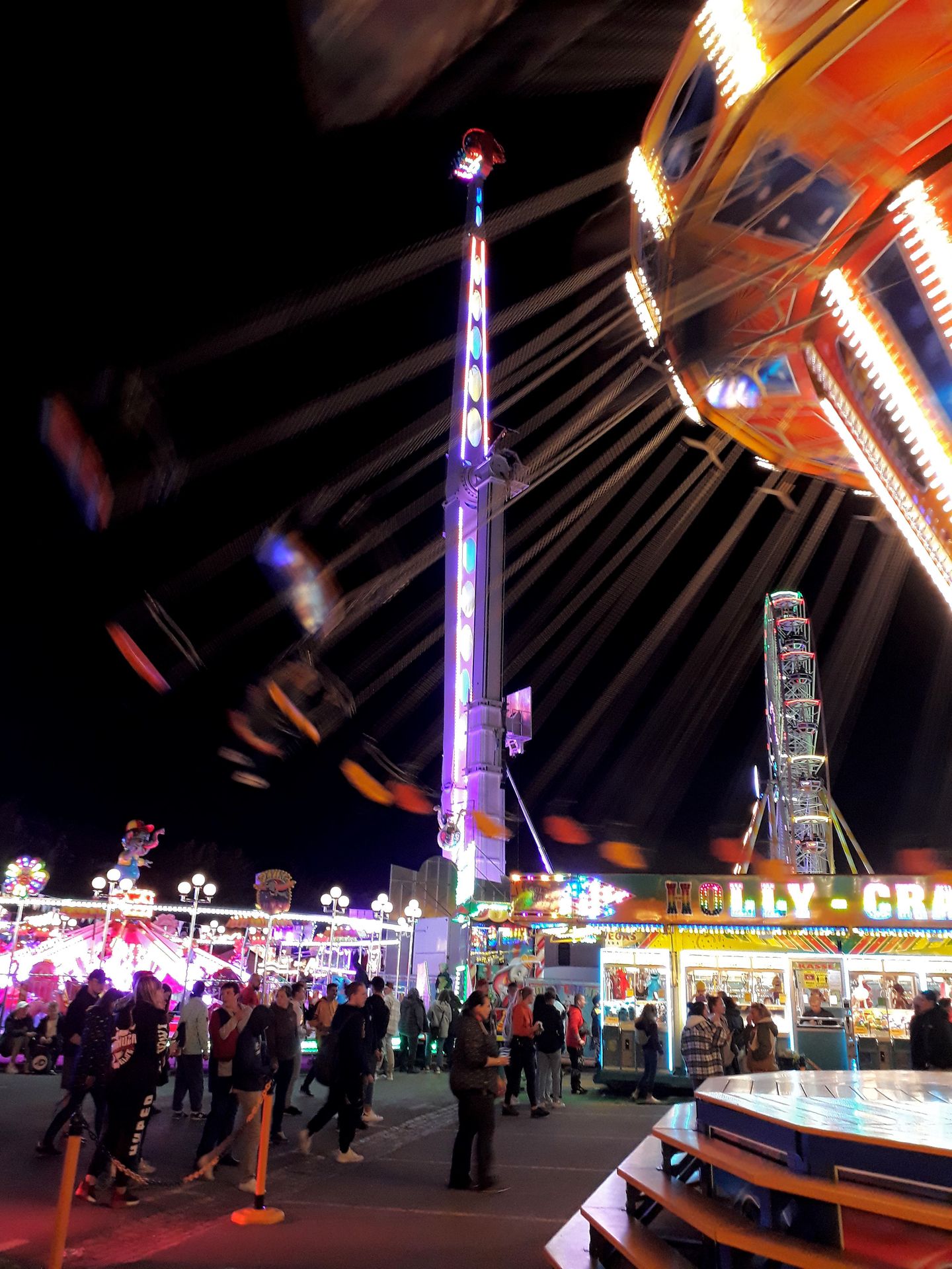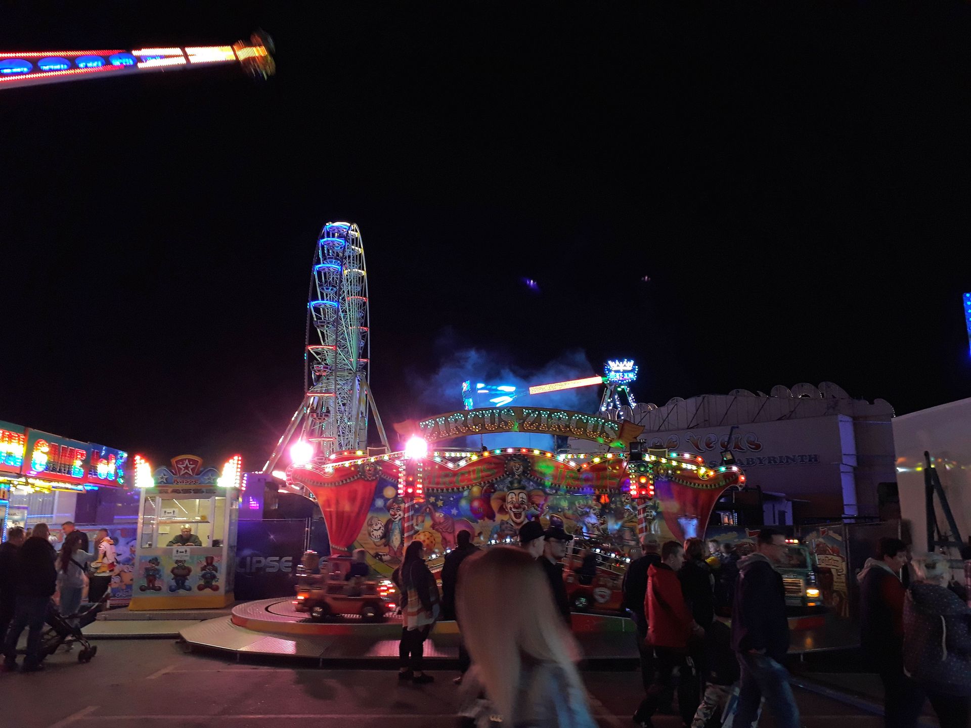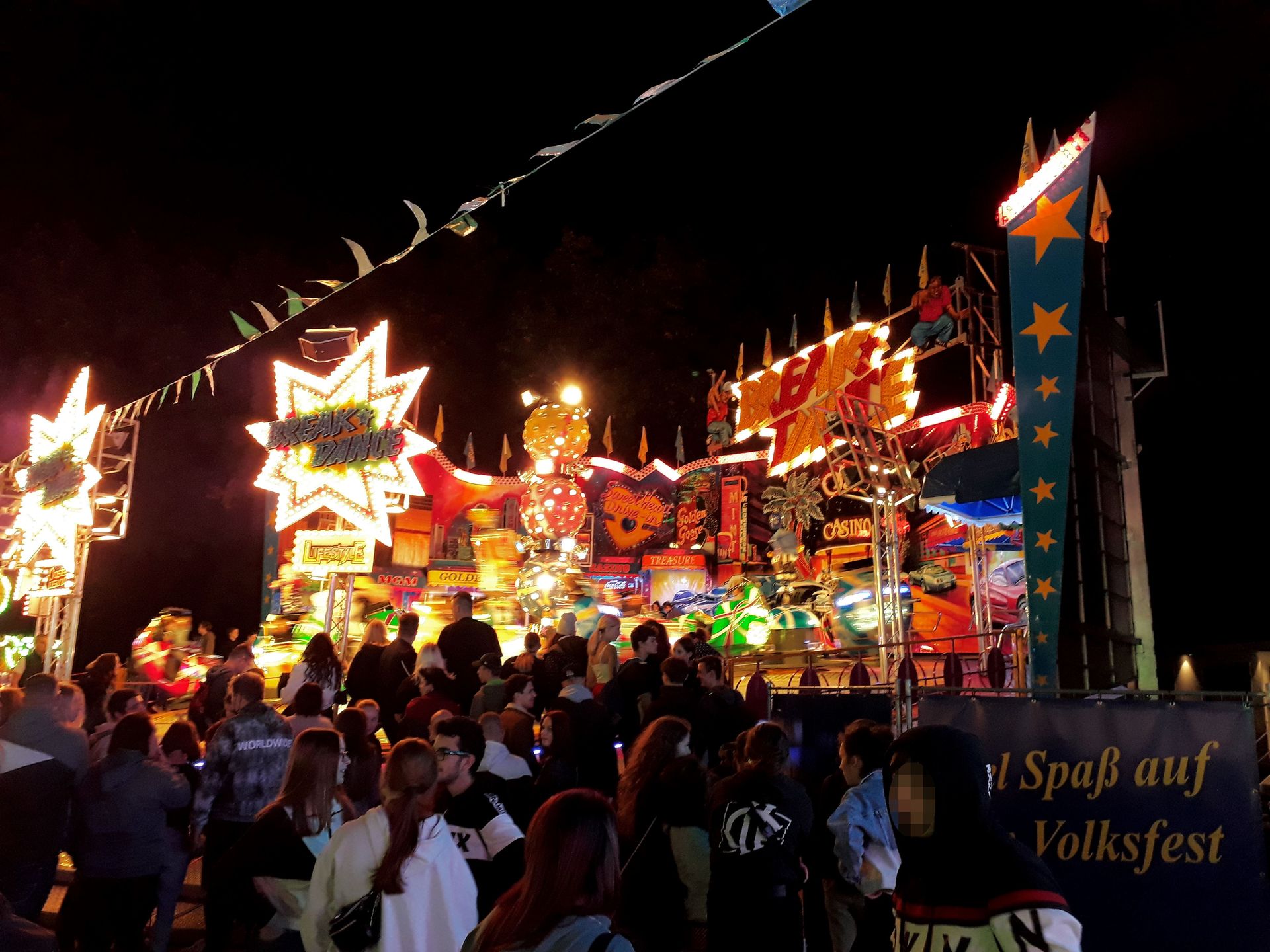 Kurz nach 21:30 Uhr ging es dann auch endlich los. Leider dauerte es etwas, bis alle Schausteller es mitbekommen und die Lichter ausgeschaltet hatten.