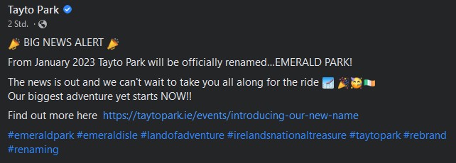 Tayto Park and Tayto Snacks announce that the Title Sponsorship for one of Ireland’s most popular attractions will come to an end on the 31st of December 2022.
