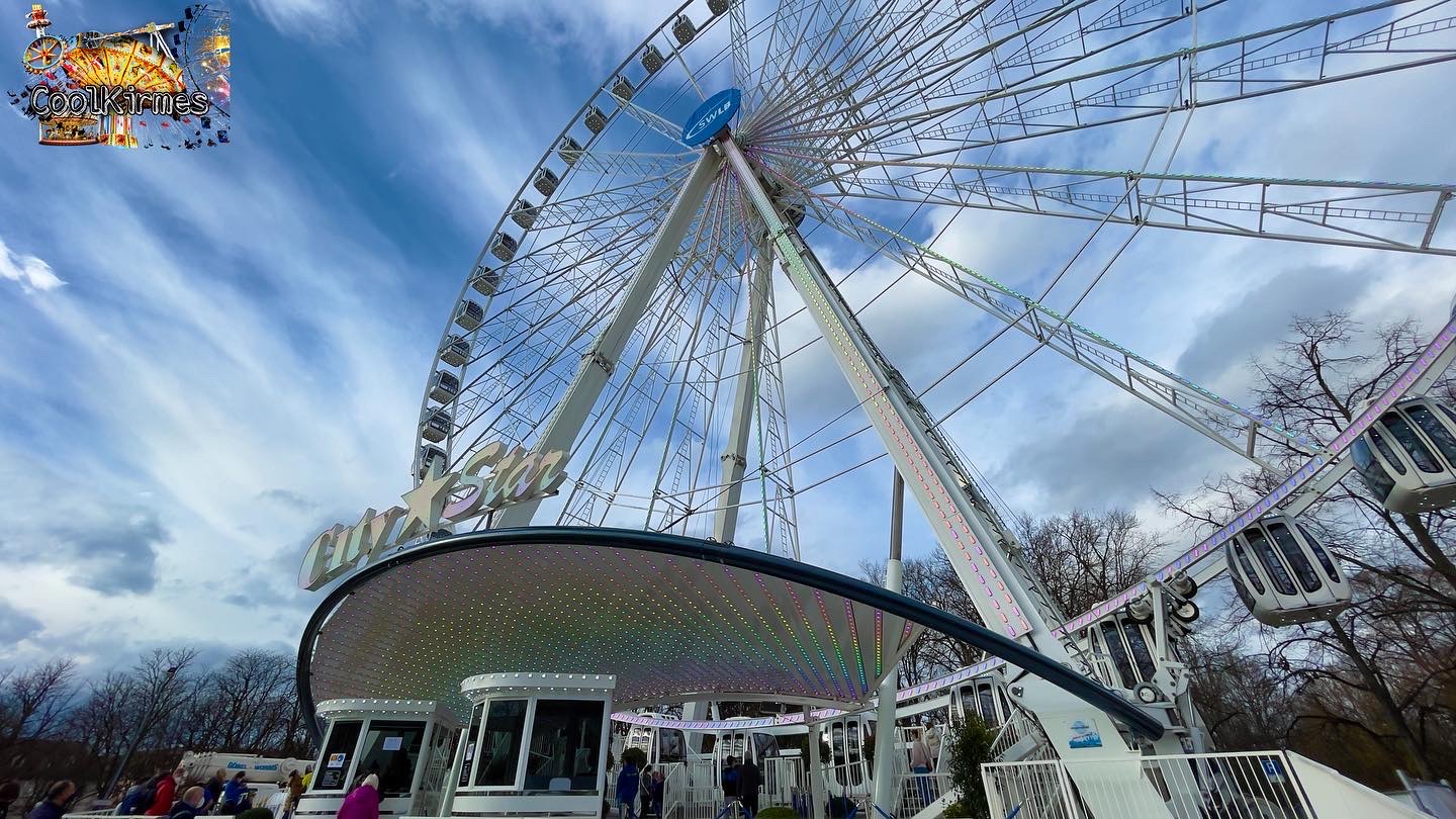 Mit rund 70m Höhe und 48 geschlossenen Gondeln ist der City Star das größte mobile Riesenrad der Welt.