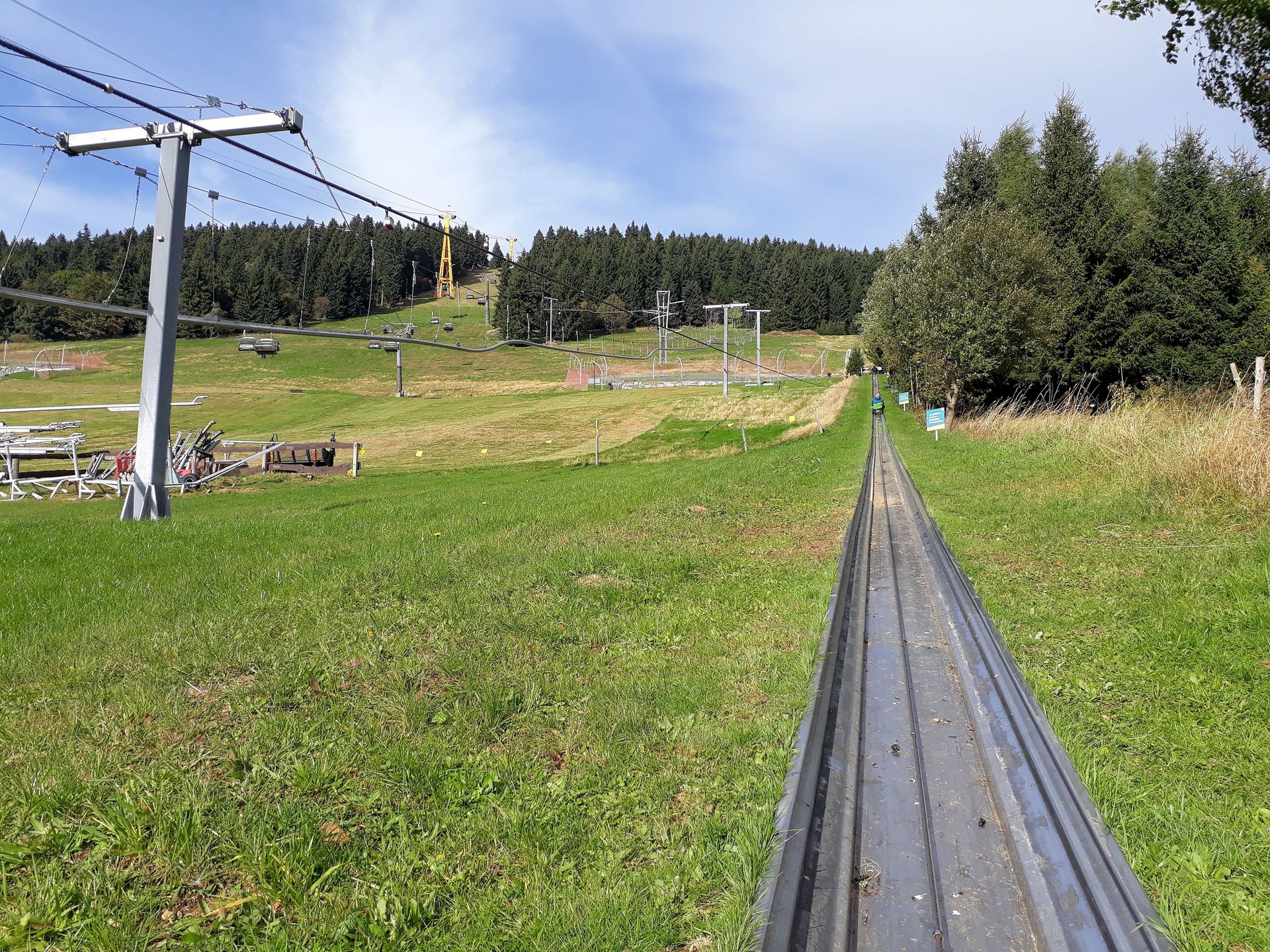 Gleich daneben gibt es übrigens noch eine Sommerrodelbahn. Die war 1992 - natürlich - die erste in den neuen Bundesländern.
