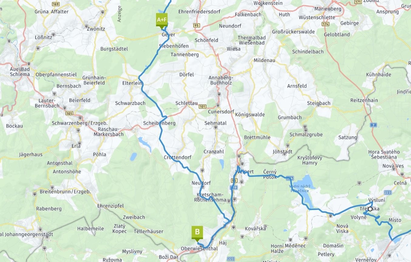 Letztere kostete mit Bergfahrt im Sessellift übrigens 18€, die Fahrt mit der Rodelbahn war für 3€ zu haben. Eingeplant hatte ich für Oberwiesenthal eine dreiviertel Stunde, das kam auch ziemlich genau hin. Knapp zwanzig Minuten vor Zwölf machten wir uns auf den Weg nach Tschechien, die Grenze war ja wie erwähnt nicht weit...