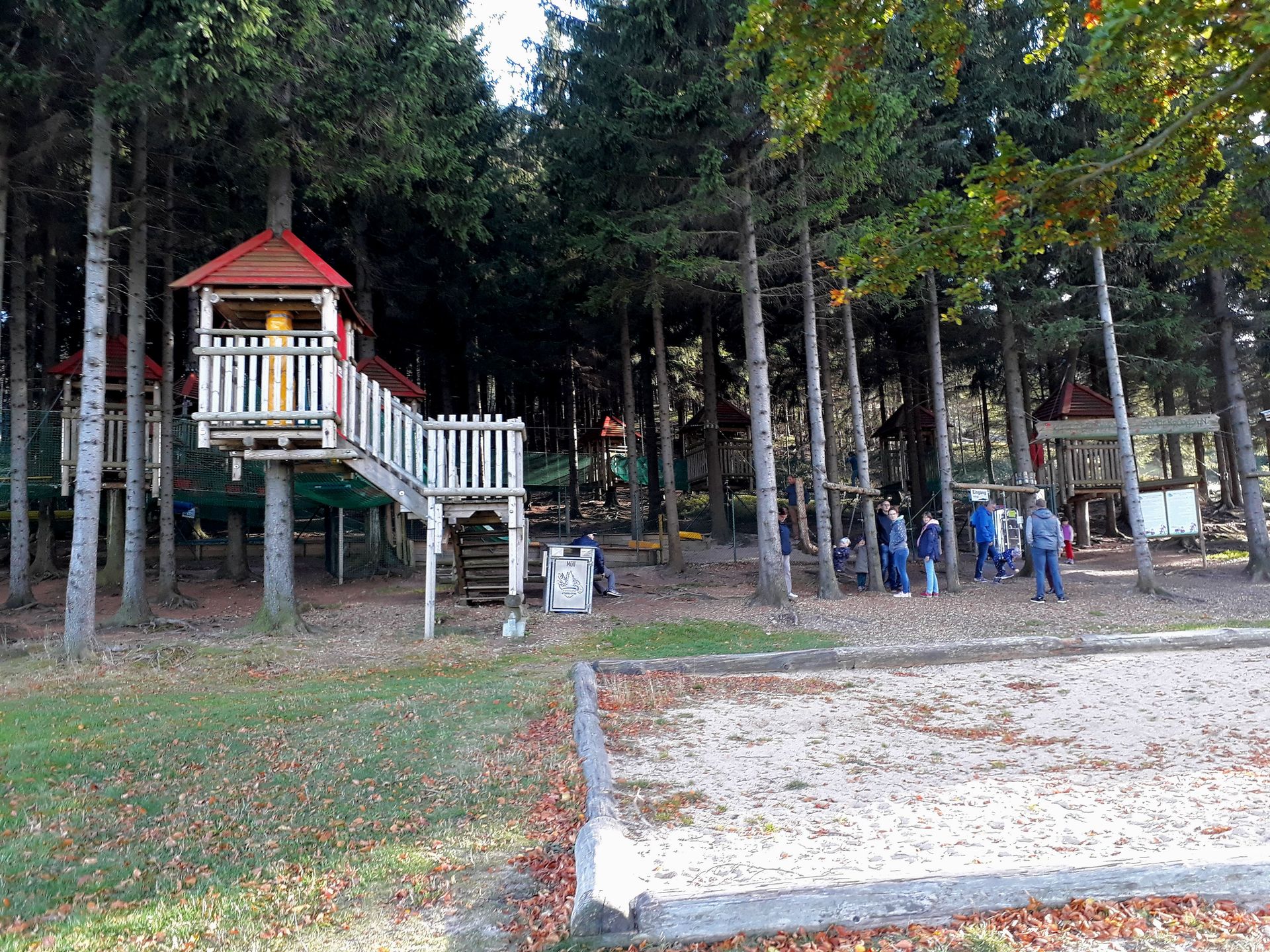 Etwas weiter trifft man dann endlich auf die übrigen Attraktionen des Erlebnisbergs. Darunter Trampoline und Spielplatz.
