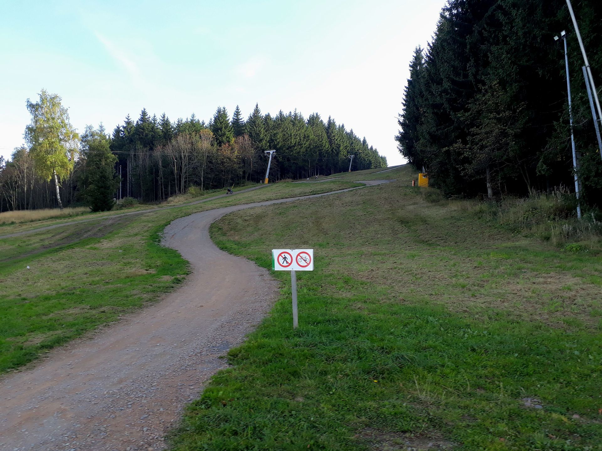 Unser Ziel war Altenberg, ein weiterer Kurort, dessen Wurzeln im Bergbau liegen. Später entwickelte sich die Stadt aufgrund der schneesicheren Lage zu einem internationalen Wintersportzentrum mit Skisprungschanze und Eisstadion, wobei letztere in den 1950er-Jahren verschwanden. Dafür gibt es seit 1986 eine Bobbahn - also so eine richtige, die Stahlwanne für Sommer-Touristen kam erst 1994. Und letztere war - unter anderem - unser Ziel. Der 826 Meter hohe Berg Altes Raupennest erhebt sich unmittelbar neben dem Ort. Parkplatz und Zugang zum Erlebnisberg Altenberg befinden sich direkt an der Hauptstraße.