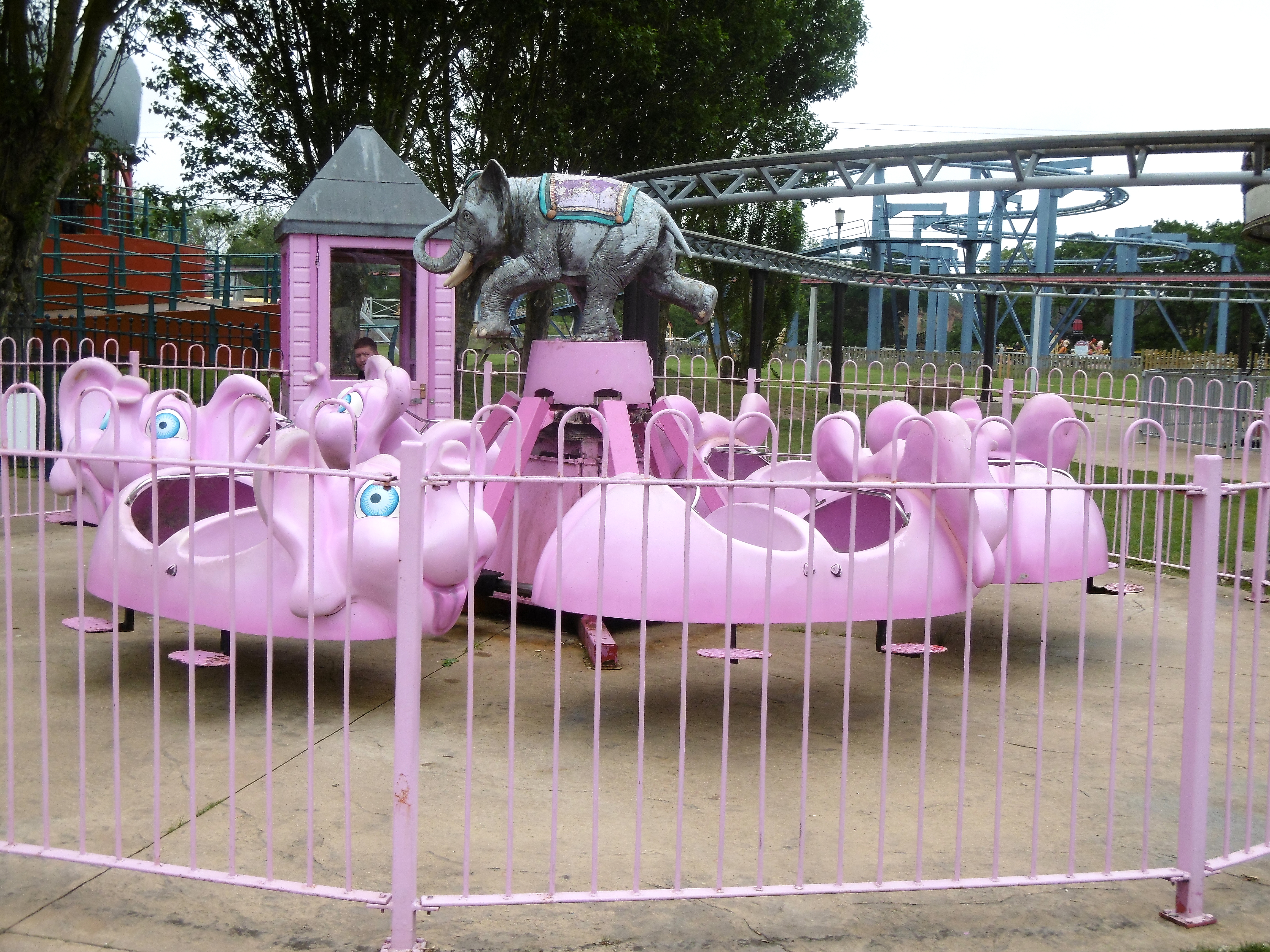 Früher fanden sich direkt neben der Bahn auch die Pink Elephants, die zusammen mit der oberhalb zu sehenden Cycle-Monorail für die neue Achterbahn Platz machen mussten.