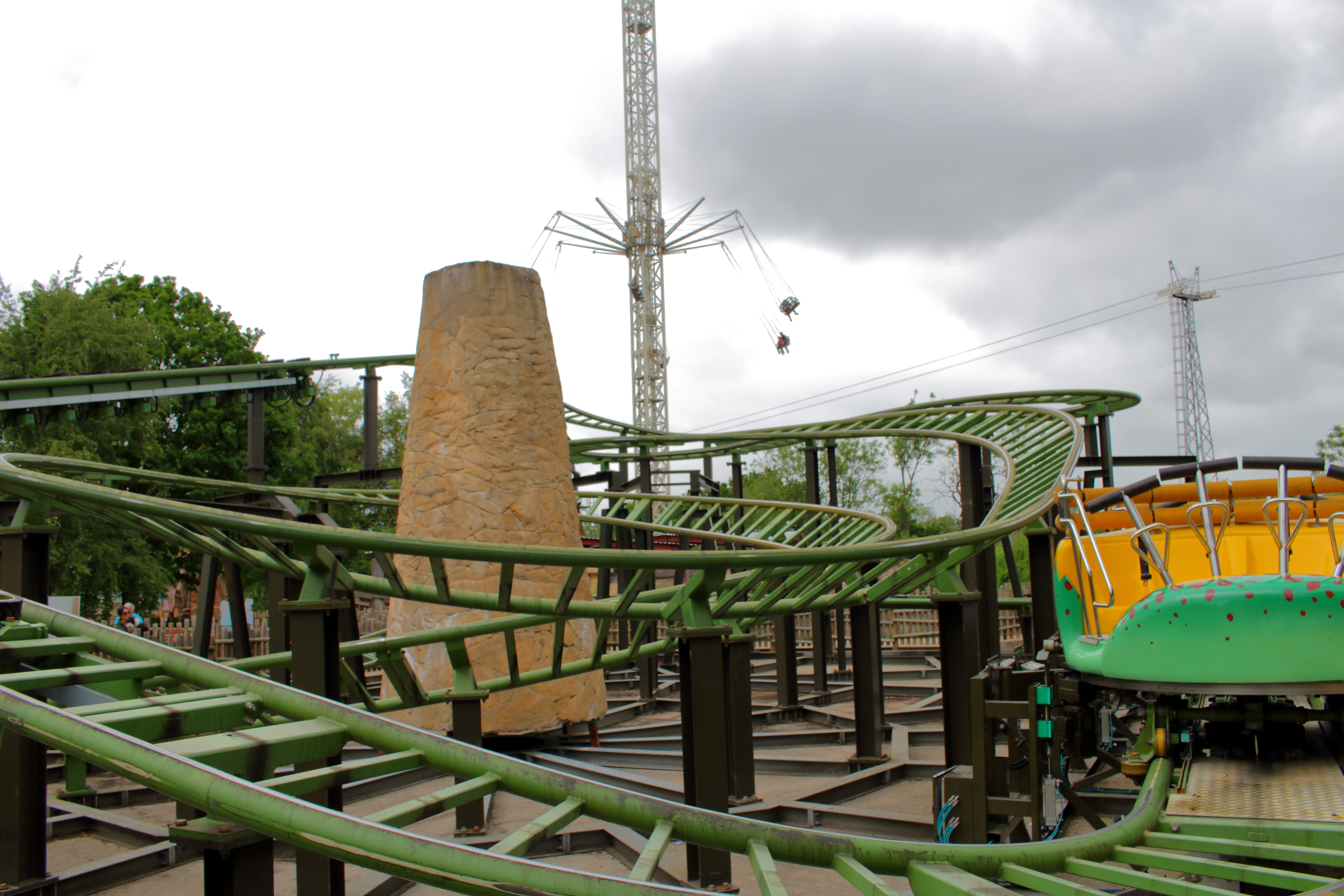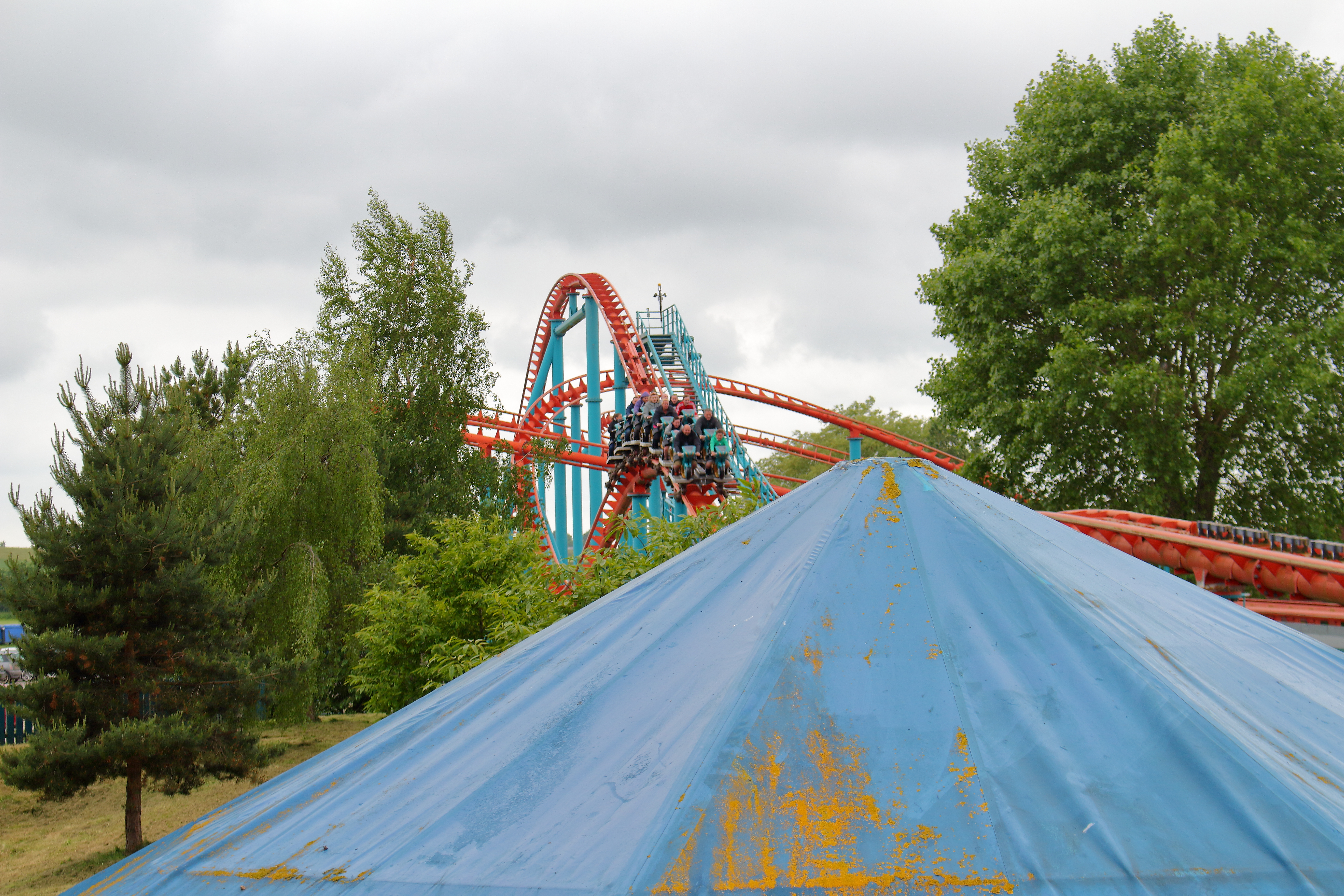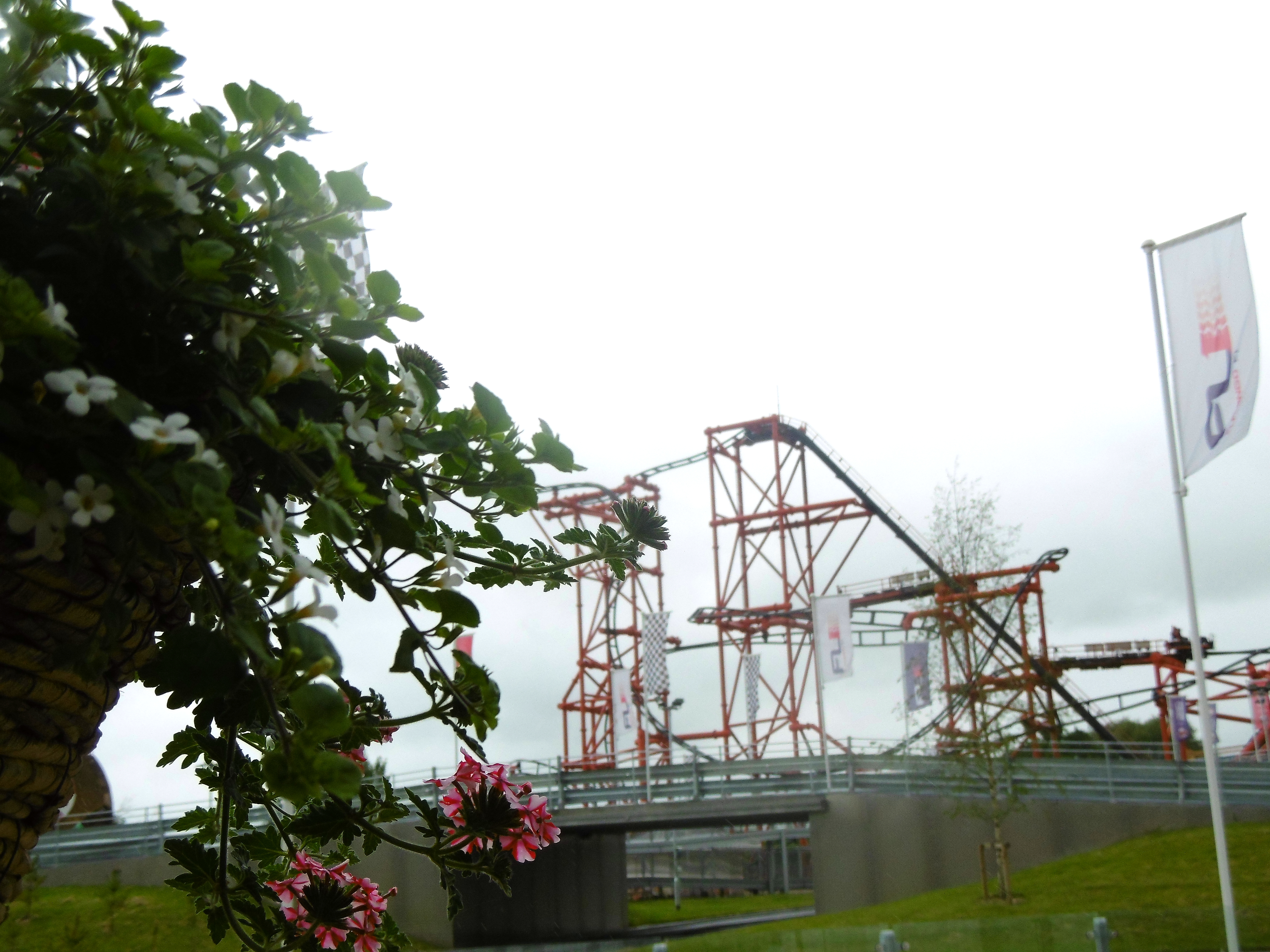 Vom Eingangsbereich führen nun drei Wege in den Park hinein. Geradeaus (nach Norden) gehend wird die Thrillecke erreicht, in der seit diesem Jahr eine neue große Achterbahn einem direkt ins Gesicht lächelt. Zu unserem Besuchszeitpunkt war von dieser jedoch noch nichts zu sehen …
