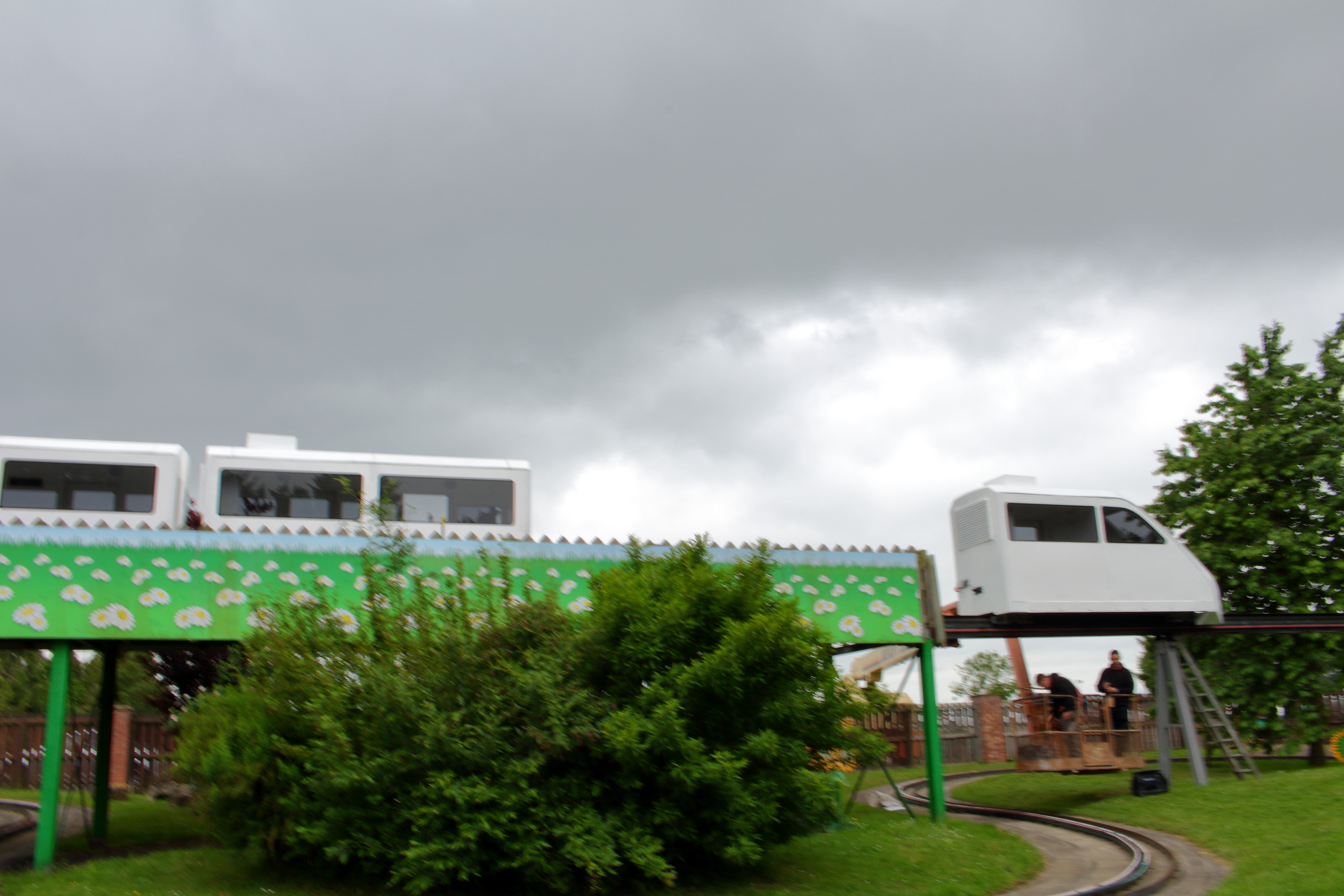 Da wir etwas vor Parköffnung um 10 Uhr in den Park konnten, mussten wir mit der Fahrt jedoch kurz warten, da uns der Operator mitteilte, dass er erst ab 10 Uhr fahren dürfe. Nach kurzer Wartezeit durften wir uns das kleine lustige Bähnchen ein paar Runden über uns ergehen lassen. Ein kleiner Ausblick auf noch kommende Berichte: Diese Bahn stand früher mal in Gullivers Warrington.