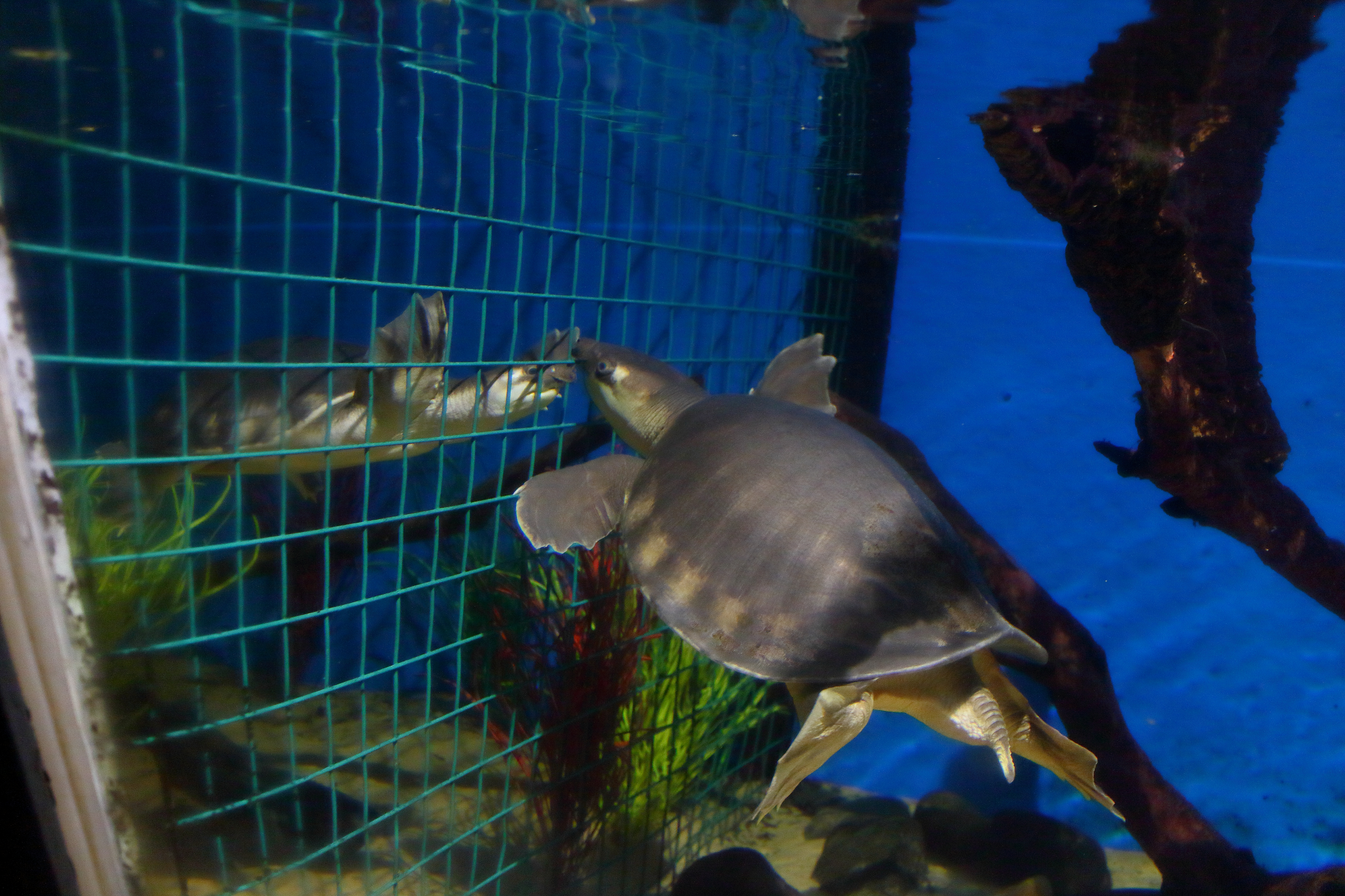 … mit Schildkröten und diversen Fischarten untergebracht.