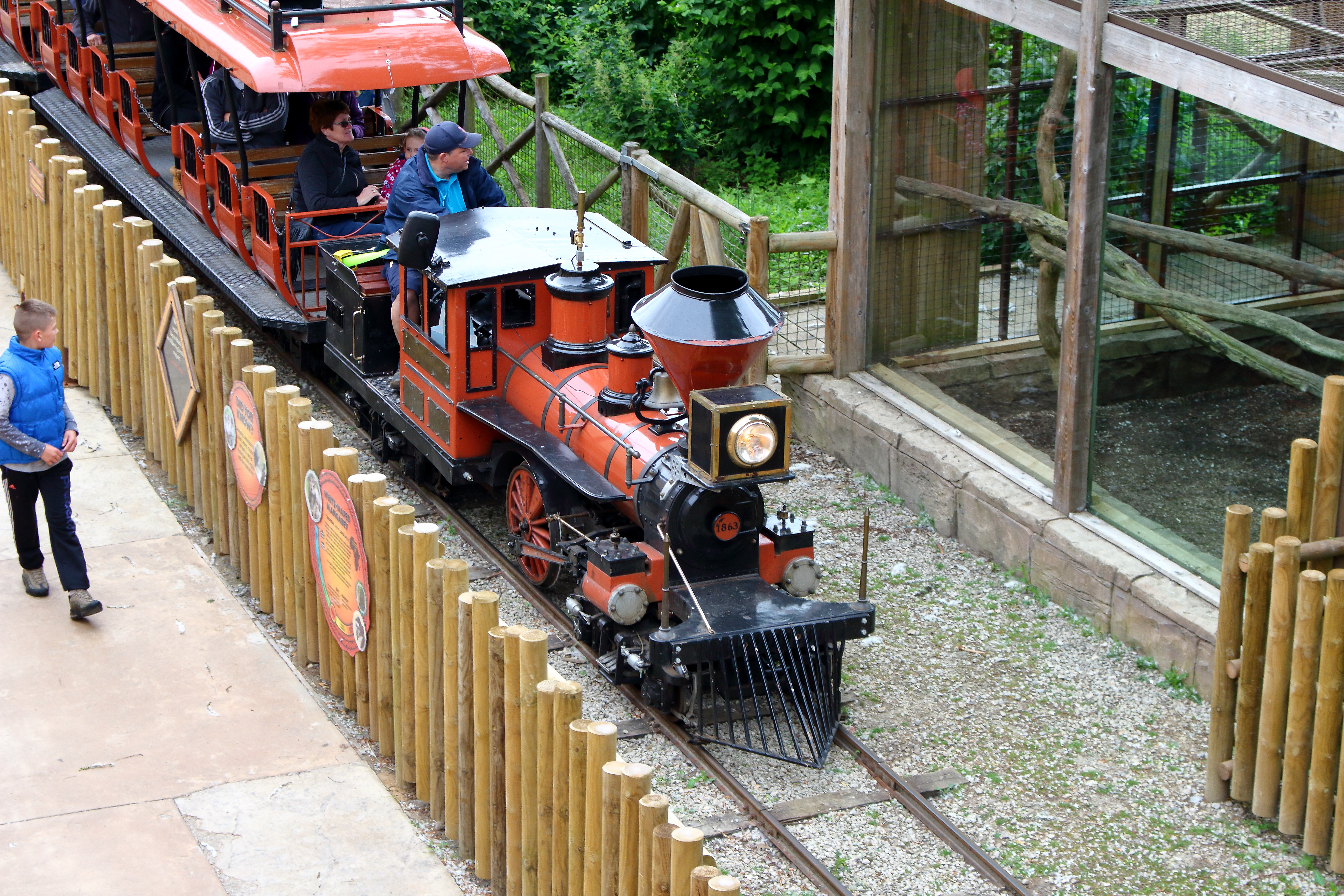 Vom Tigergehege könnte man auch direkt dort nach hinten laufen oder dato in einer der drei Stationen der Parkeisenbahn Daktari Express einsteigen.