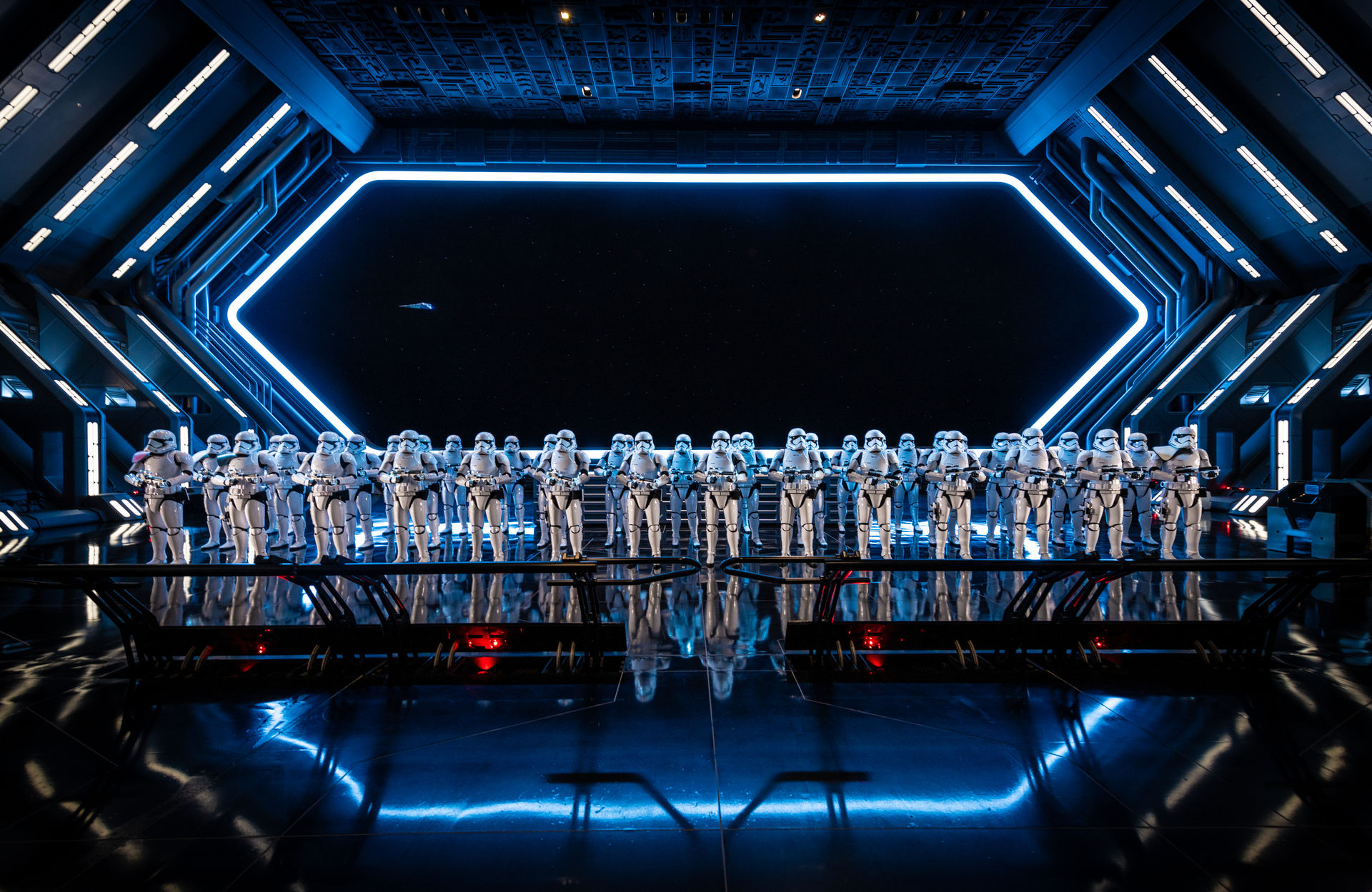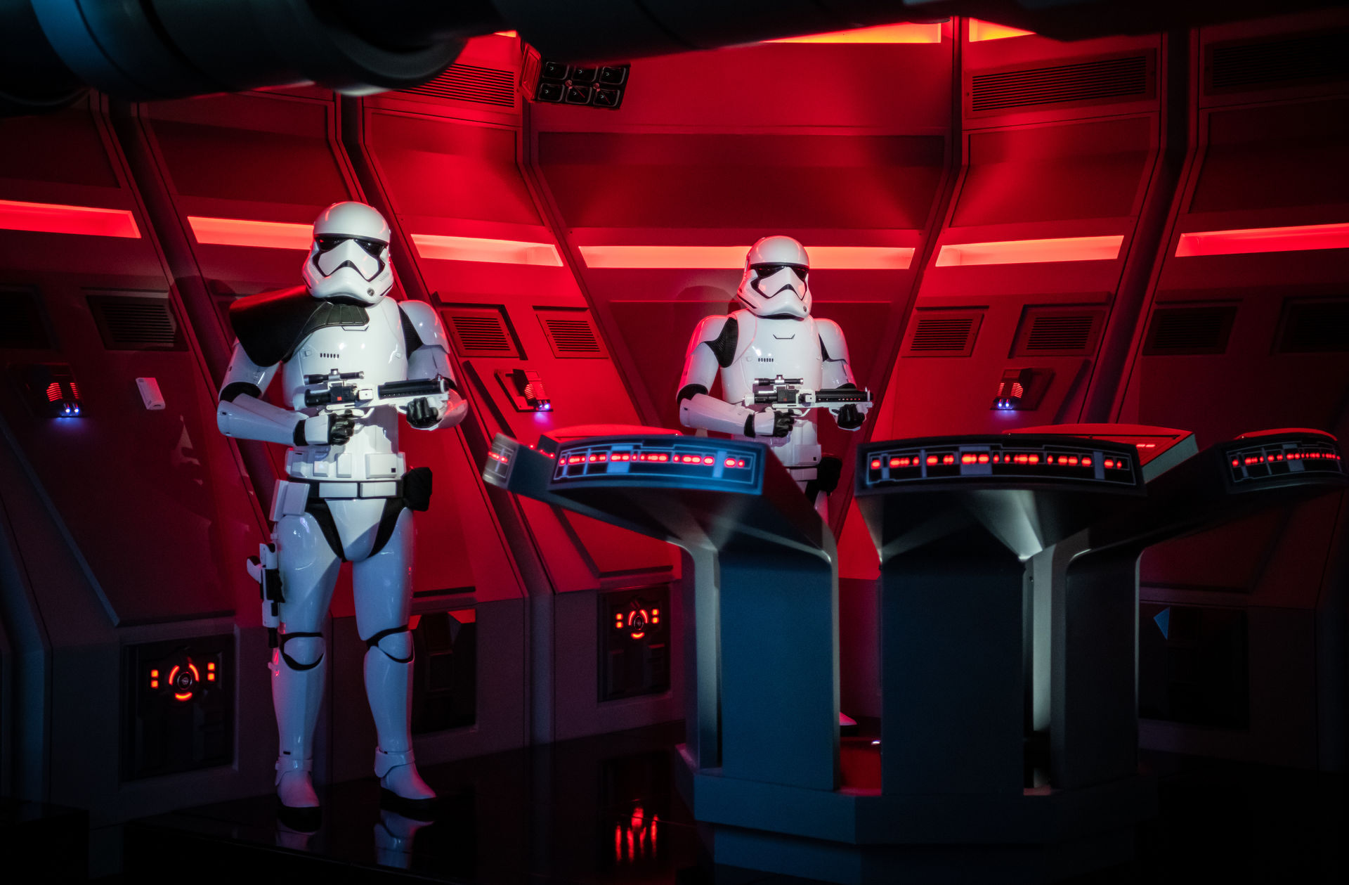 Das Boarding zum eigentlichen Ride wird von Sturmtruppen der ersten Ordnung bewacht.