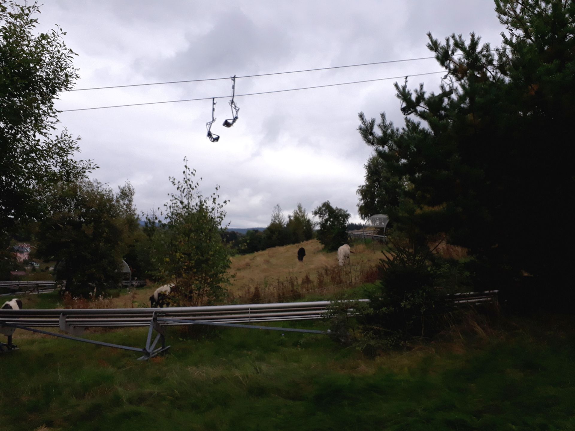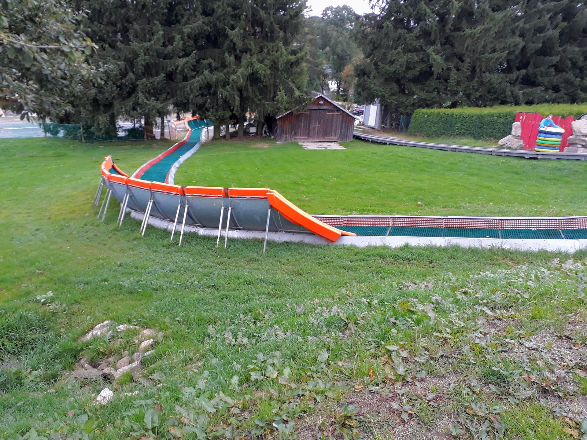 Fazit: Auf den ersten Blick wirkte dem Wurzelrudi seine Erlebniswelt auf mich etwas eingezwängt am Ortsrand, da die Talstation des modernen Sessellifts noch irgendwie zwischen die bestehenden Anlagen gequetscht werden musste, aber insgesamt macht die Anlage dann doch eine ganz gute Figur. Trotz des bescheidenen Wetters war man pünktlich betriebsbereit - ist ja auch nicht überall selbstverständlich - und begrüßte uns sehr freundlich. Die Allwetterbobbahn gehört sicherlich nicht zu den Top-Anlagen, hat mir dank S-Kurven, Jumps und Vegetation (auch wenn letztere ein wenig die Aussicht auf den Ort raubt) aber dennoch ziemlich gut gefallen. Und dank der frühen Öffnung ließ sich der Zwischenstopp hervorragend mit unserem eigentlichen Tagesziel kombinieren.