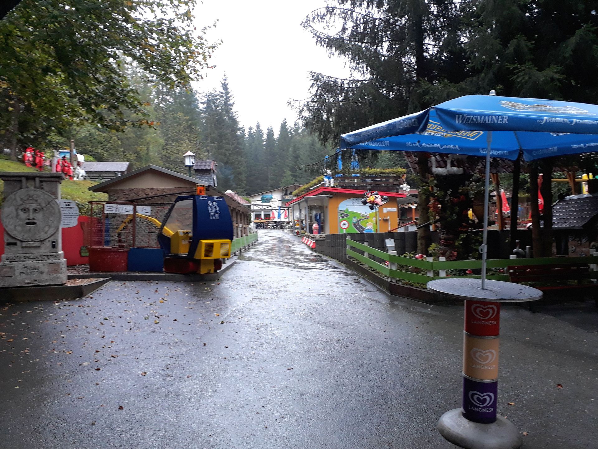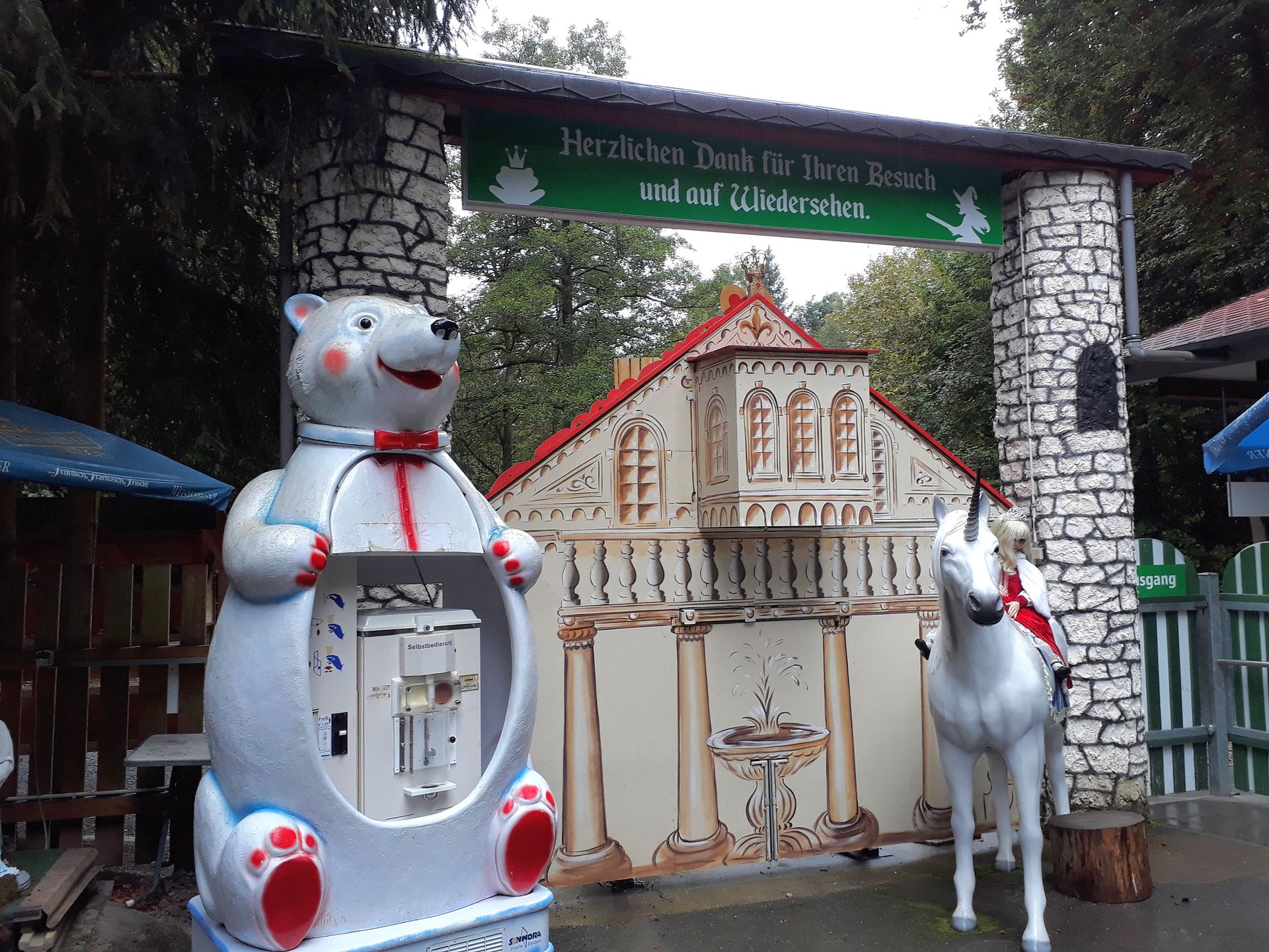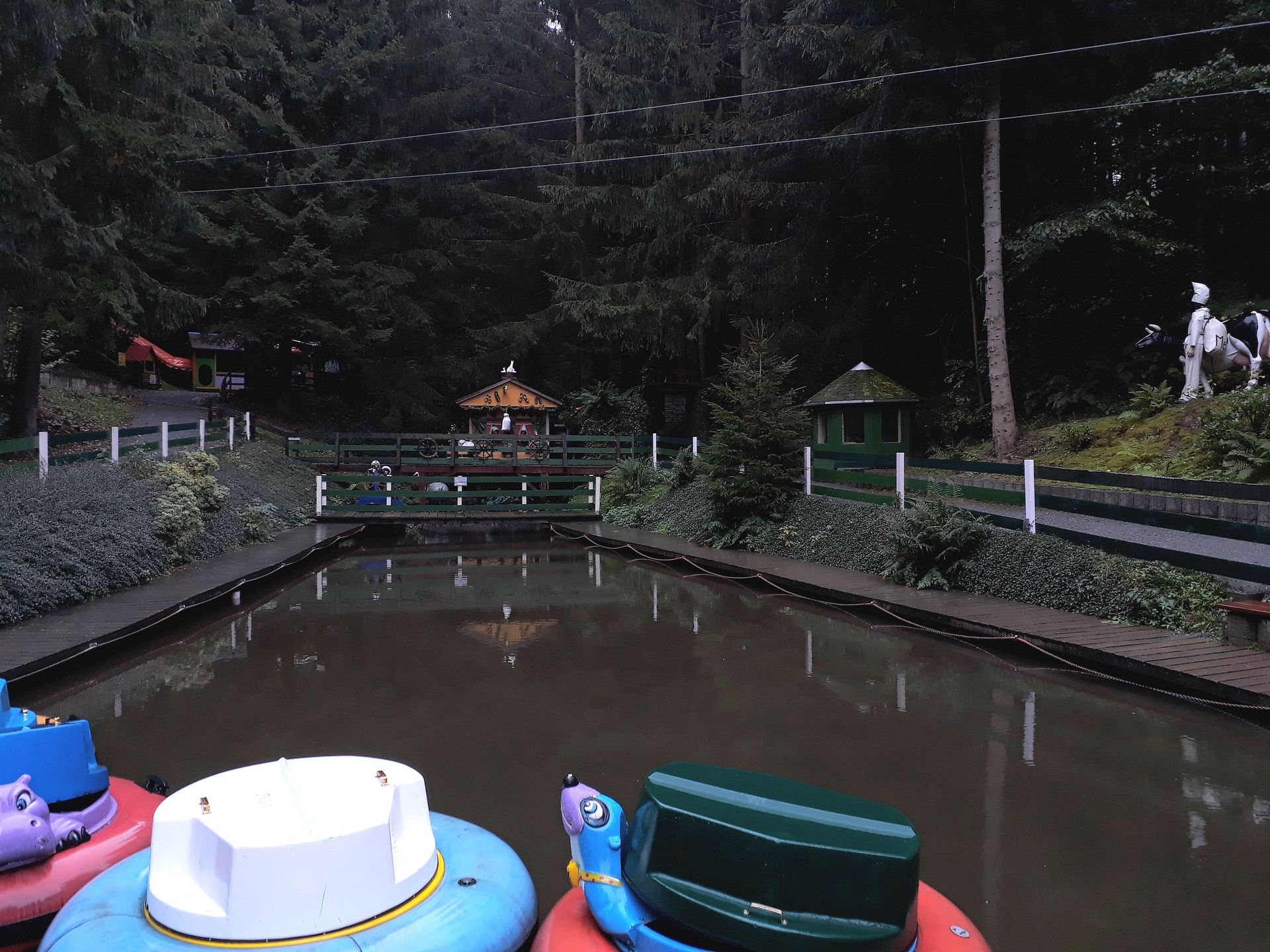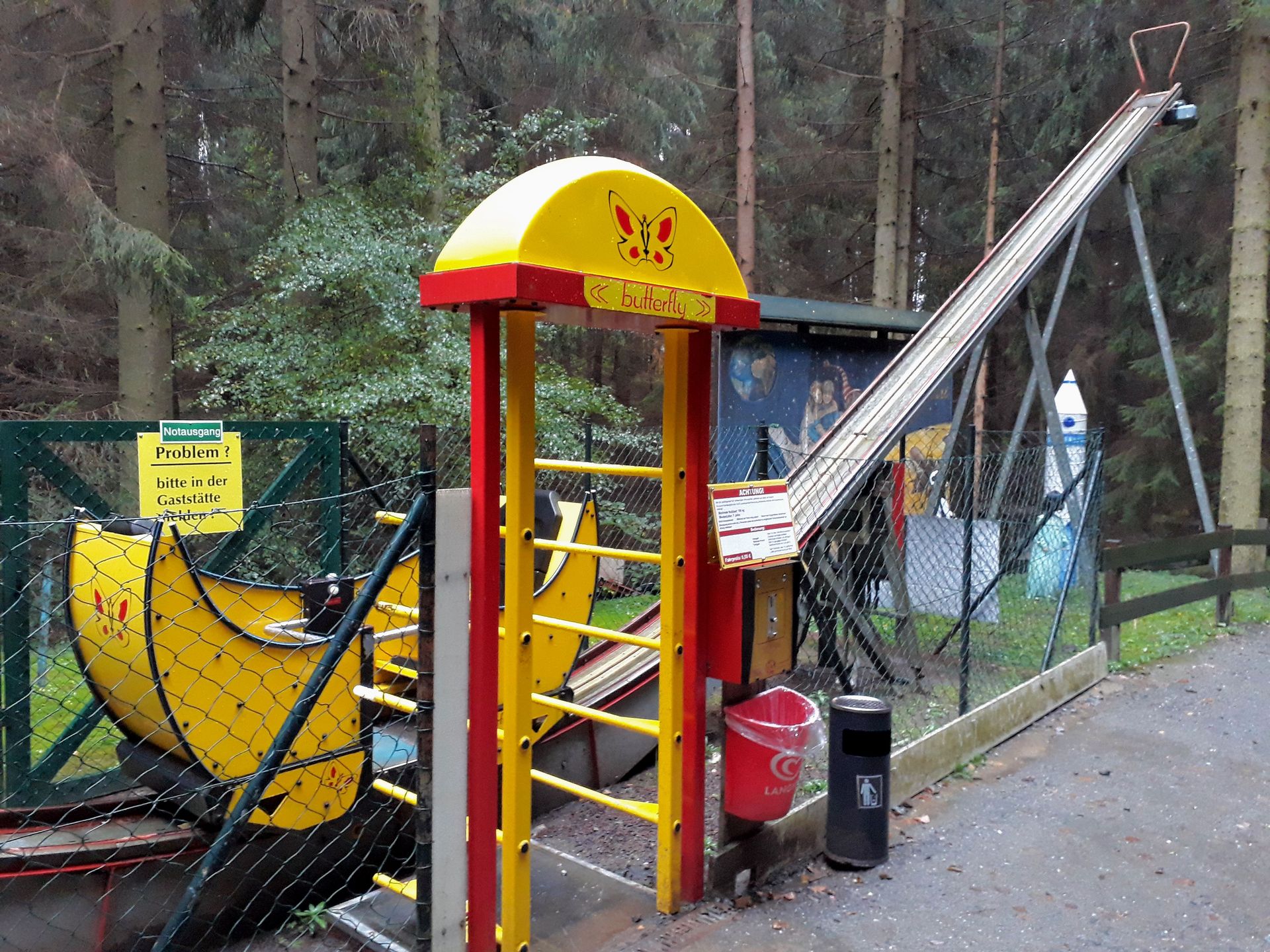 Fazit: Bei über 40 ausgestellten Märchen kann man kaum alle kennen. Schön gemacht und gepflegt sind sind sie aber alle und die bekannteren sind auch ohne Schilder schnell erkannt. Überrascht hat mich, wie weit sich der Park in den Wald hinein zieht, dafür ist er aber eben sehr schmal. Positiv hervorzuheben ist auch, dass man trotz des schlechten Wetters geöffnet hatte, wir waren schließlich die einzigen Besucher weit und breit. Andererseits halten sich die Betriebskosten wohl in Grenzen, die paar Fahrgeschäfte im Stand-by fallen sicherlich kaum ins Gewicht. Zwar waren (noch) nicht alle Attraktionen einsatzbereit, aber zumindest der Butterfly lief. Und das war ja die Hauptsache.