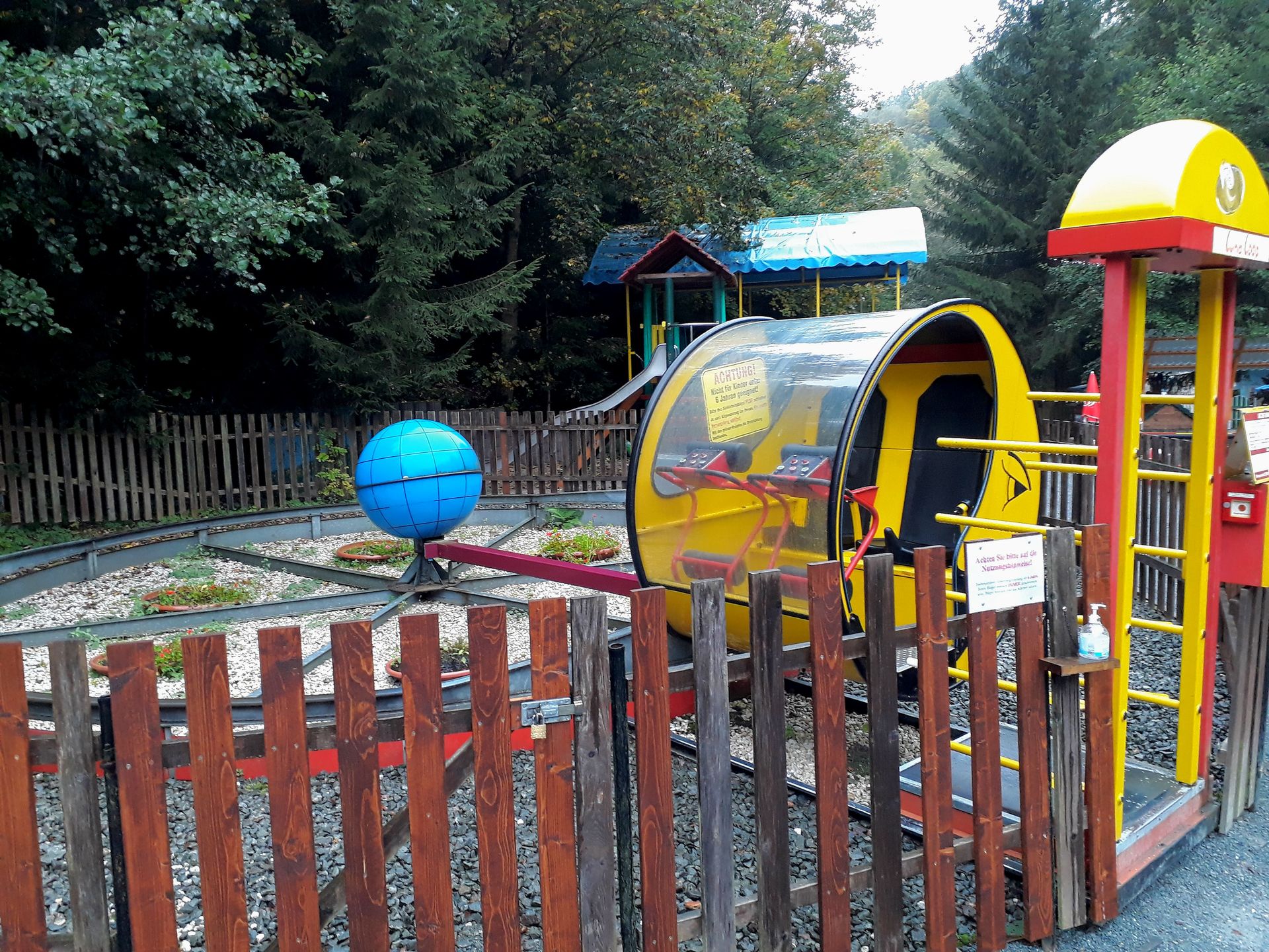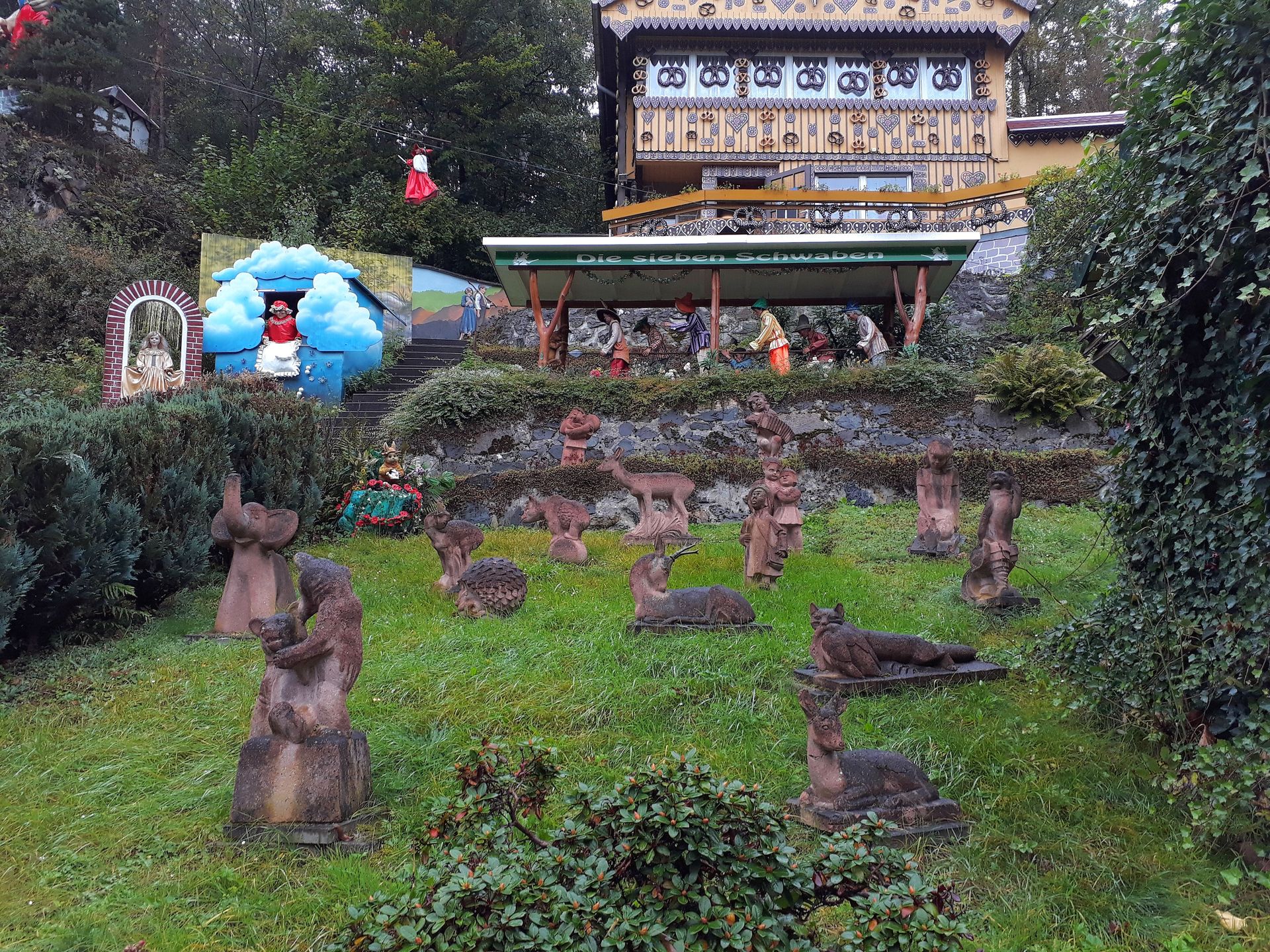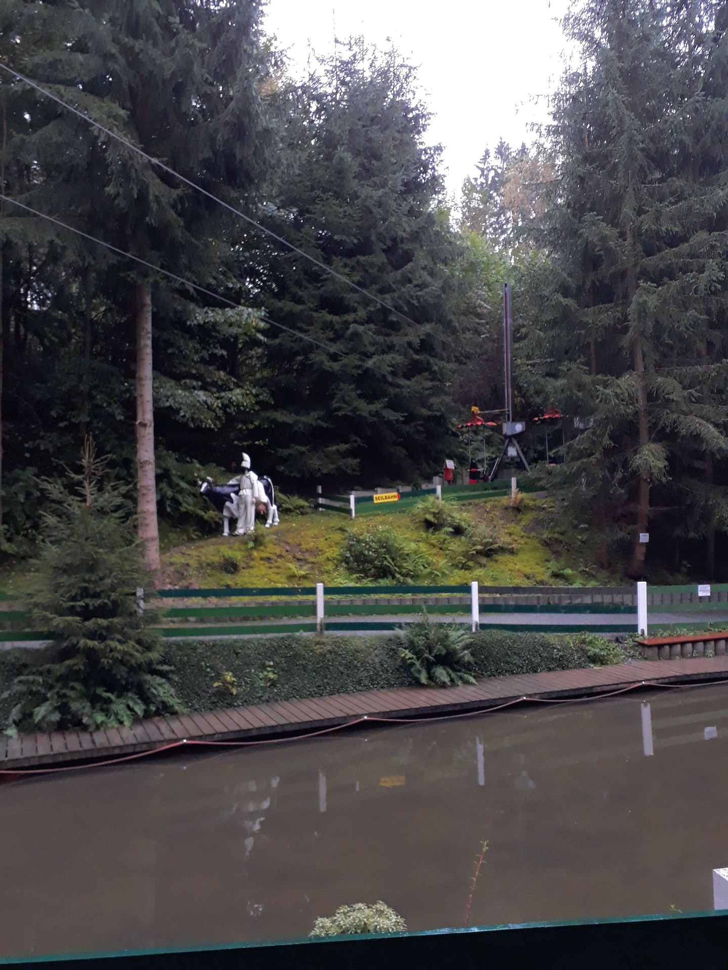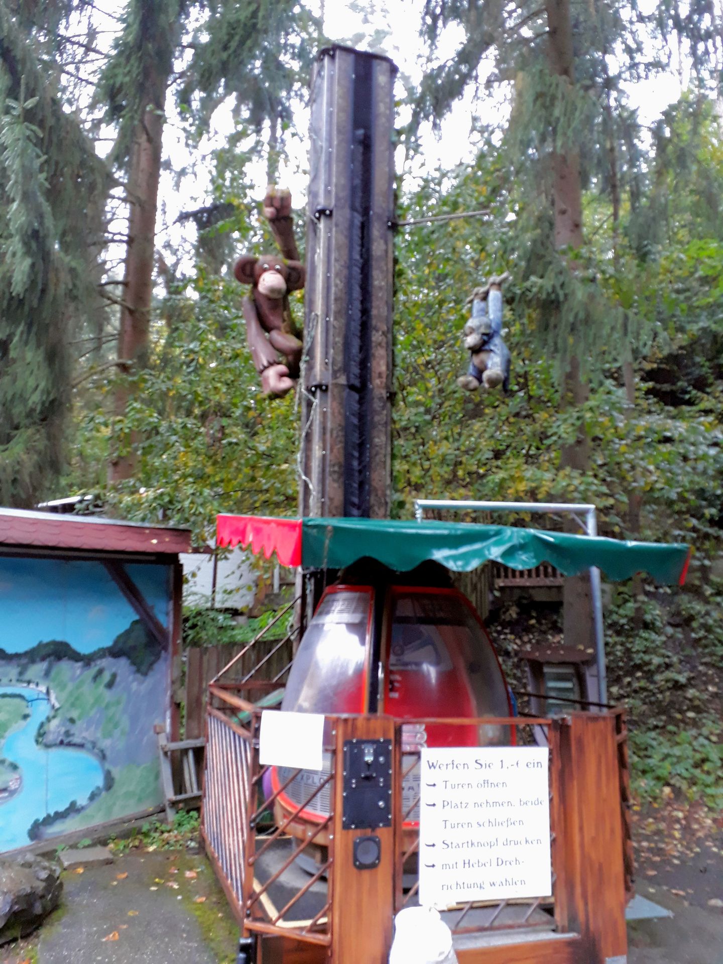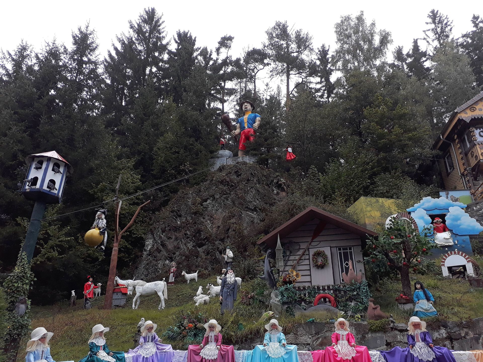 Fazit: Bei über 40 ausgestellten Märchen kann man kaum alle kennen. Schön gemacht und gepflegt sind sind sie aber alle und die bekannteren sind auch ohne Schilder schnell erkannt. Überrascht hat mich, wie weit sich der Park in den Wald hinein zieht, dafür ist er aber eben sehr schmal. Positiv hervorzuheben ist auch, dass man trotz des schlechten Wetters geöffnet hatte, wir waren schließlich die einzigen Besucher weit und breit. Andererseits halten sich die Betriebskosten wohl in Grenzen, die paar Fahrgeschäfte im Stand-by fallen sicherlich kaum ins Gewicht. Zwar waren (noch) nicht alle Attraktionen einsatzbereit, aber zumindest der Butterfly lief. Und das war ja die Hauptsache.