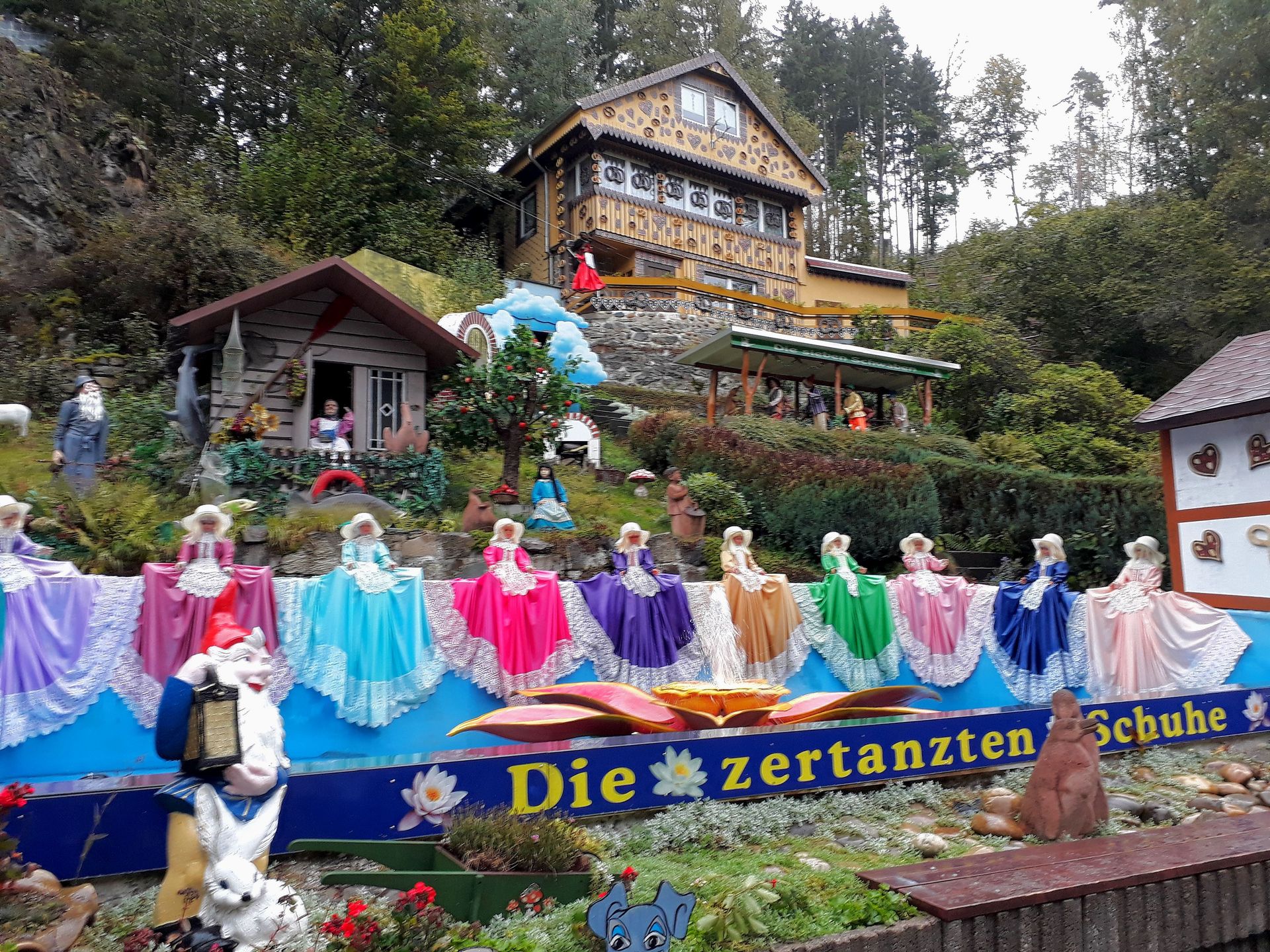 Dahinter sind einige größere Szenen an einem Hang verteilt, darunter auch "Die zertanzten Schuhe".