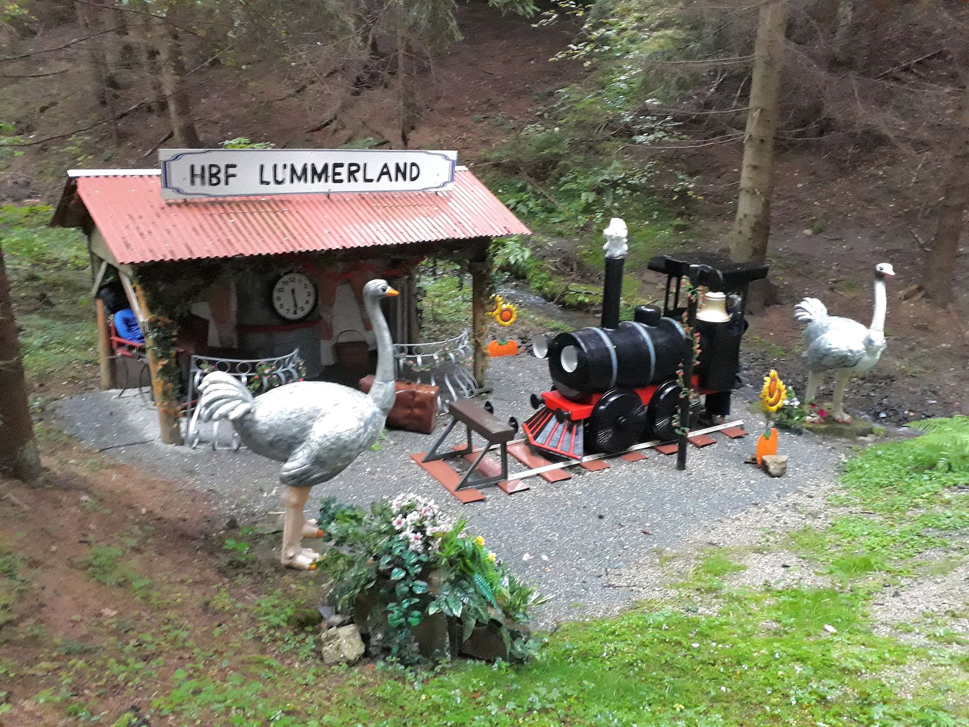 Der Weg führt als Sackgasse noch am Rumpelstilzchen vorbei zu einem Wildgehege, bis dorthin waren wir aber nicht mehr.