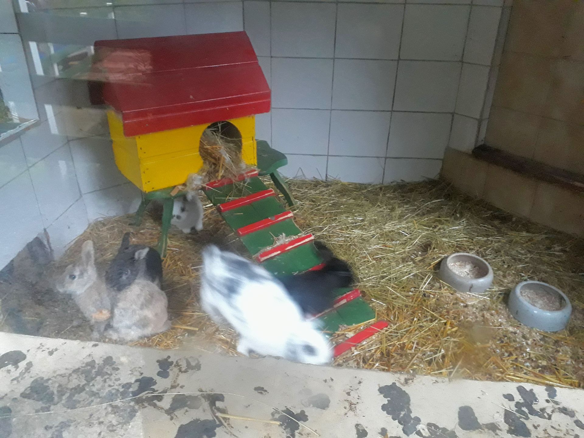 Der zentrale Gebäudekomplex mit der Gastronomie beherbergt auch ein kleines Kaninchen-Gehege.
