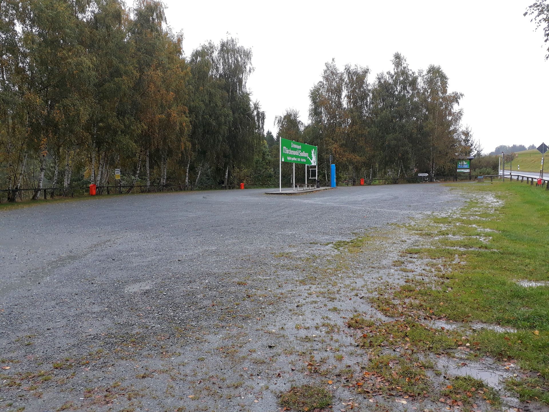 Da es beim Frühstück aber recht ordentlich auf das Dach des Wintergartens prasselte, ließen wir uns etwas mehr Zeit. Besserung war allerdings nicht wirklich in Sicht, sodass wir schließlich mit etwa einer halben Stunde Verspätung ins Auto sprinteten. Dem Navi folgend standen wir alsbald vor unserem Ziel, nur parken konnte man dort nicht - beziehungsweise war dies nicht vorgesehen. Wir mussten nochmals ein gutes Stück zurückfahren, der offizielle Parkplatz liegt irgendwo im Nirgendwo an der Landstraße (hatte ich auf dem Hinweg tatsächlich schon gesehen, wollte es aber trotzdem mal vor der Haustür versuchen ).
