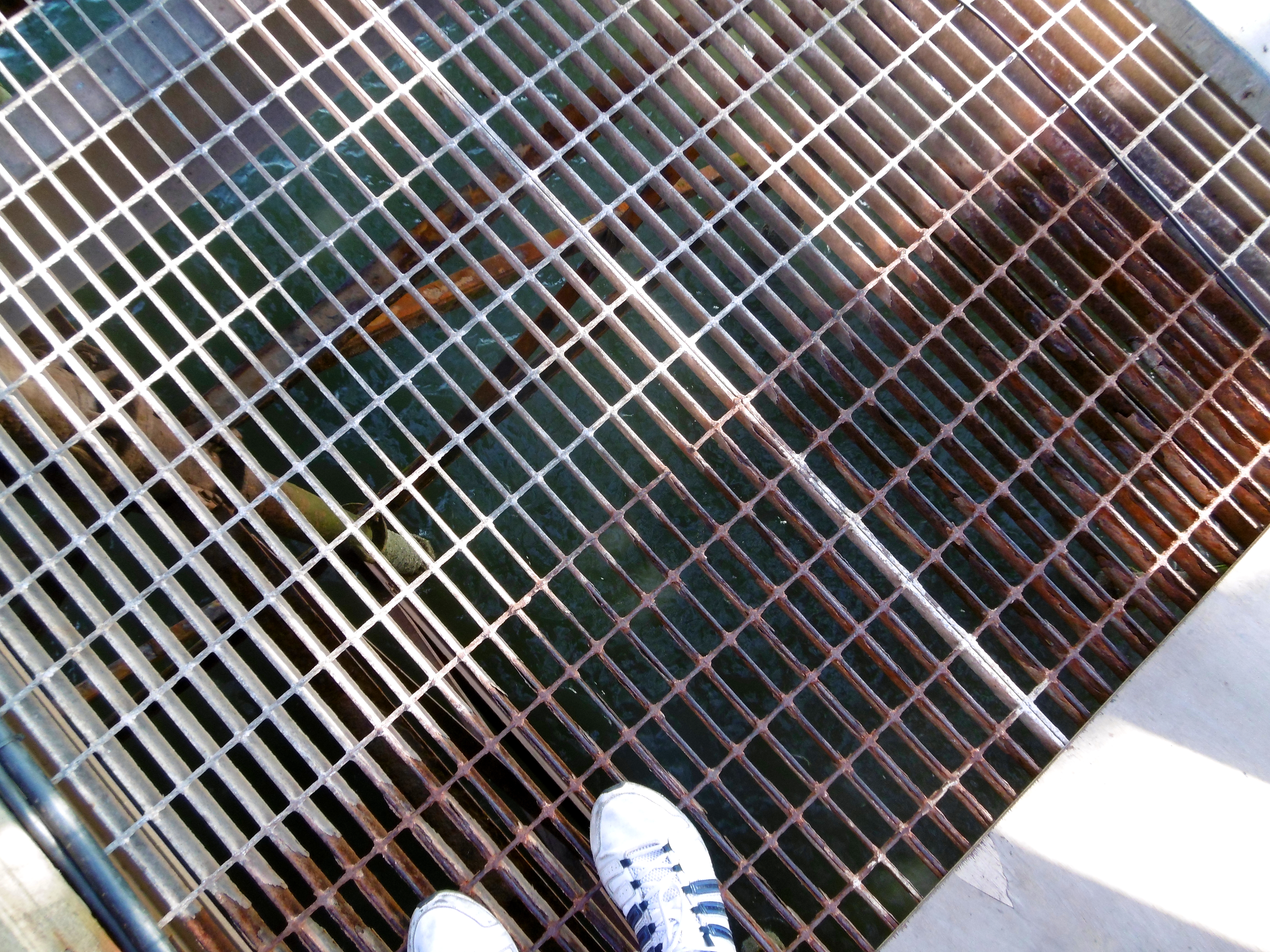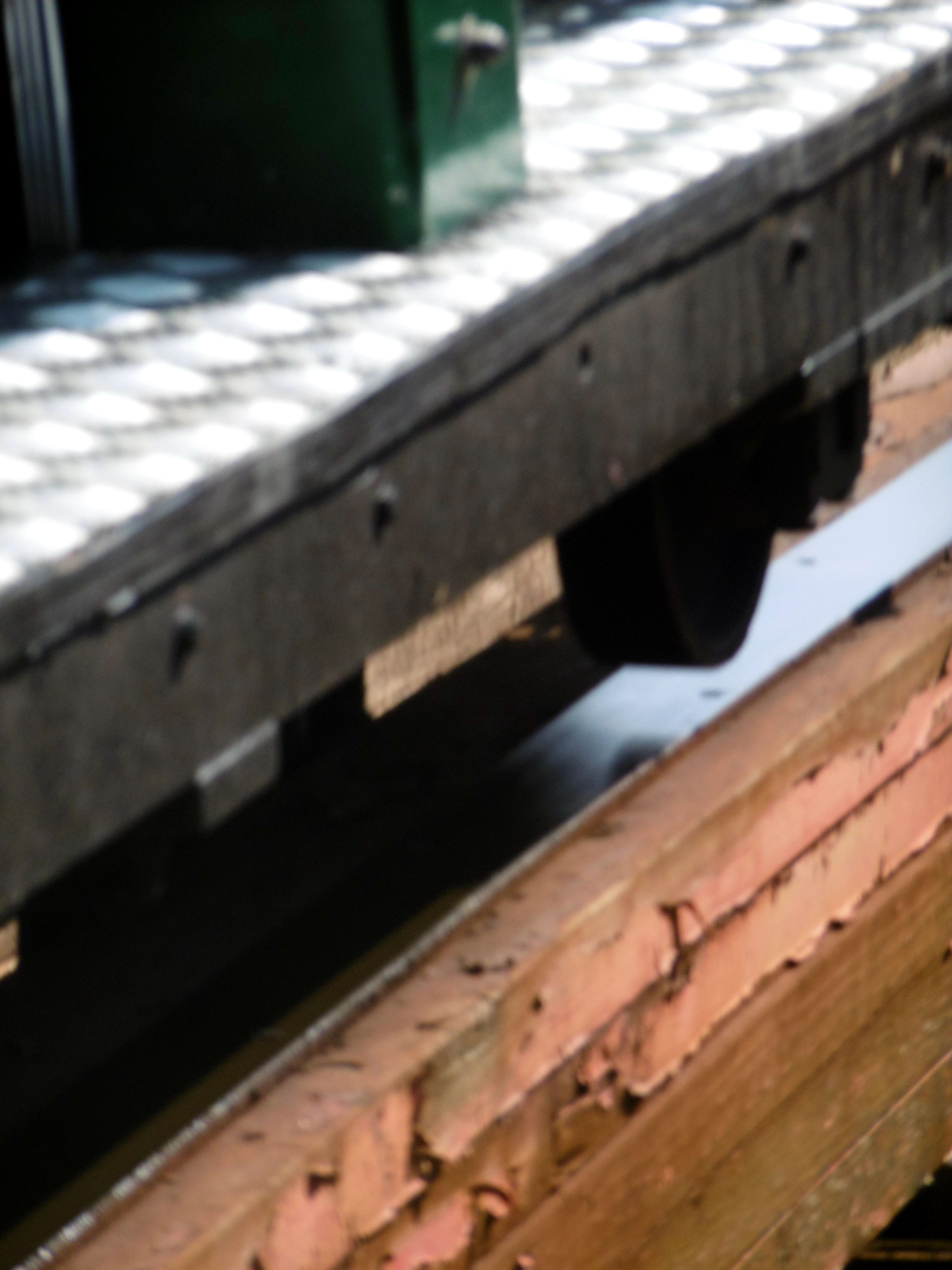 … die Züge in einer Magnetbremse etwas heruntergebremst. Der zweite Zug war derweil schon lange durchgefahren. Unter dem Fußweg hindurch …