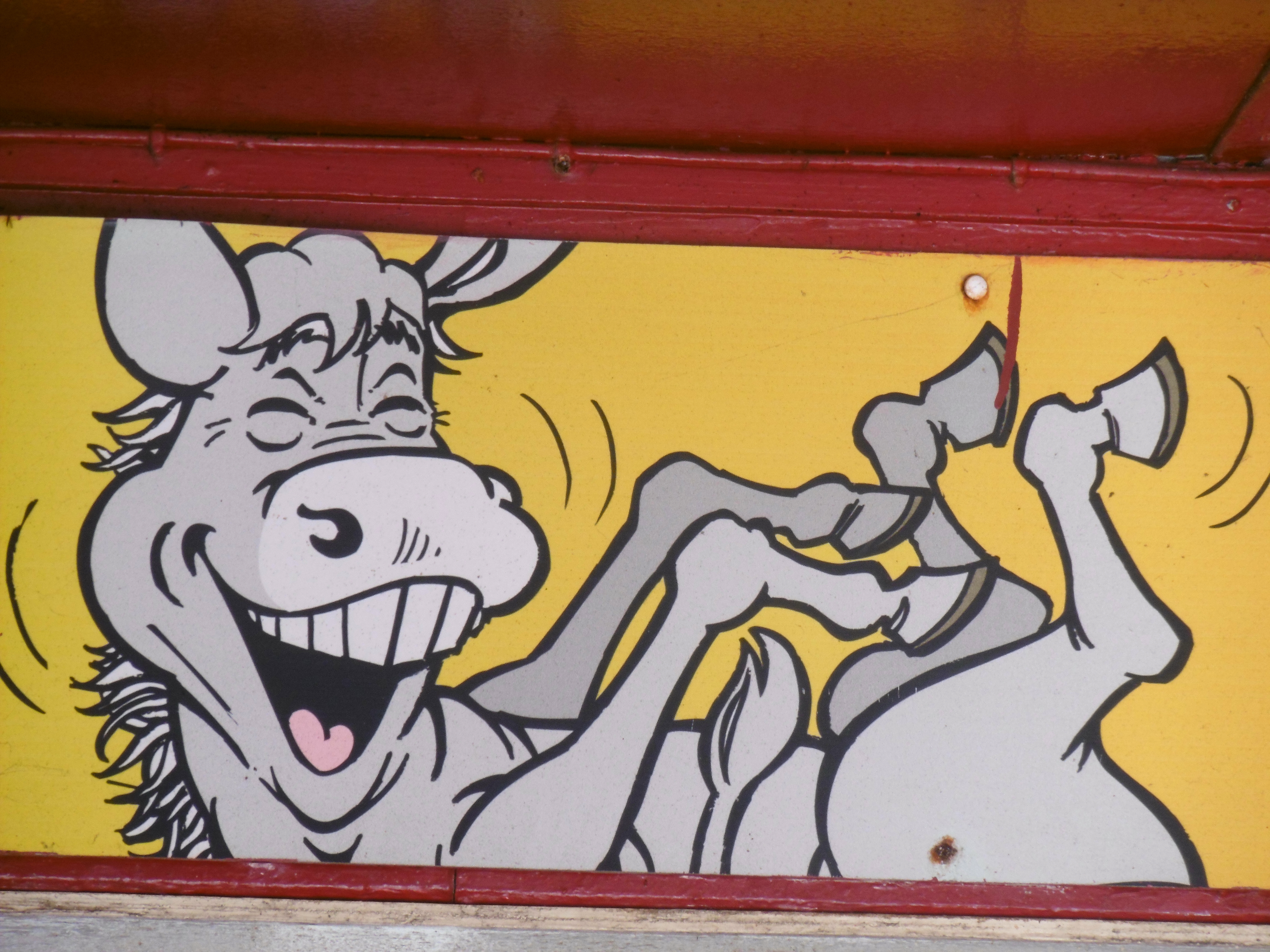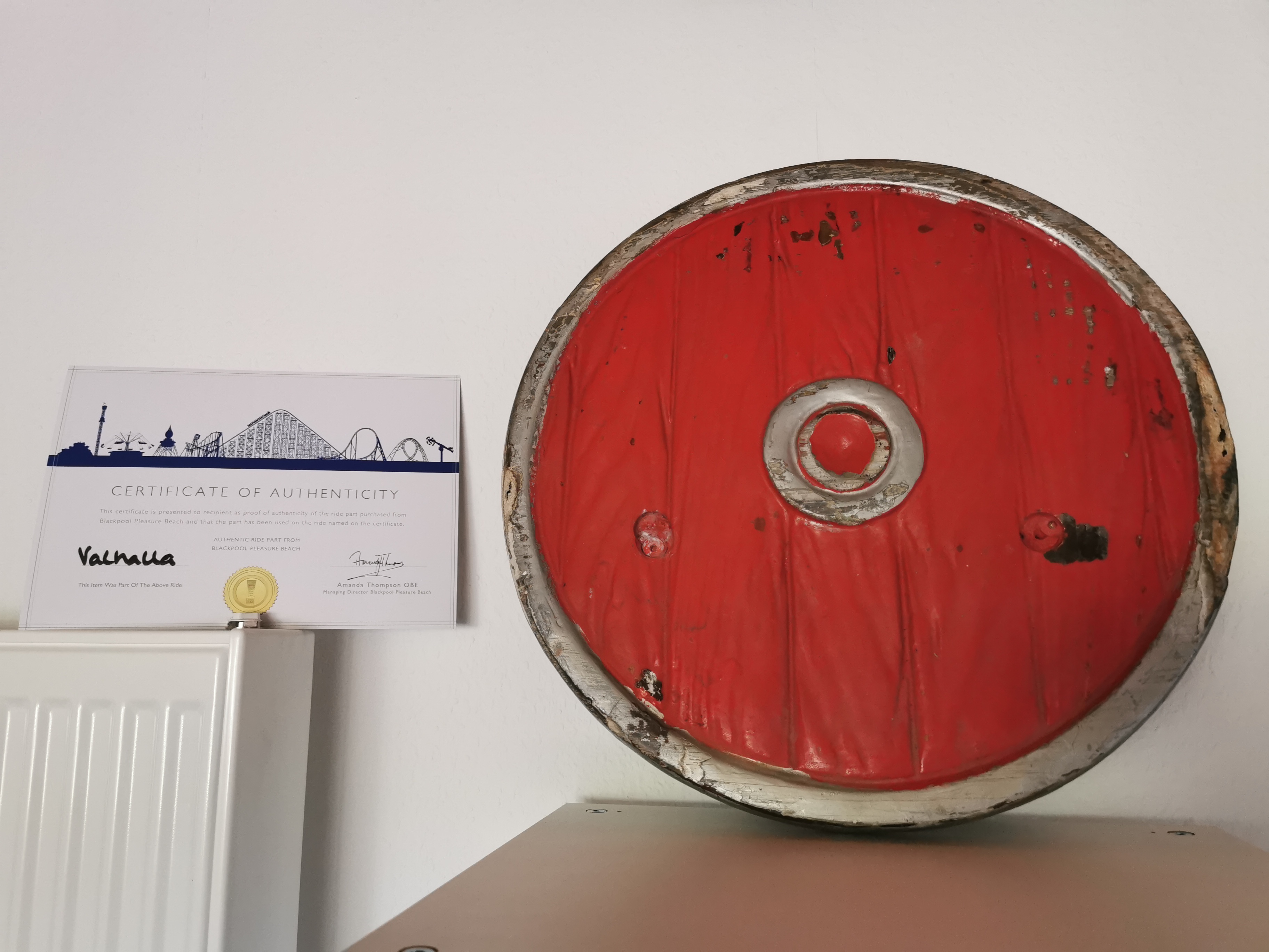 Und auch hier habe ich mich nicht lumpen lassen und mir ein Erinnerungsstück an Geoffreys zweiten Knaller in die Wohnung gestellt. Wie auf dem Bild mit dem Boot zu sehen, verfügen diese an der Seite über jene Schilder.