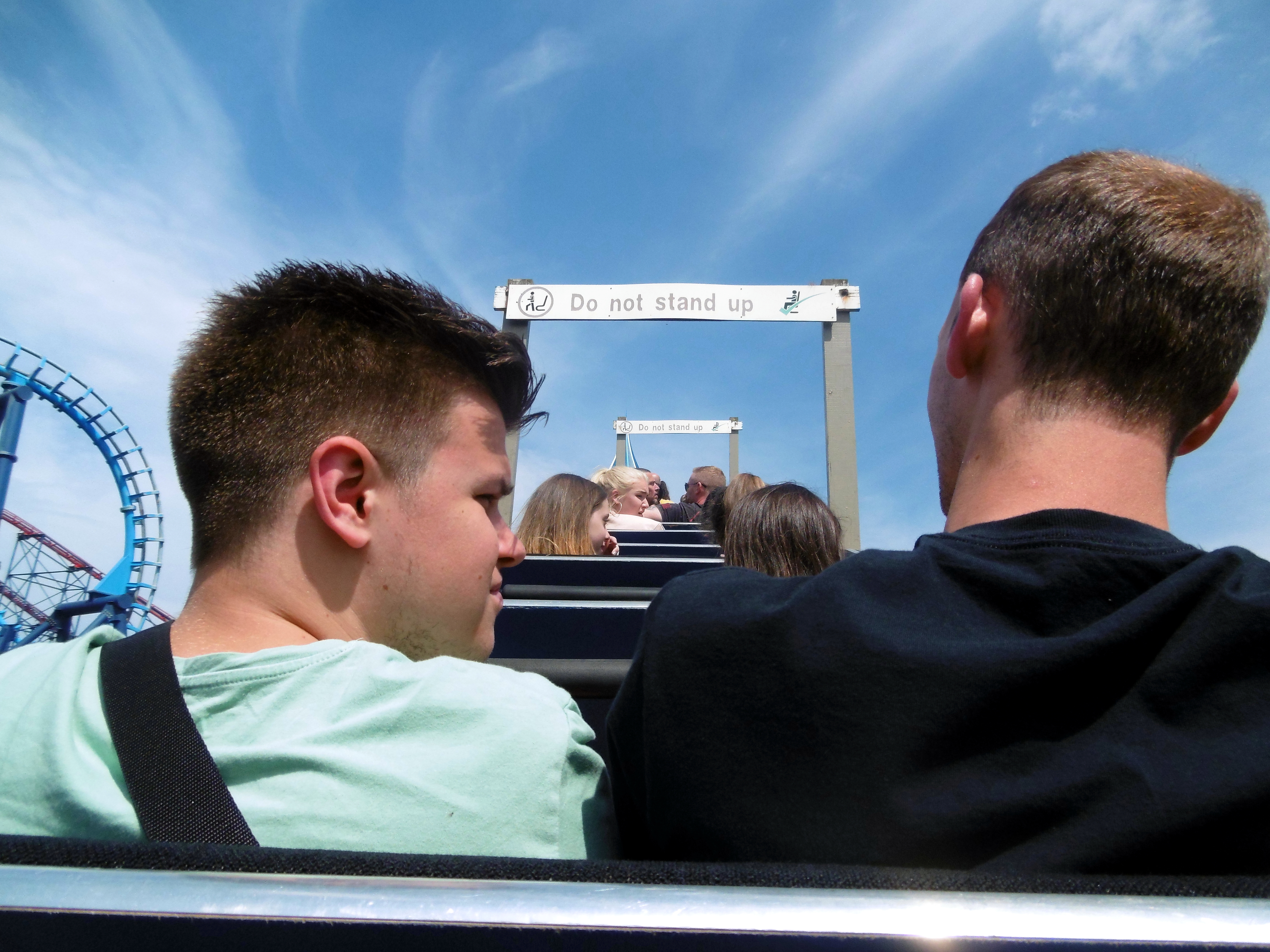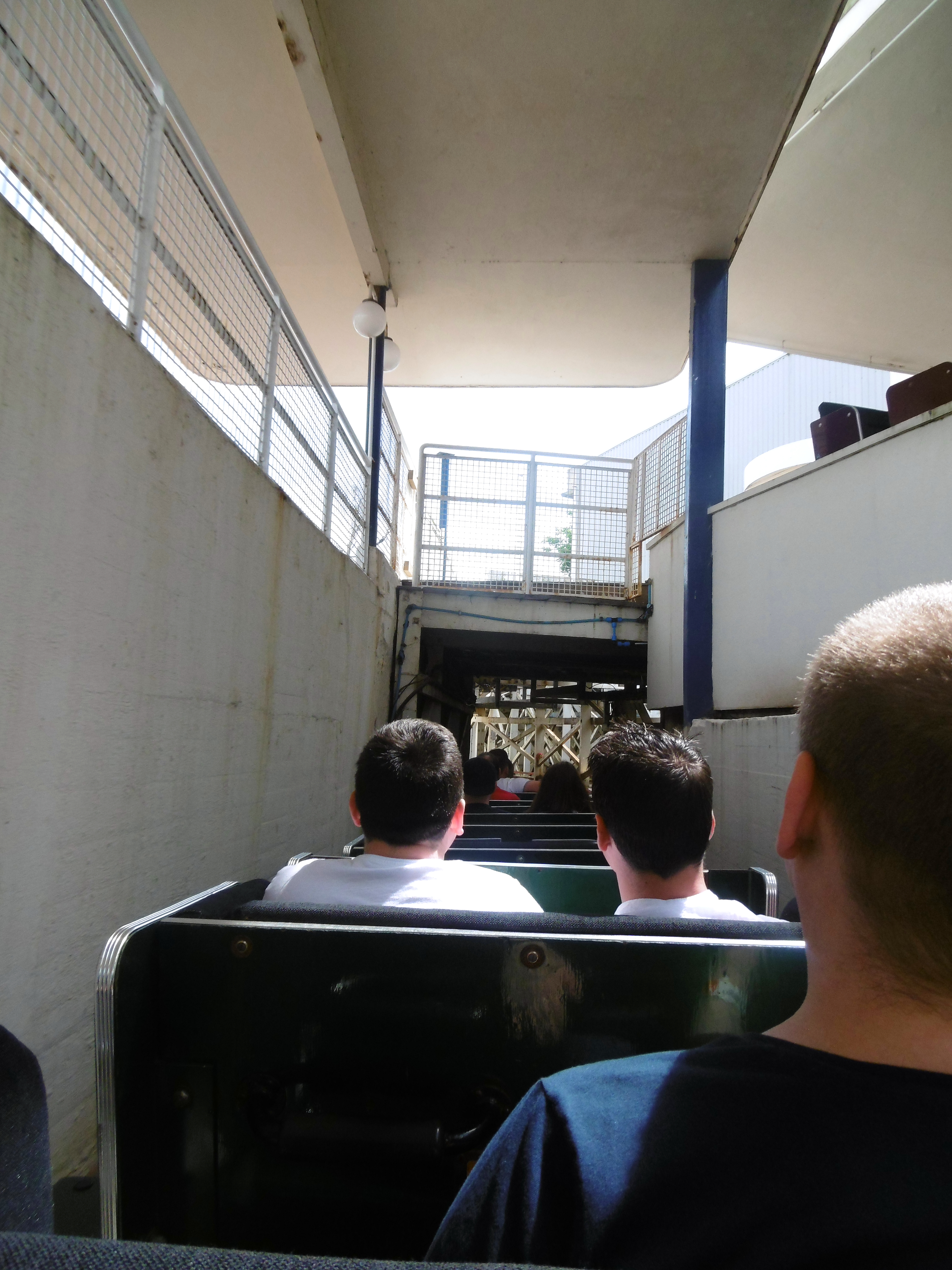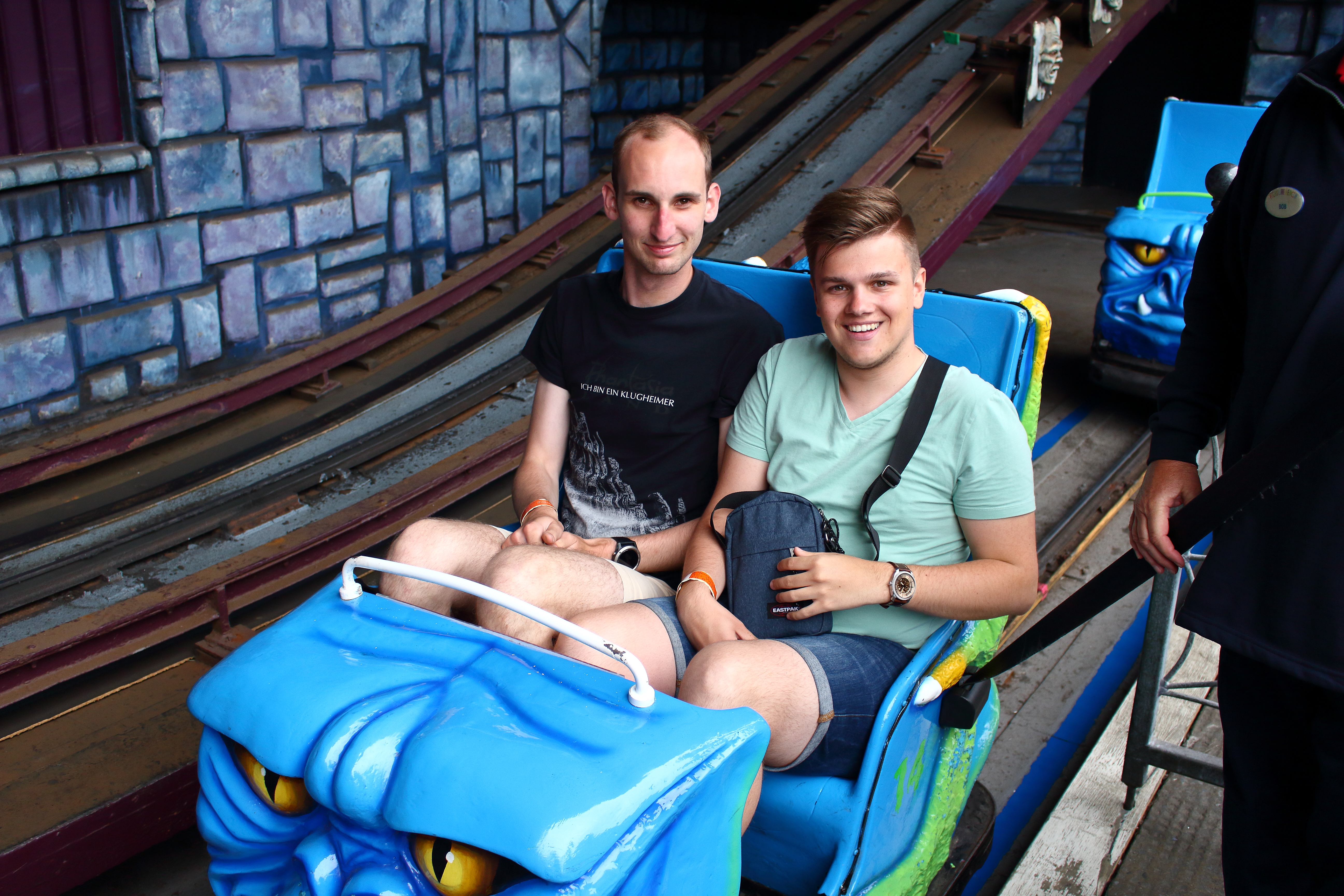 Zum Glück war die Reihenwahl aber frei, weshalb ich mir bei der ersten Fahrt direkt die letzte Reihe über der Achse schnappte, während Marvin und Alex vor mir in einer der beiden Mittelreihen Platz genommen haben.