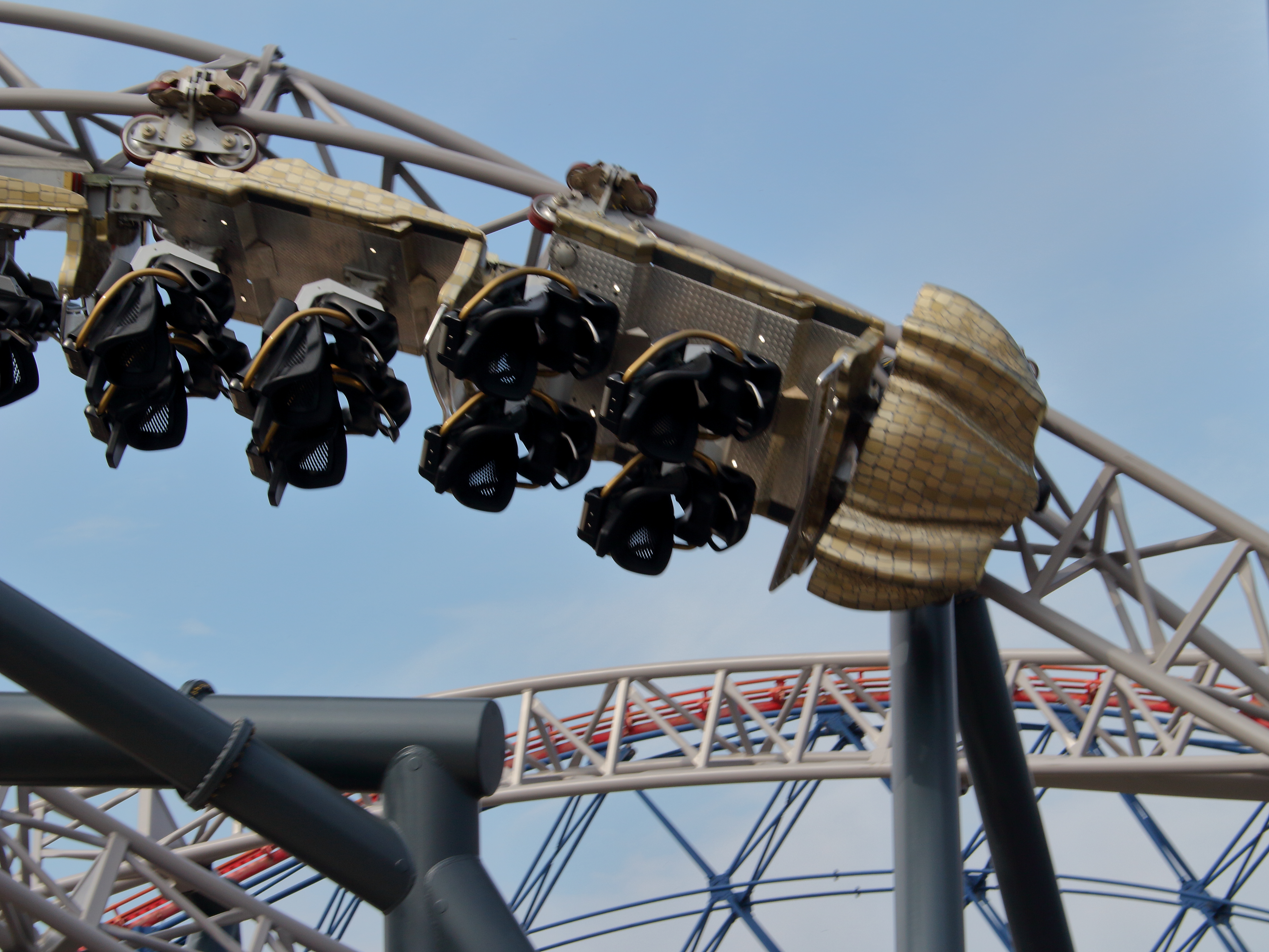 Ein Kinderwoodie mit einem so niedlichen PTC-Züglein, dass ich ihn am liebsten im Handgepäck mitgenommen hätte. Die Bahn selbst besteht aus wenigen Hügeln, die direkt neben der Nickelodeon Streak entlangführen und einem langen Tunnel, der durch das ehemalige Gebäude des Space Invaders führt. Sowohl von letztgenannten, als auch vom Blue Flyer habe ich keine Fotos gemacht …