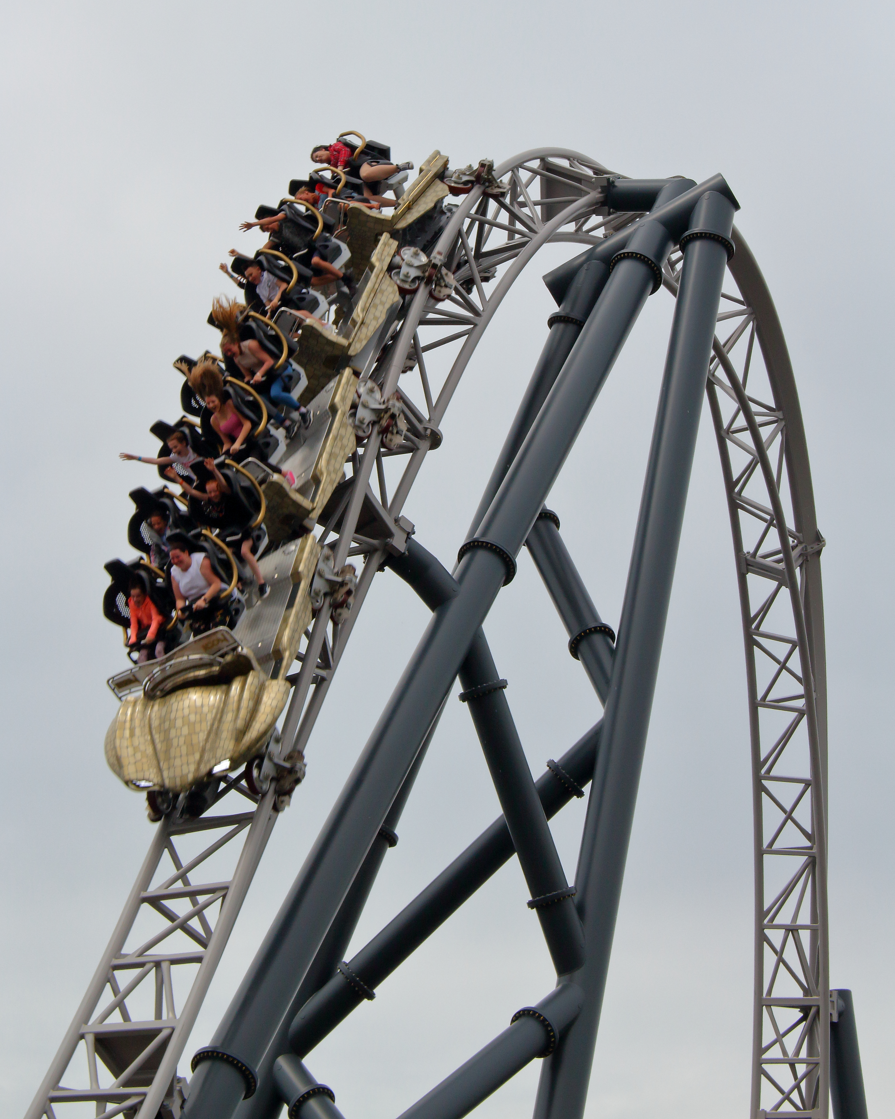 Airtime, da insbesondere beim Double-Down diese wohl durch passende Schläge in der Schiene erzeugt wird. Sollte also jemand auf diese hervorragende Grenzerfahrung verzichten möchten, so würde ich jederzeit eine Mittelreihe empfehlen. Nach einer einzigen Fahrt habe ich dann lieber die Achsenreihen bevorzugt, insbesondere jene hinten, da es vorne etwas weniger heftig war.
