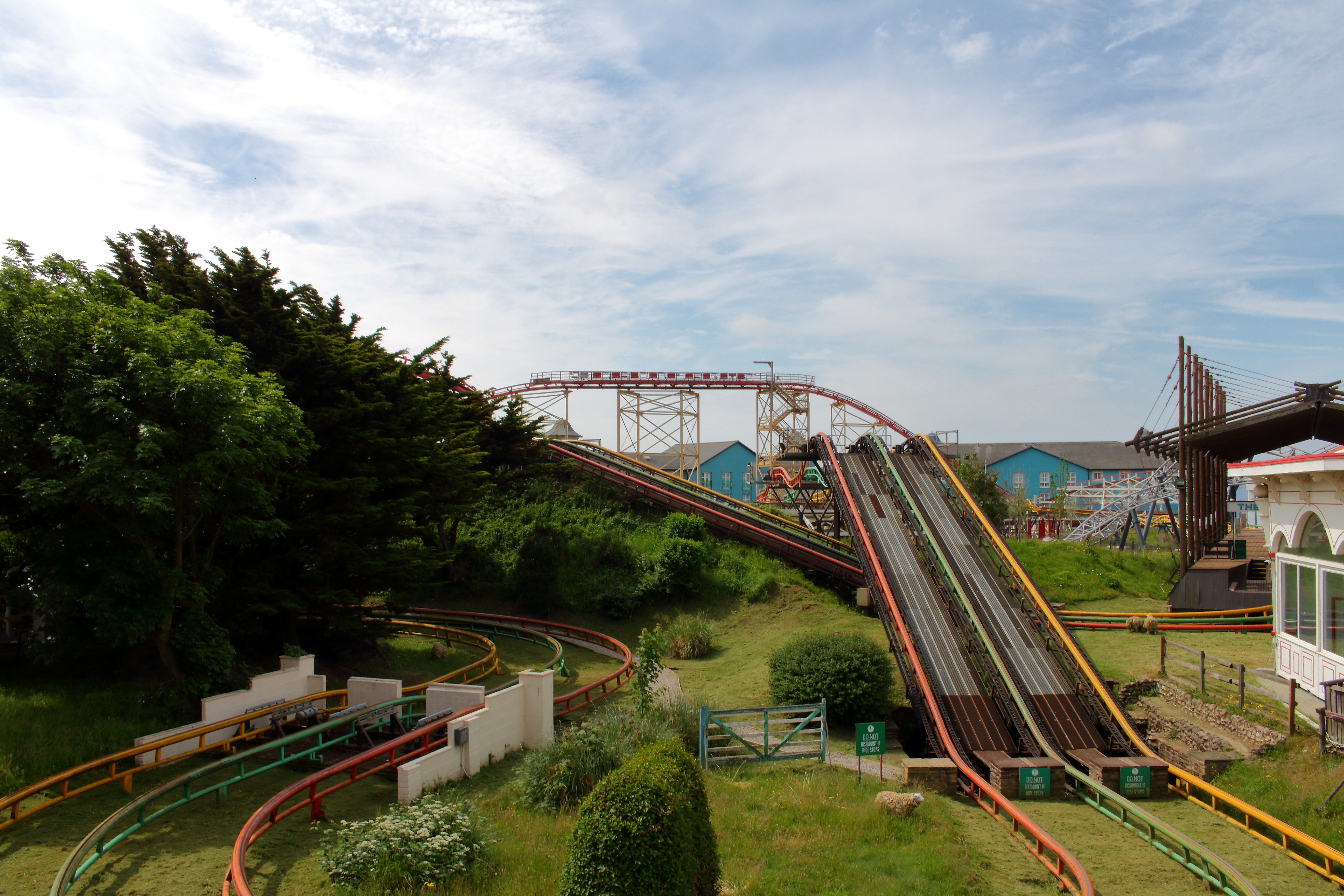 Was ich aber überhaupt nicht verstehen kann: Warum wurde die Bahn klammheimlich abgerissen, ohne auch nur ein Wort an die Fans zu richten? Und da sind wir an einem Punkt, der mir in den beiden Besuchstagen wie ein Stein im Magen lag. Nach dem Tod von Geoffrey Thompson, der den Park nicht gerade wirtschaftlich betrieb und diverse hochpreisige Neuheiten eröffnete, übernahm dessen Tochter Amanda 2004 das Zepter. Dass diese dann versucht ihren Park wirtschaftlich auf gesunde Beine zu stellen, mehr als verständlich. Dass darin inbegriffen auch die Schließungen mancher Attraktionen sind, auch mehr als verständlich. Dass diese Frau aber keinerlei Interesse an Fans hat (nachzulesen im