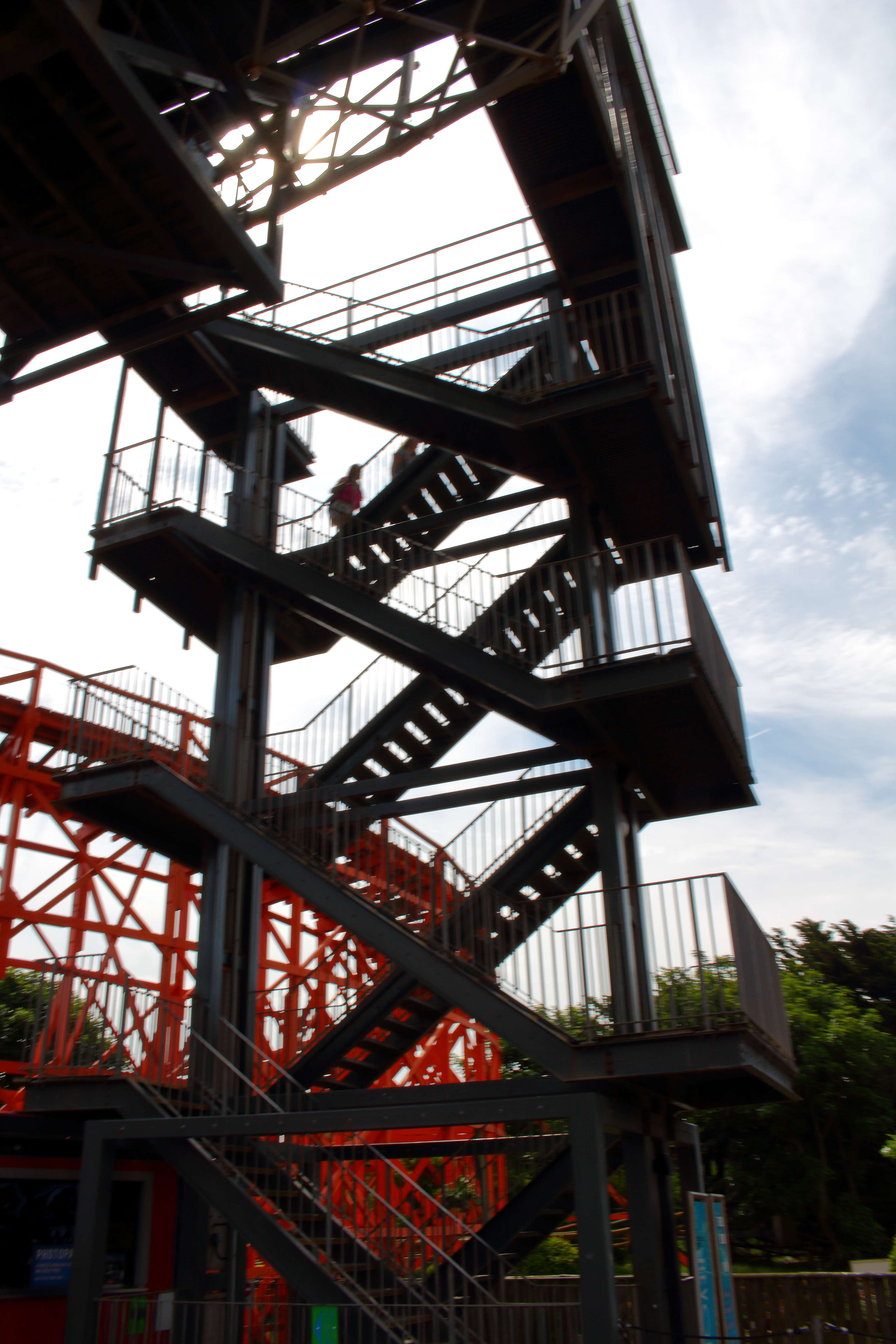 Natürlich durfte der Versuch nicht fehlen, das Ganze in der ersten Reihe wahrzunehmen und zu testen, ob nun die Rückwärtsabfahrt ähnlich krass ist. Leider kann ich dies verneinen, aber lustig war es trotzdem. Leider durfte man oben nicht warten und musste einmal den Turm runter und wieder hoch klettern, weshalb es nicht so viele Wiederholungsfahrten gab, wie es dieser Bahn zugestanden hätte. Tolle Überaschung!