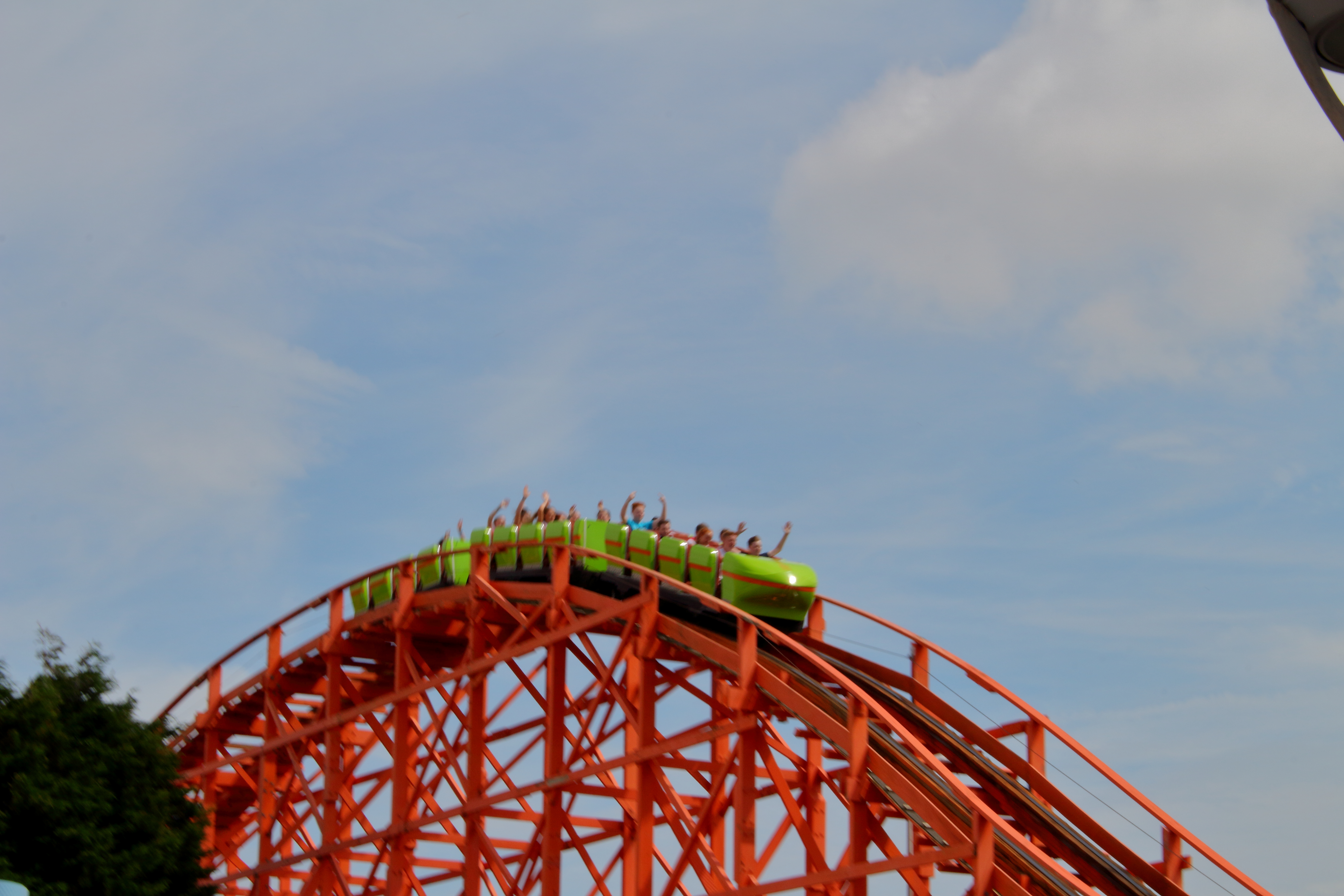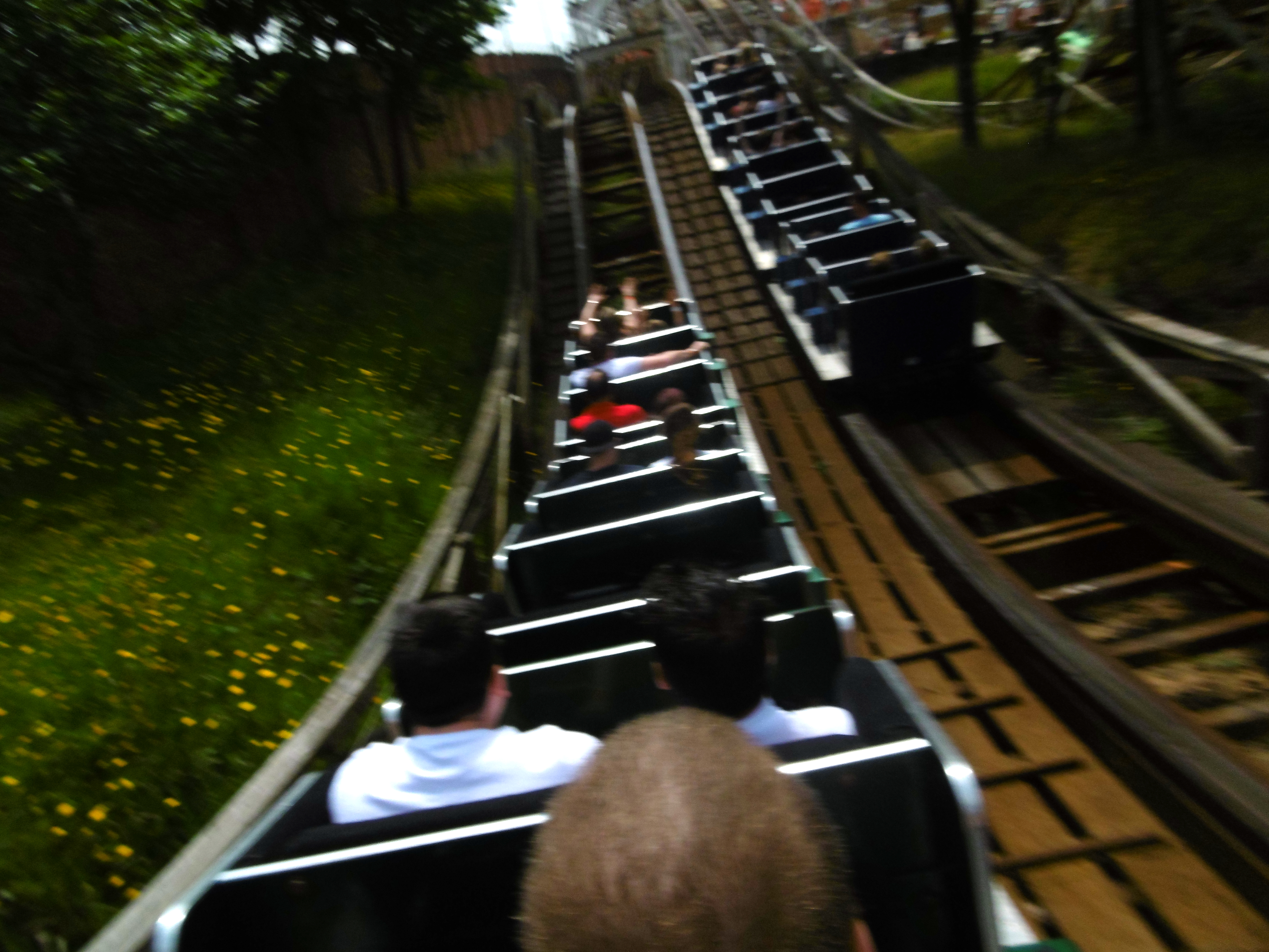 Auch hier schön anzusehen, wie die langen Wagen in den engen Kurven knarzen. Die ersten hohen Hügel bieten noch wenig Airtime.