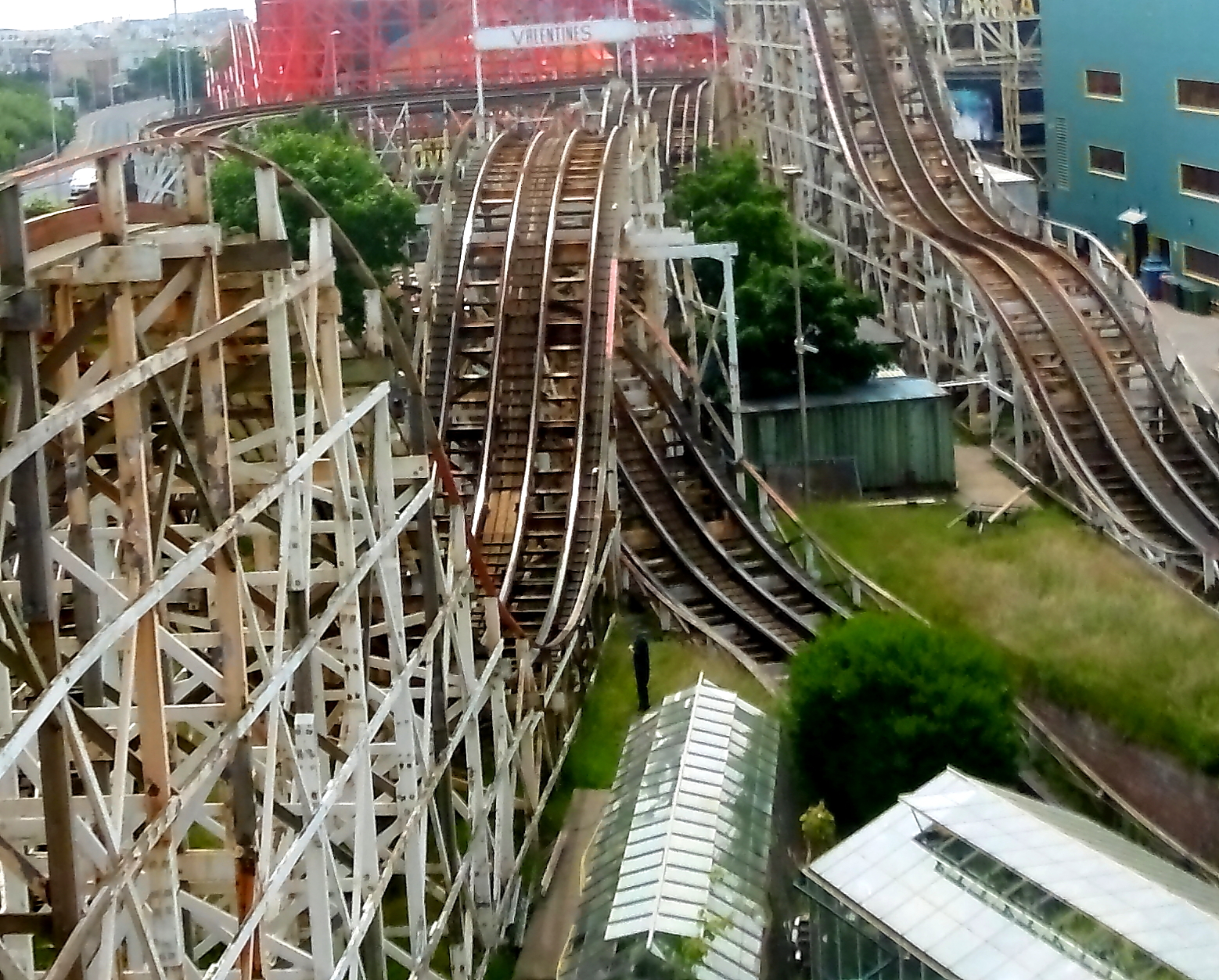 Der Lift stammt dagegen von einer anderen Holzachterbahn, die ab 1909 (!) hier stand und den Namen Velvet Coaster trug und nach der auch das Restaurant in der Nähe des Parkeingangs benannt wurde.
