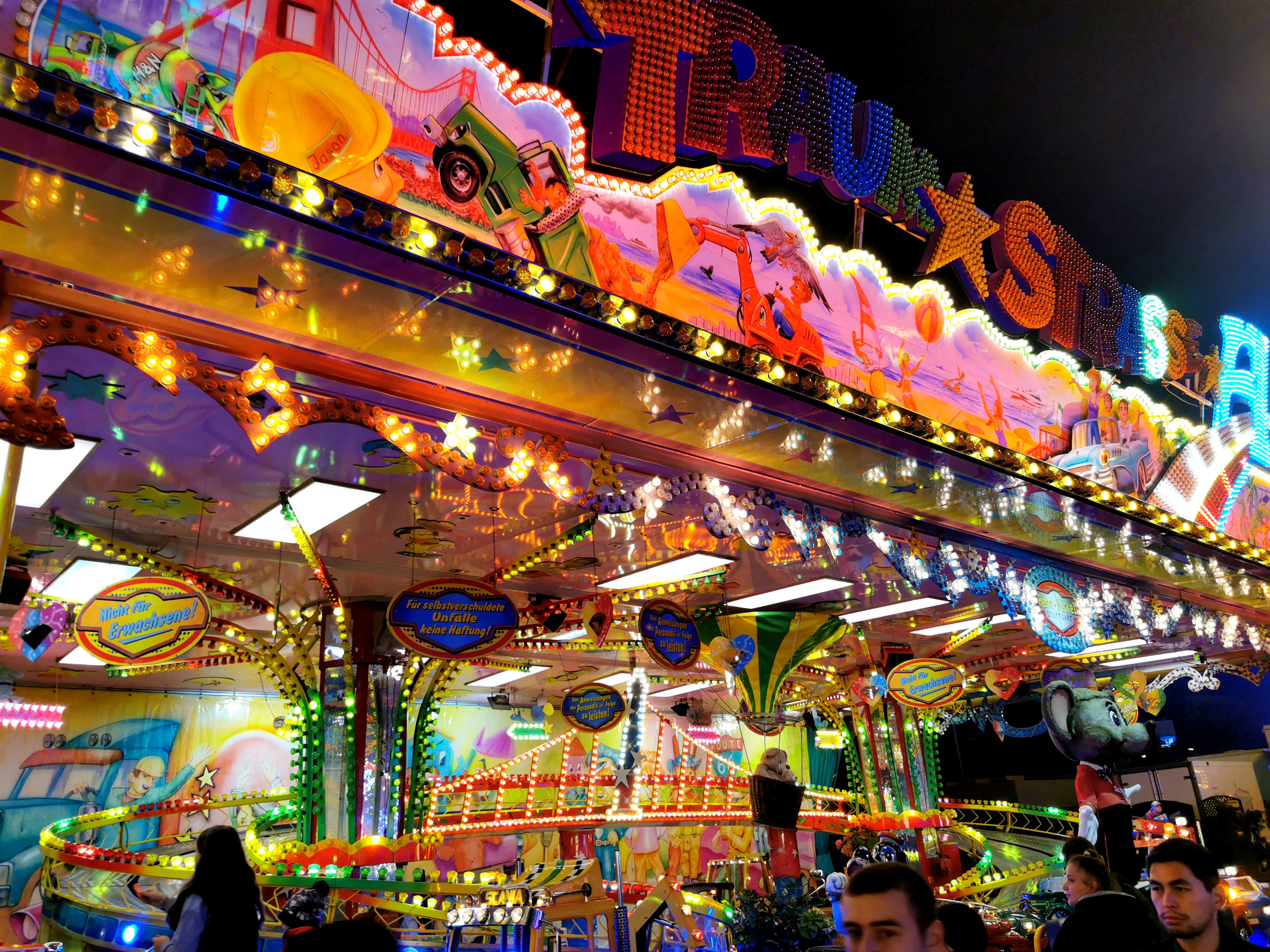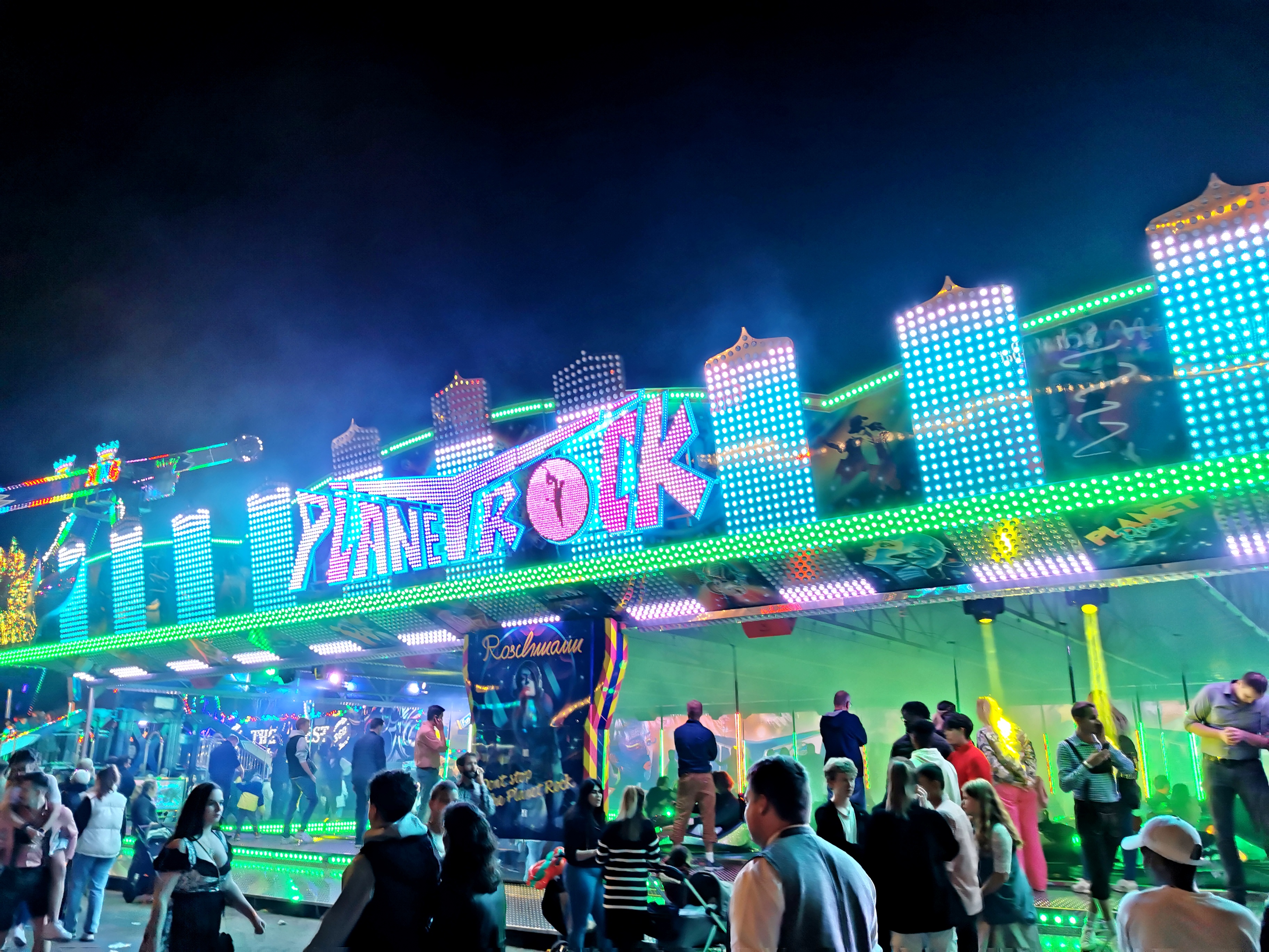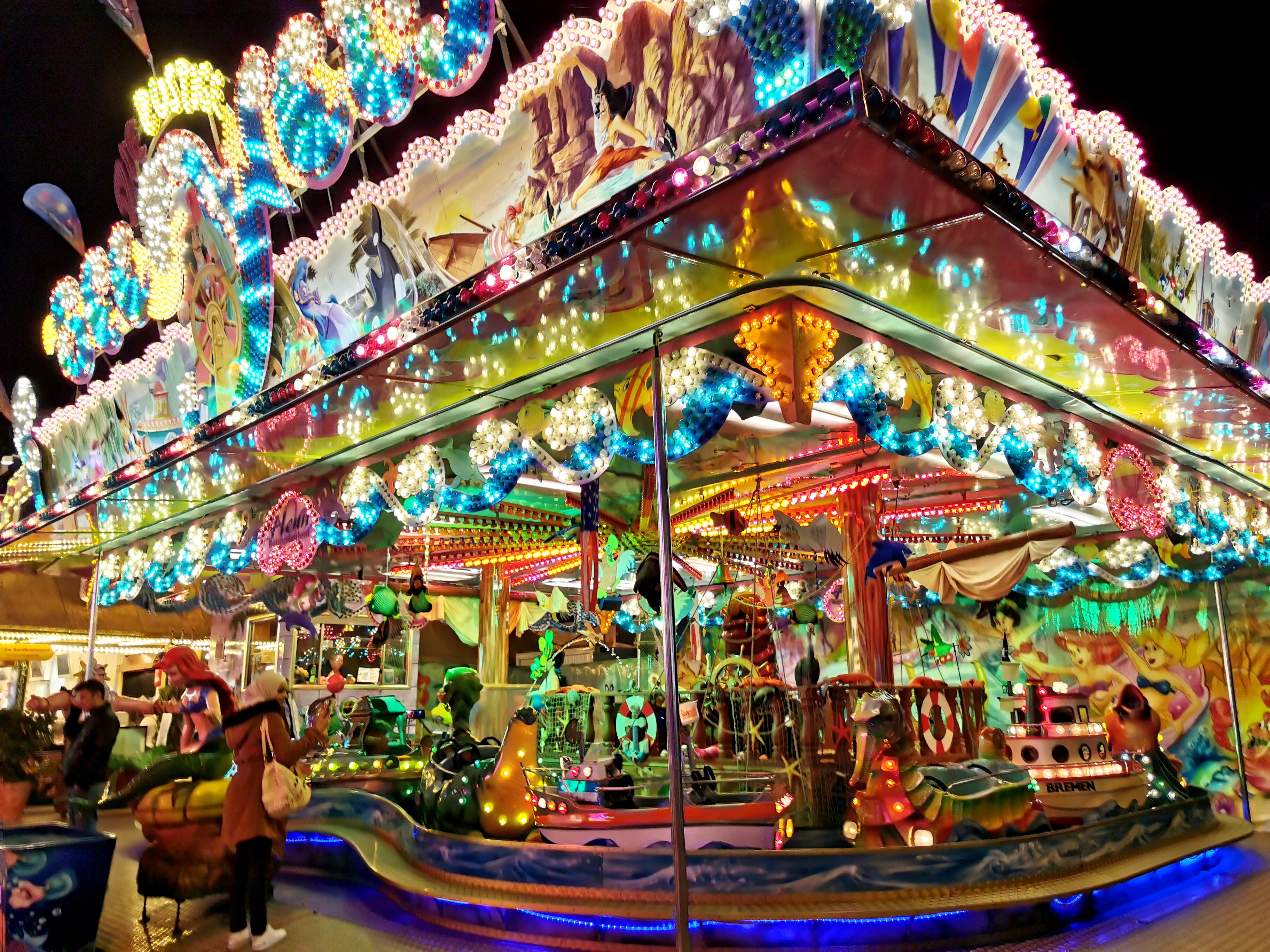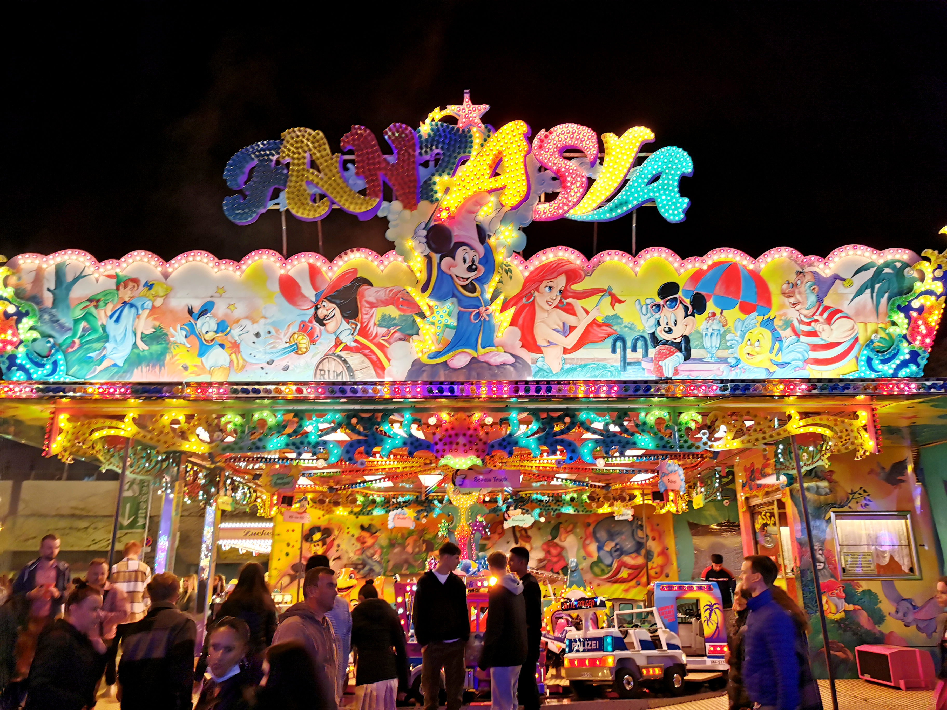 Vorbei an den ersten Kinderfahrgeschäften, …