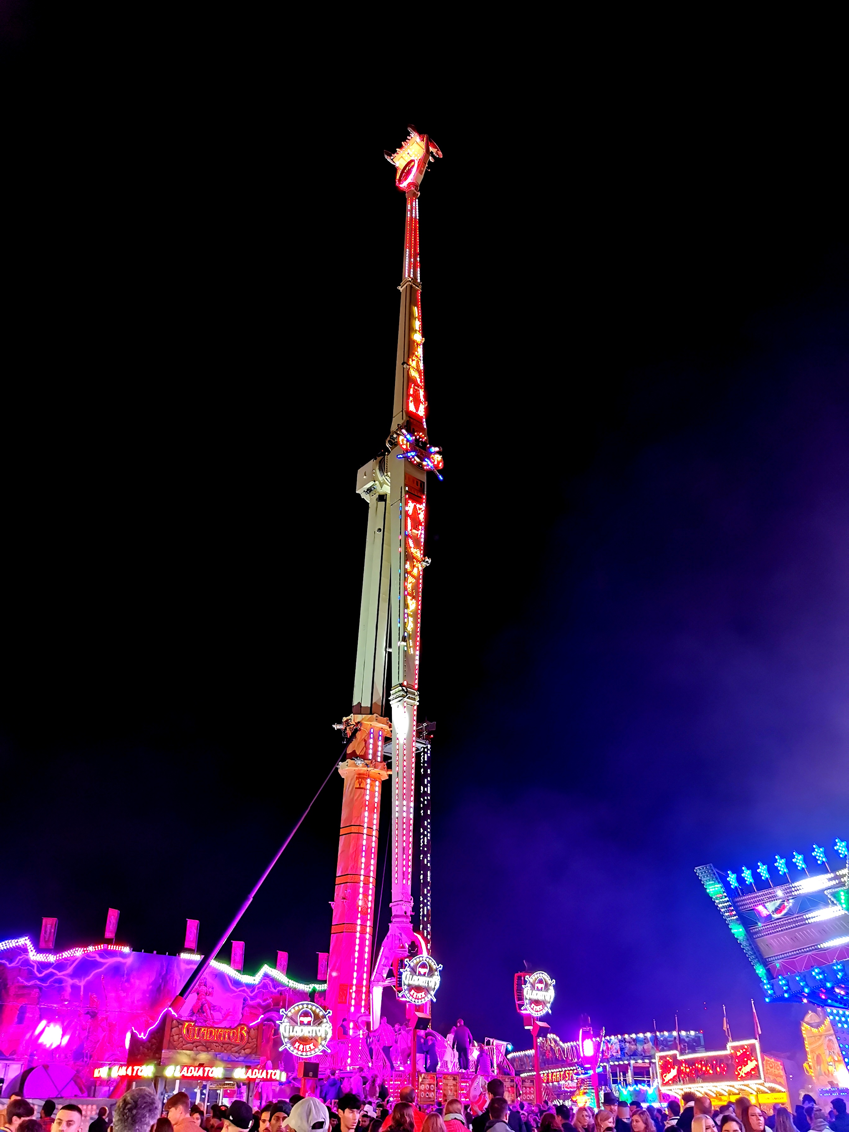 Wie schon auf der Wiesn 2018 habe ich mich mit den ganzen Alkoholleichen, die den Platz gesäumt haben, nicht sonderlich wohl gefühlt. Insbesondere in der Straba zurück zum Hbf. Ich werde daher von diesen großen Volksfesten wohl eher kein großer Fan mehr. Wenn da nicht immer so lustige Fahrgeschäfte stehen würden …