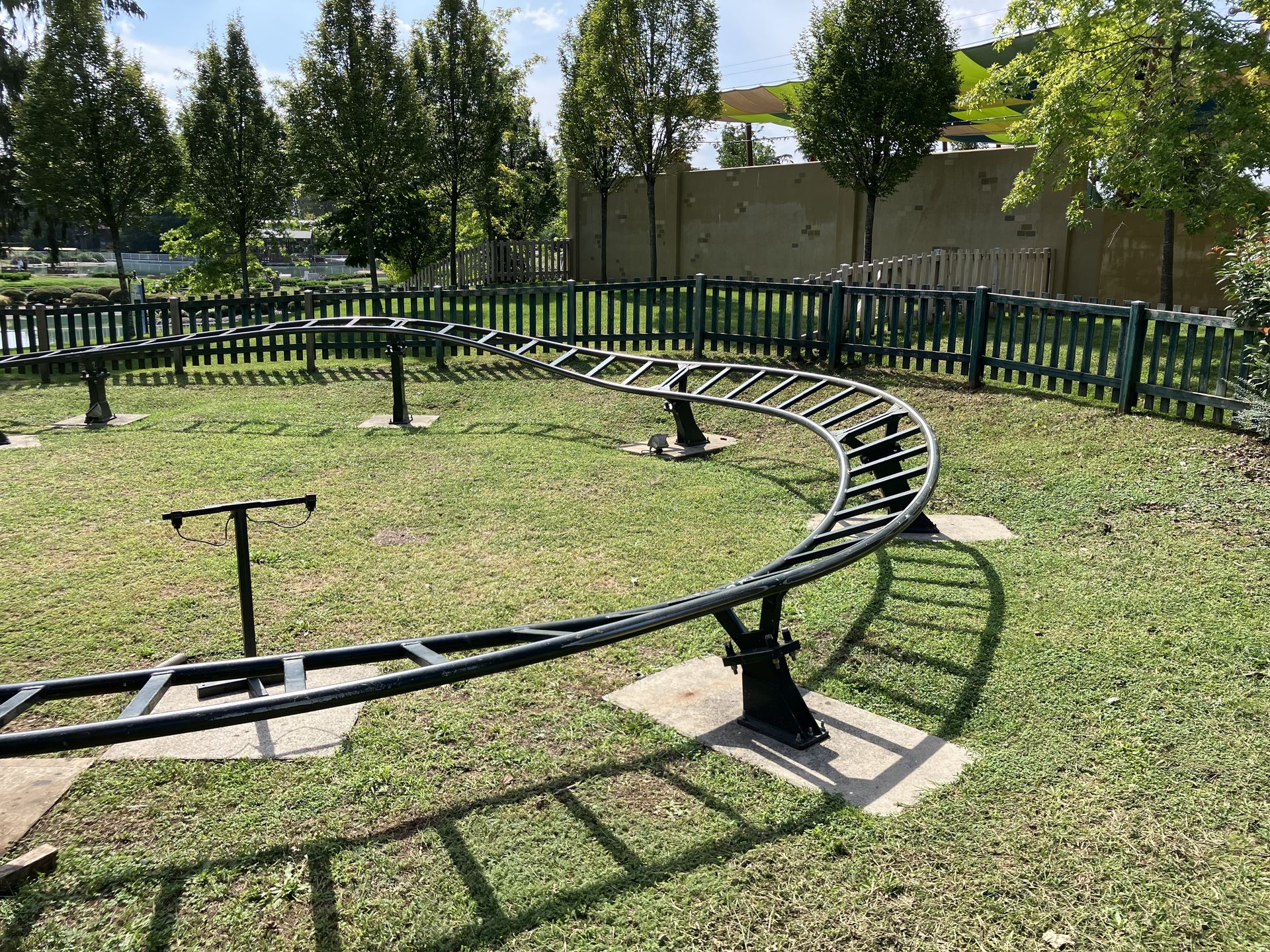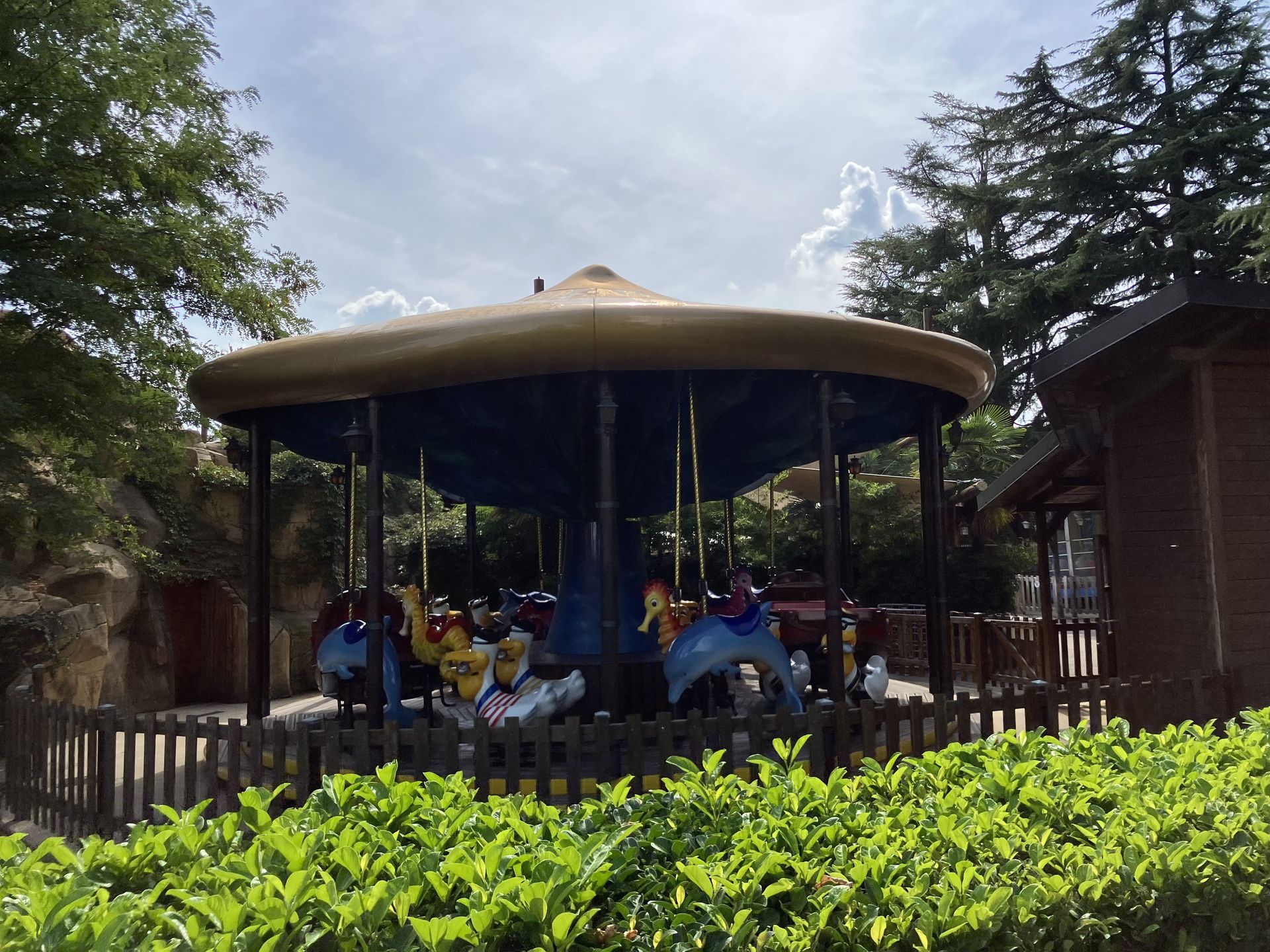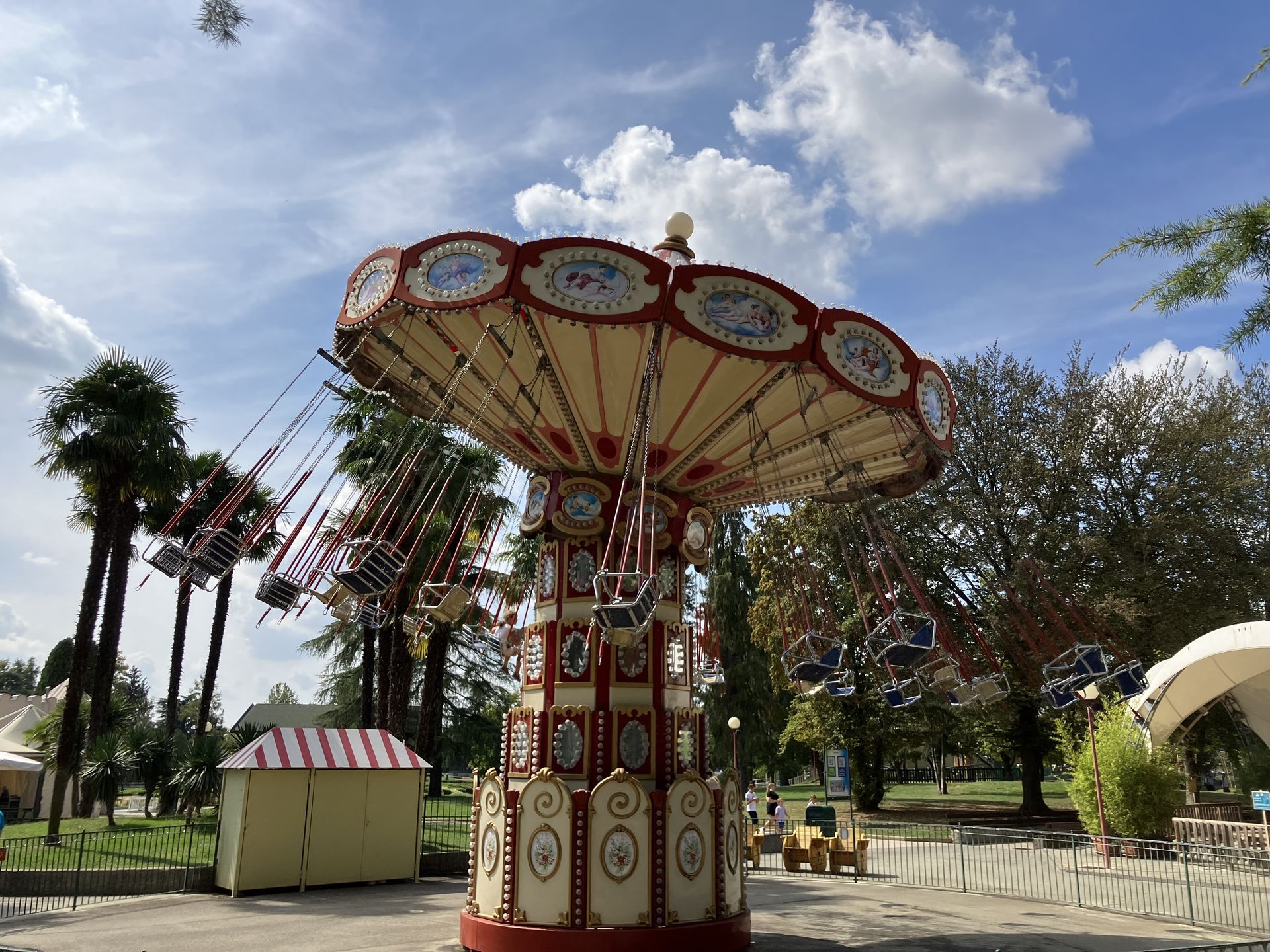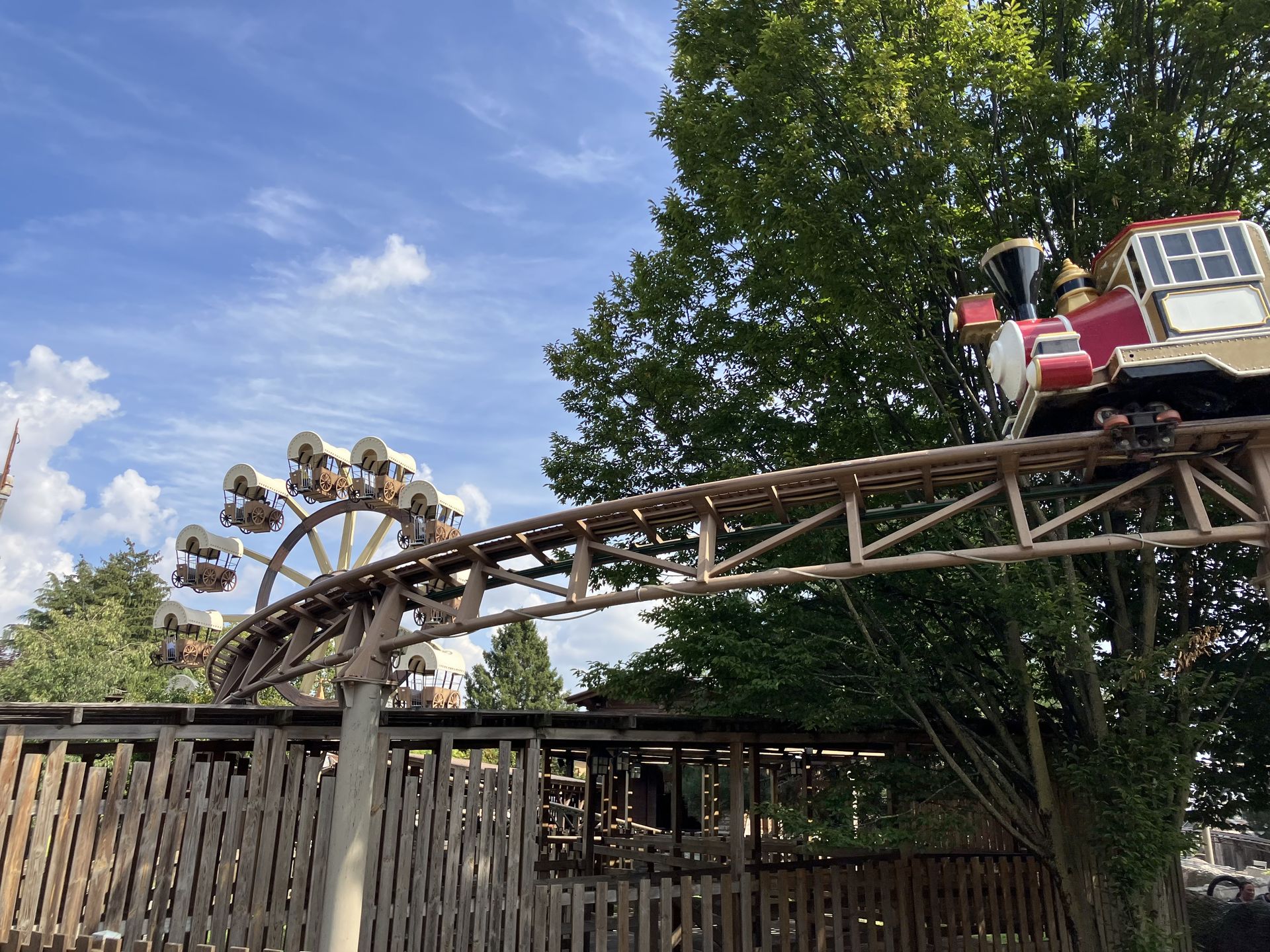 Auf dem Weg Richtung "Expoland" befindet sich noch eine kleine Achterbahn, die wohl den Park verlassen hat, aufgrund der Fahreigenschaften auch nicht verwunderlich. Nebenan befindet sich auch noch ein Kinderkarusell, auch sehr hübsch richtung See gebaut.