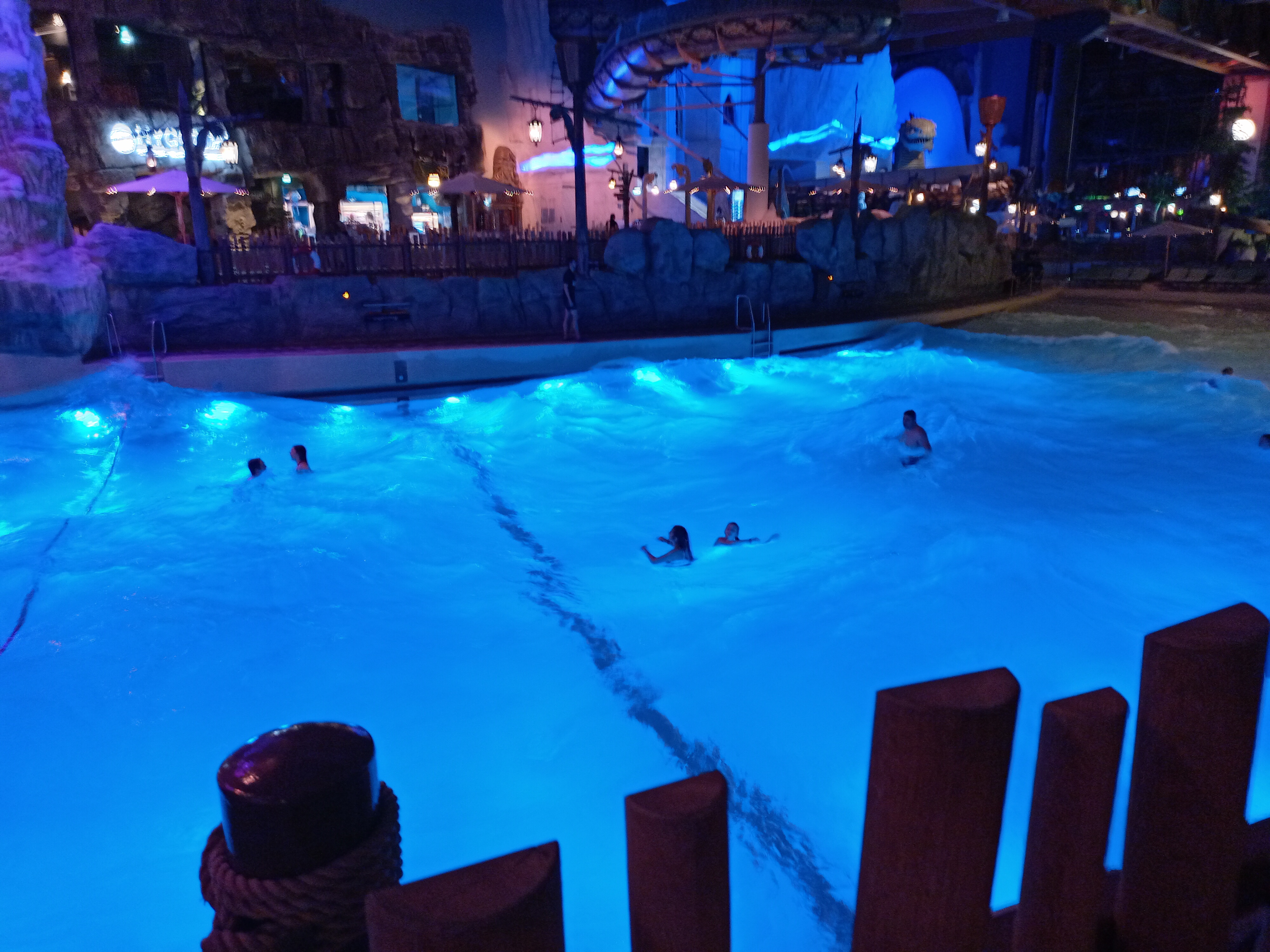 zu früh aufstehen soll. Überdies schienen hier zumindest an unserem Besuchsabend nur Einzelreifen zur Verfügung zu stehen - auf anderen Aufnahmen des Lazy Rivers sieht man definitiv auch Zweierbobs darin.