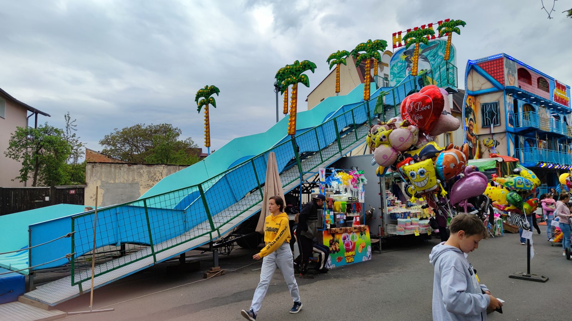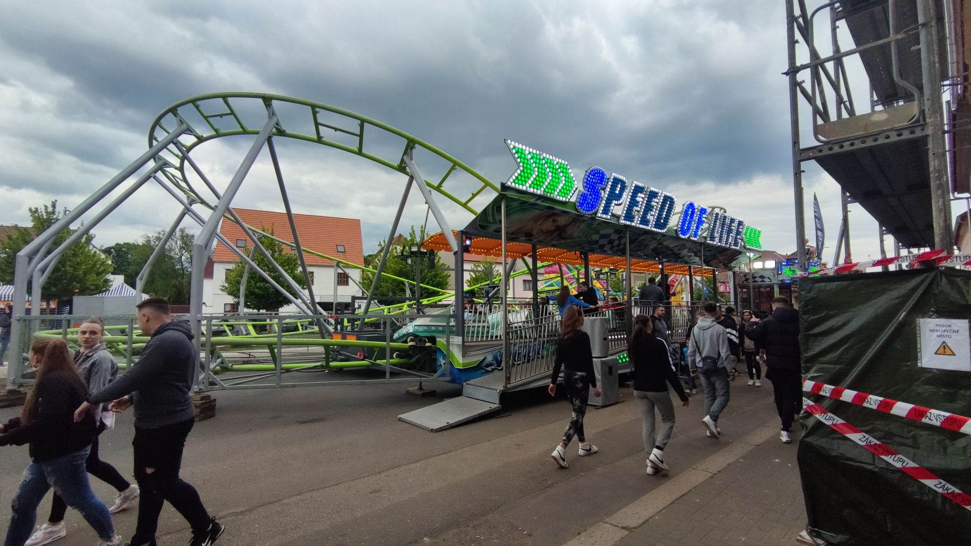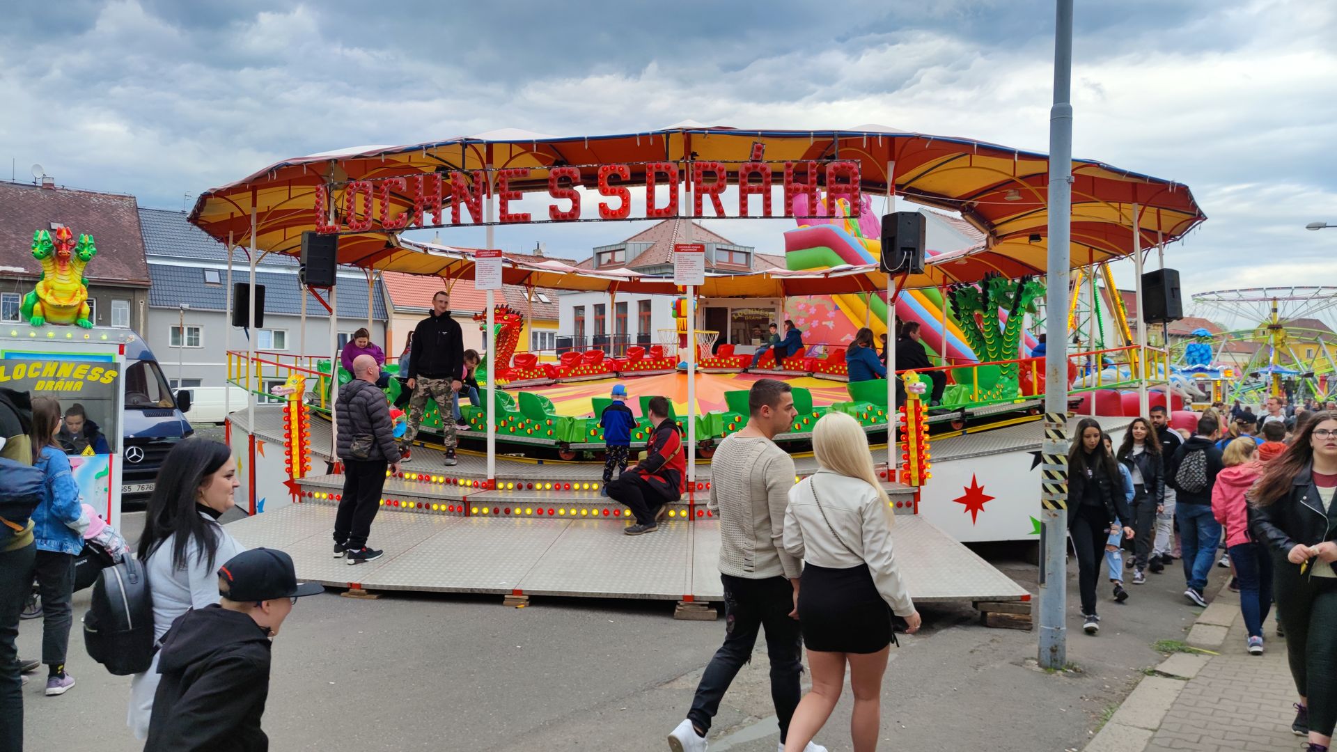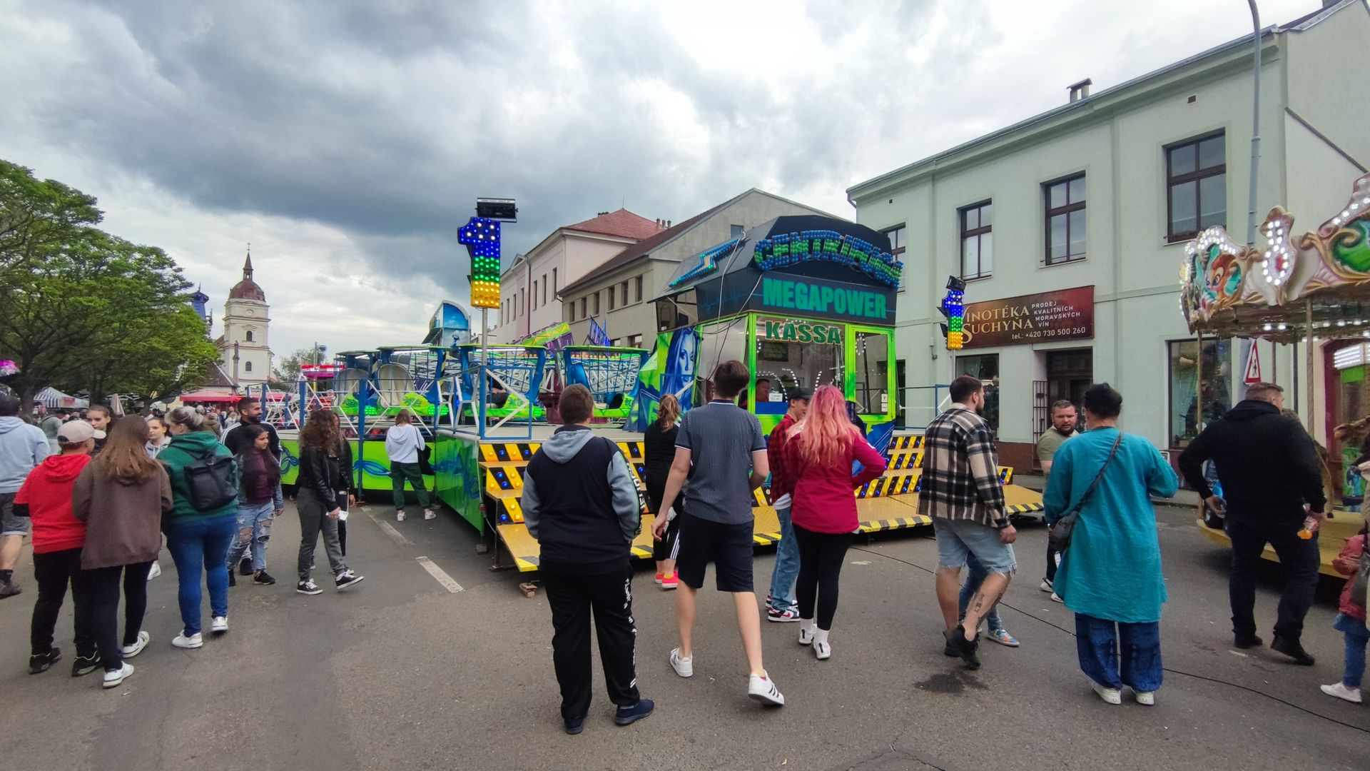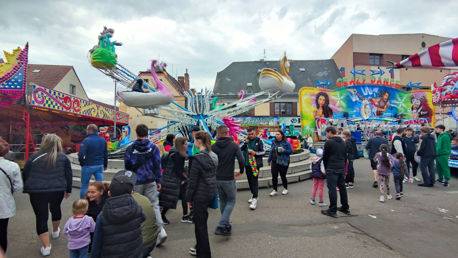 Die Kirmes ist entlang einer einzigen Straße aufgebaut. Chabařovice ist auch nicht sonderlich groß (ca. 2500 Einwohner). Entsprechend stopfig wirkt es manchmal. Zusätzlich habe ich mindestens 3 nicht aufgebaute Fahrgeschäfte in Chabařovice entdeckt...