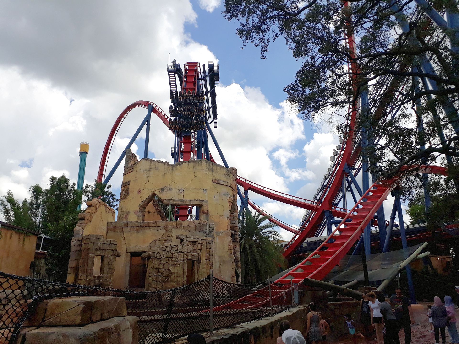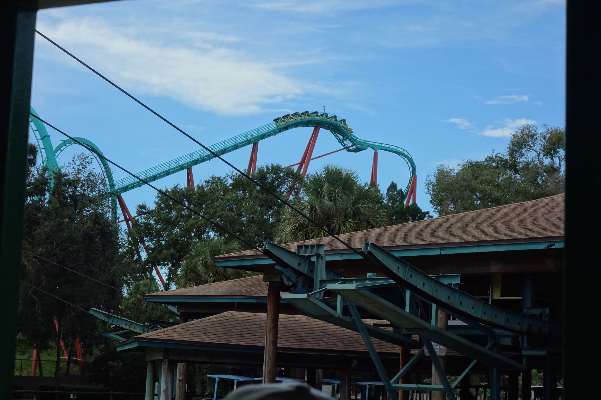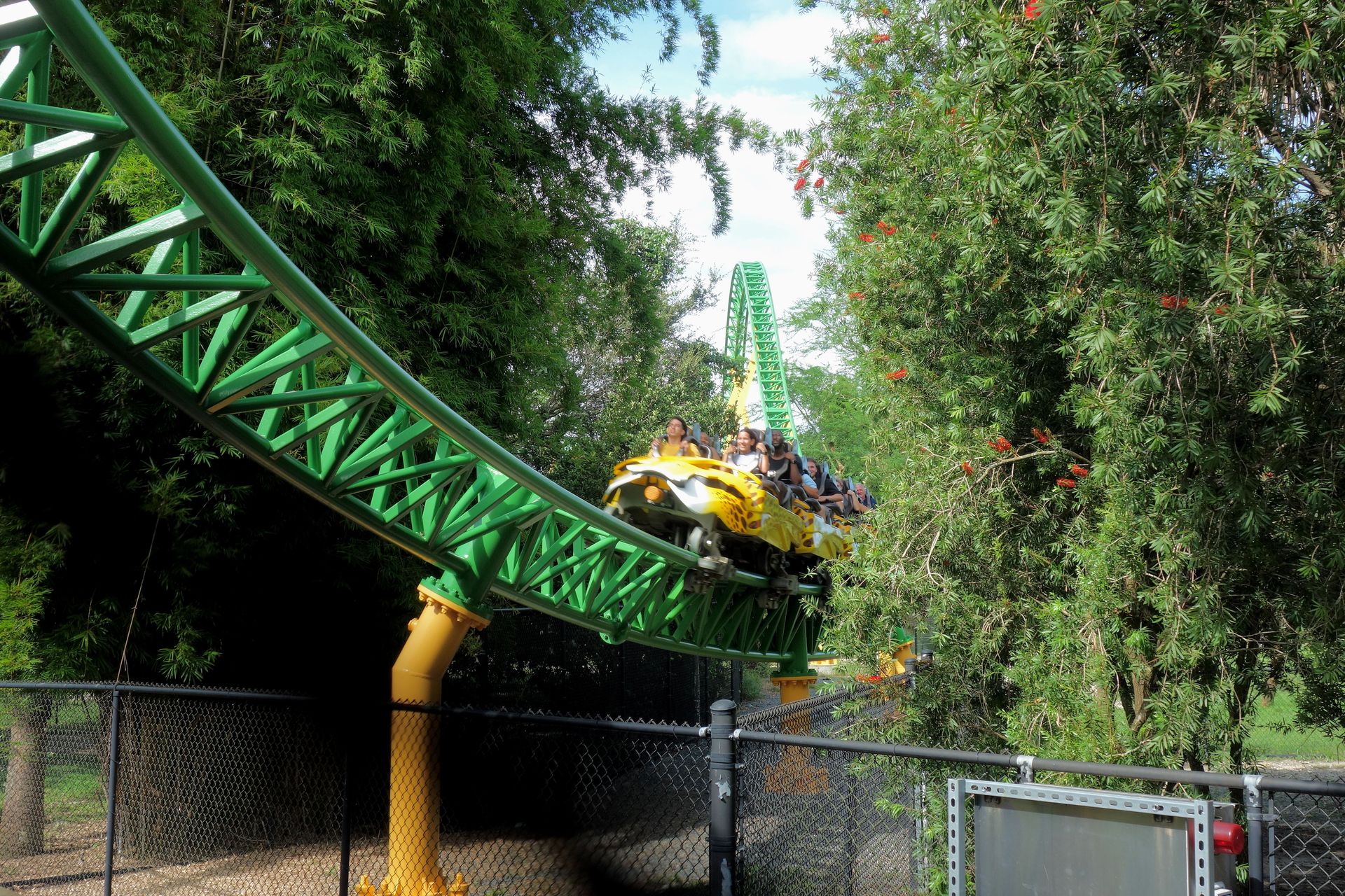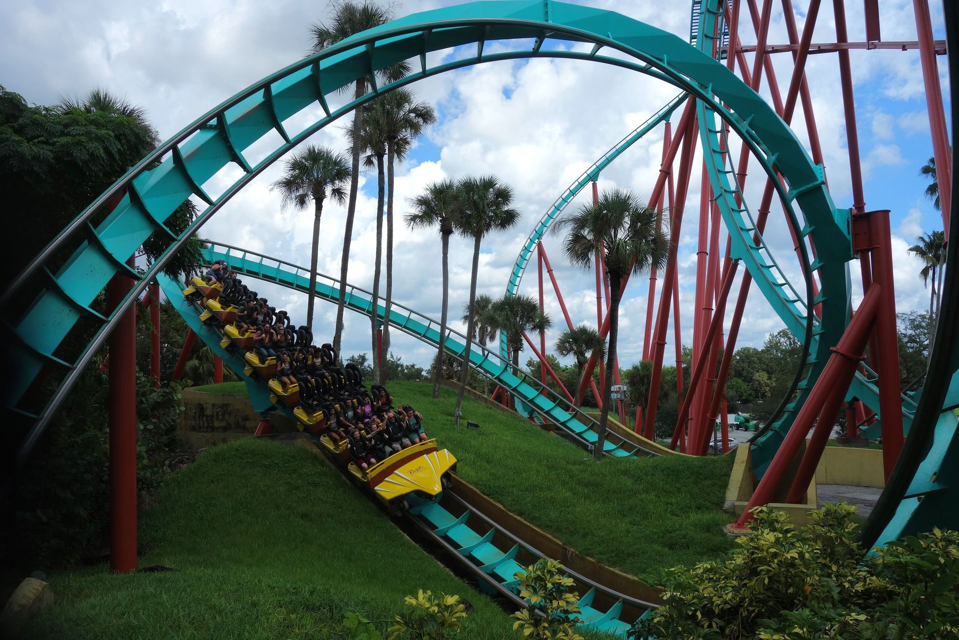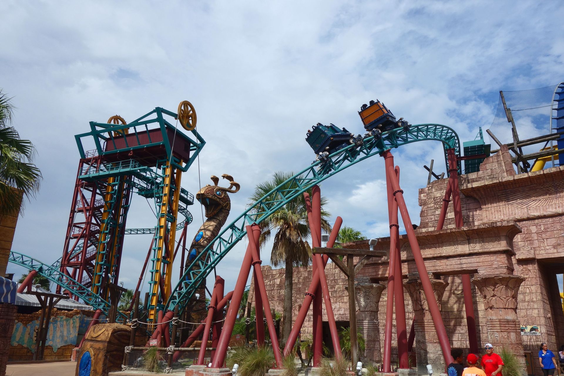 Unter der Cobra Roll von Kumba hindurch startet die Runde durch den Freizeitparkbereich.