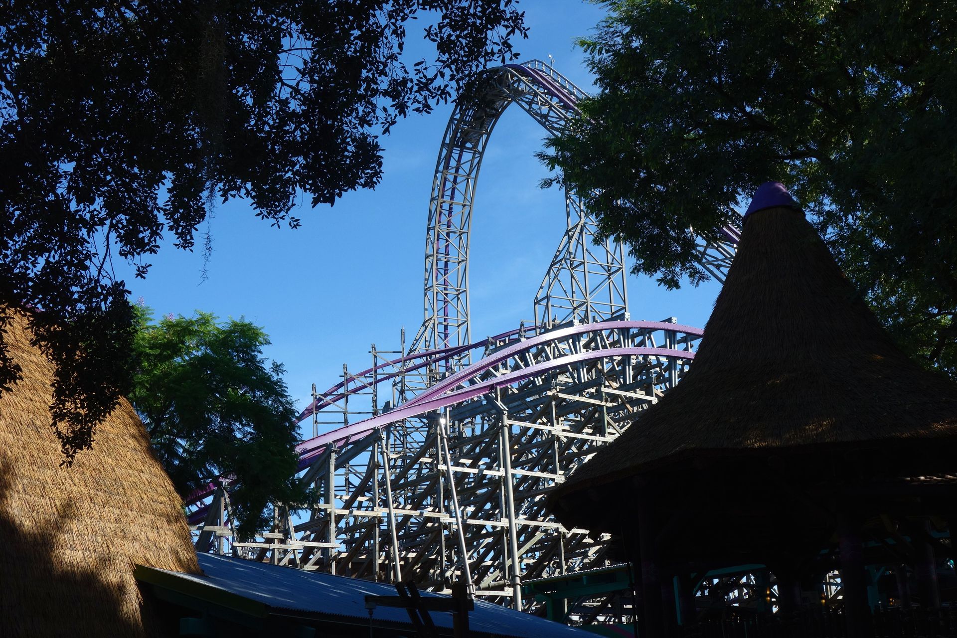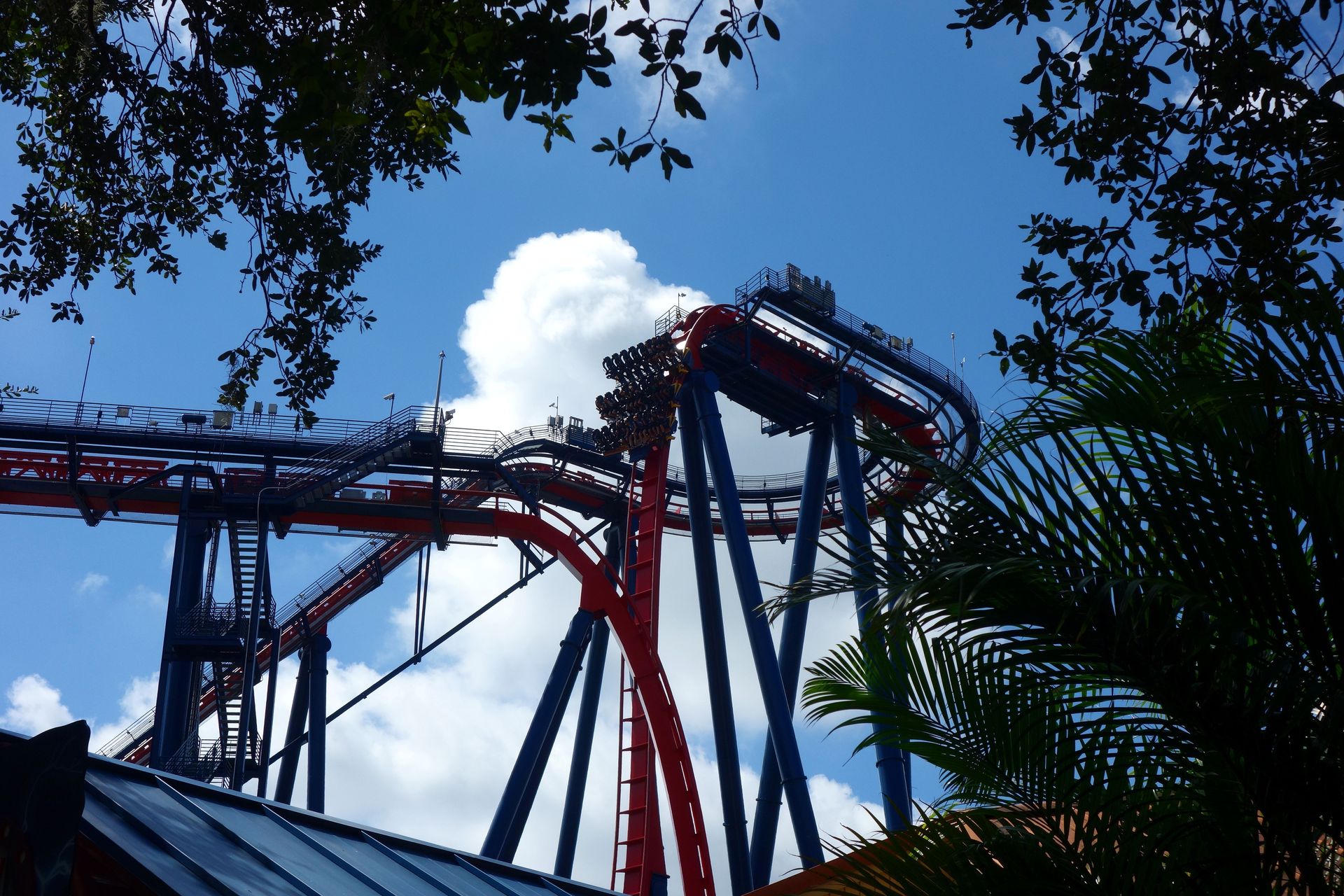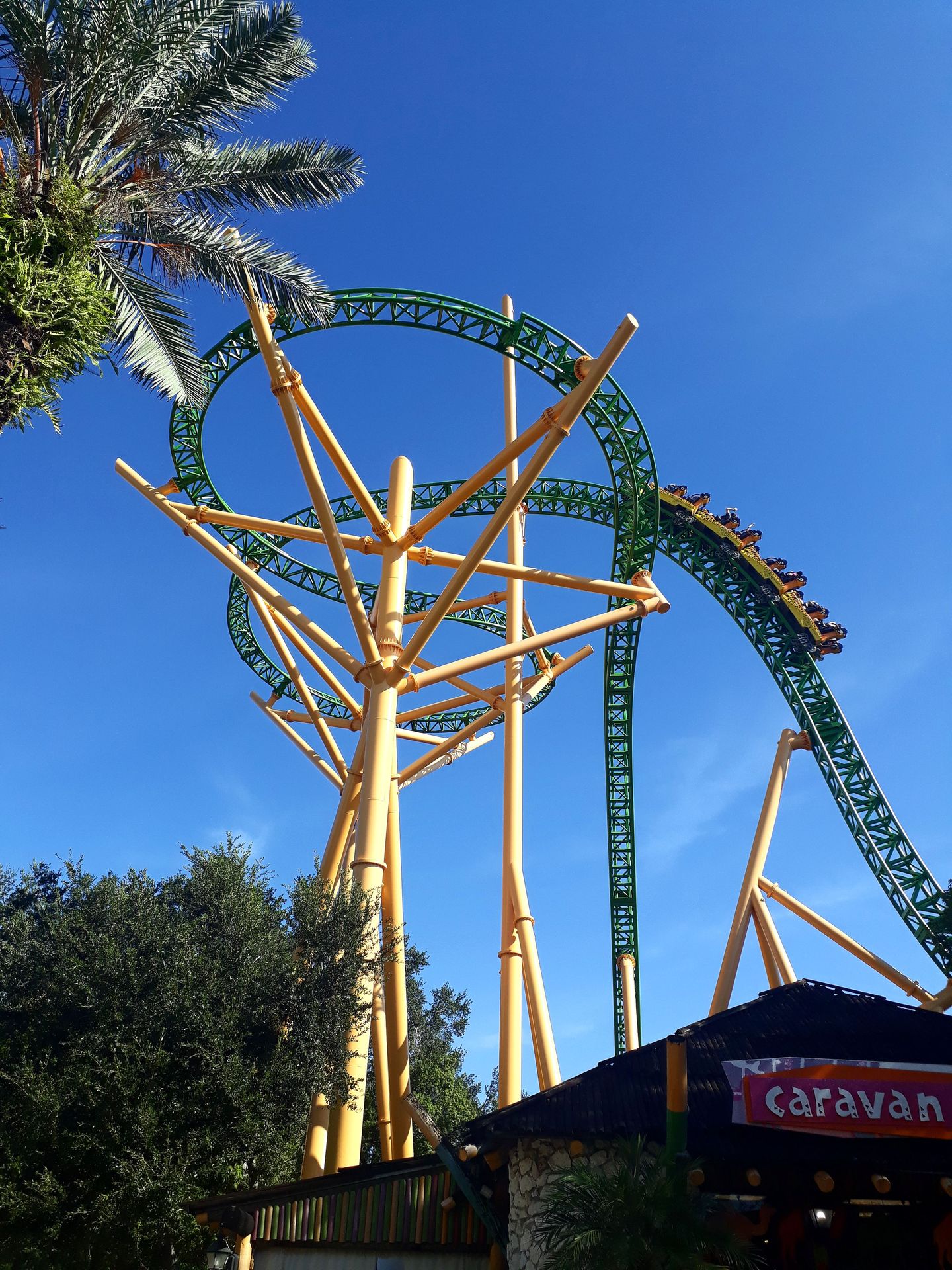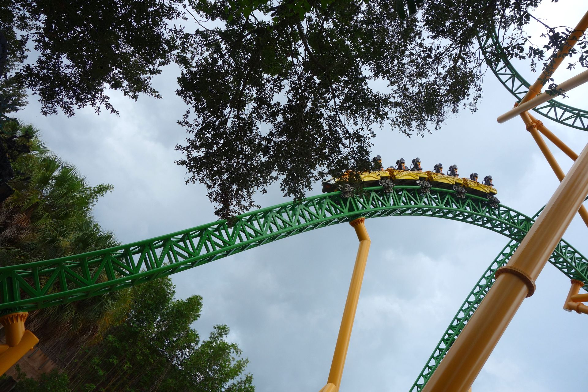 Unter der Cobra Roll von Kumba hindurch startet die Runde durch den Freizeitparkbereich.