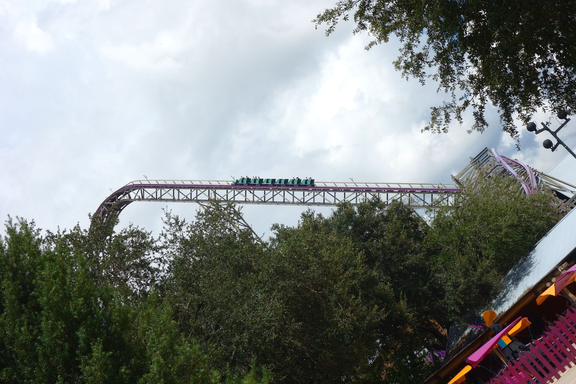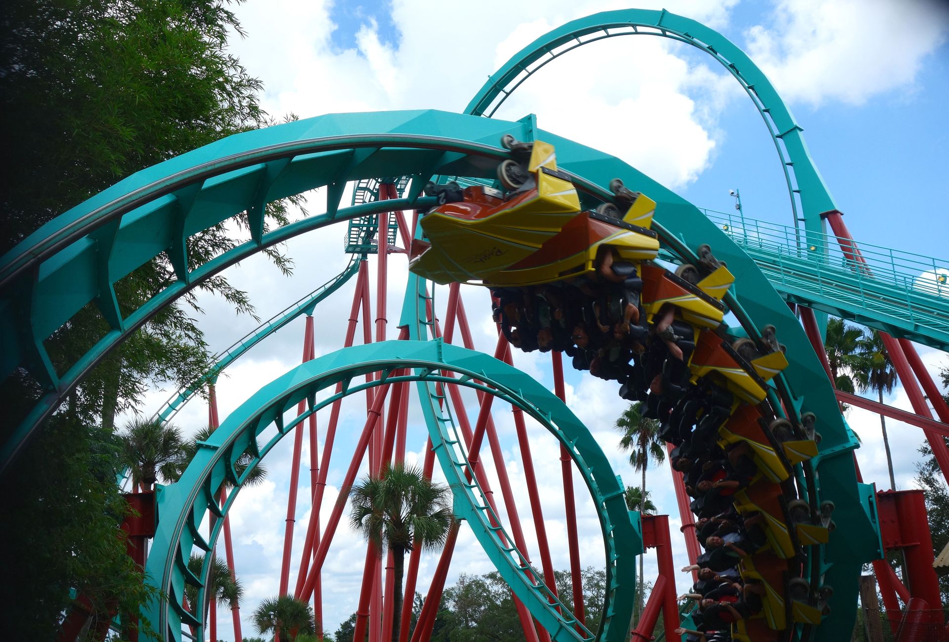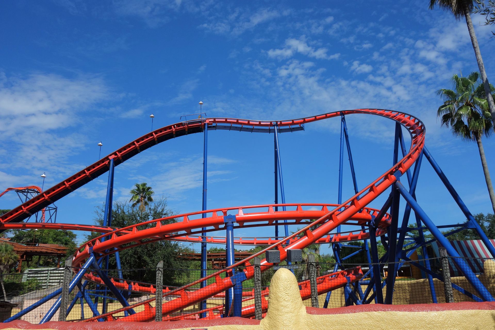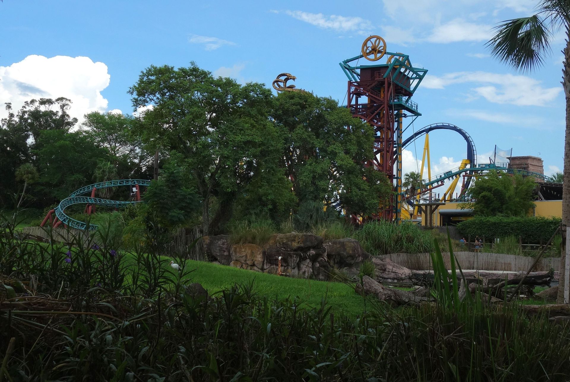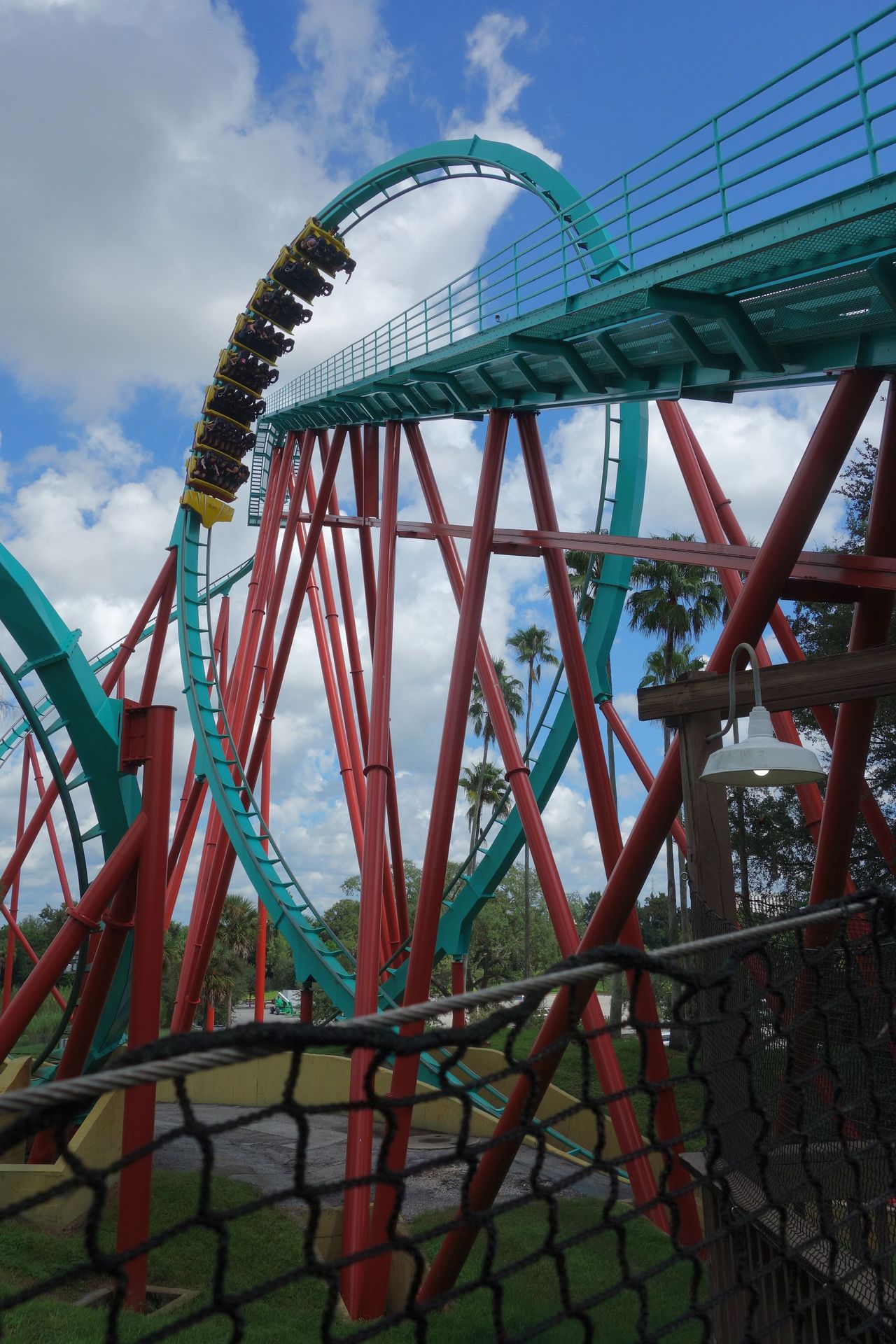 Unter der Cobra Roll von Kumba hindurch startet die Runde durch den Freizeitparkbereich.