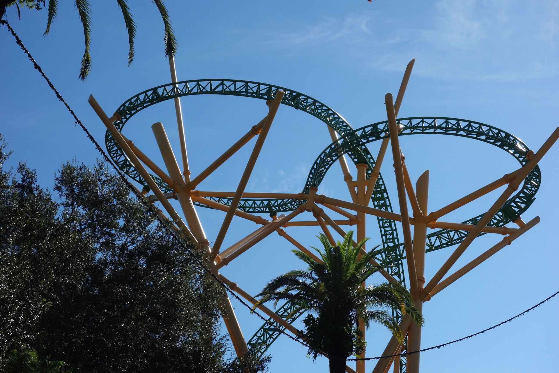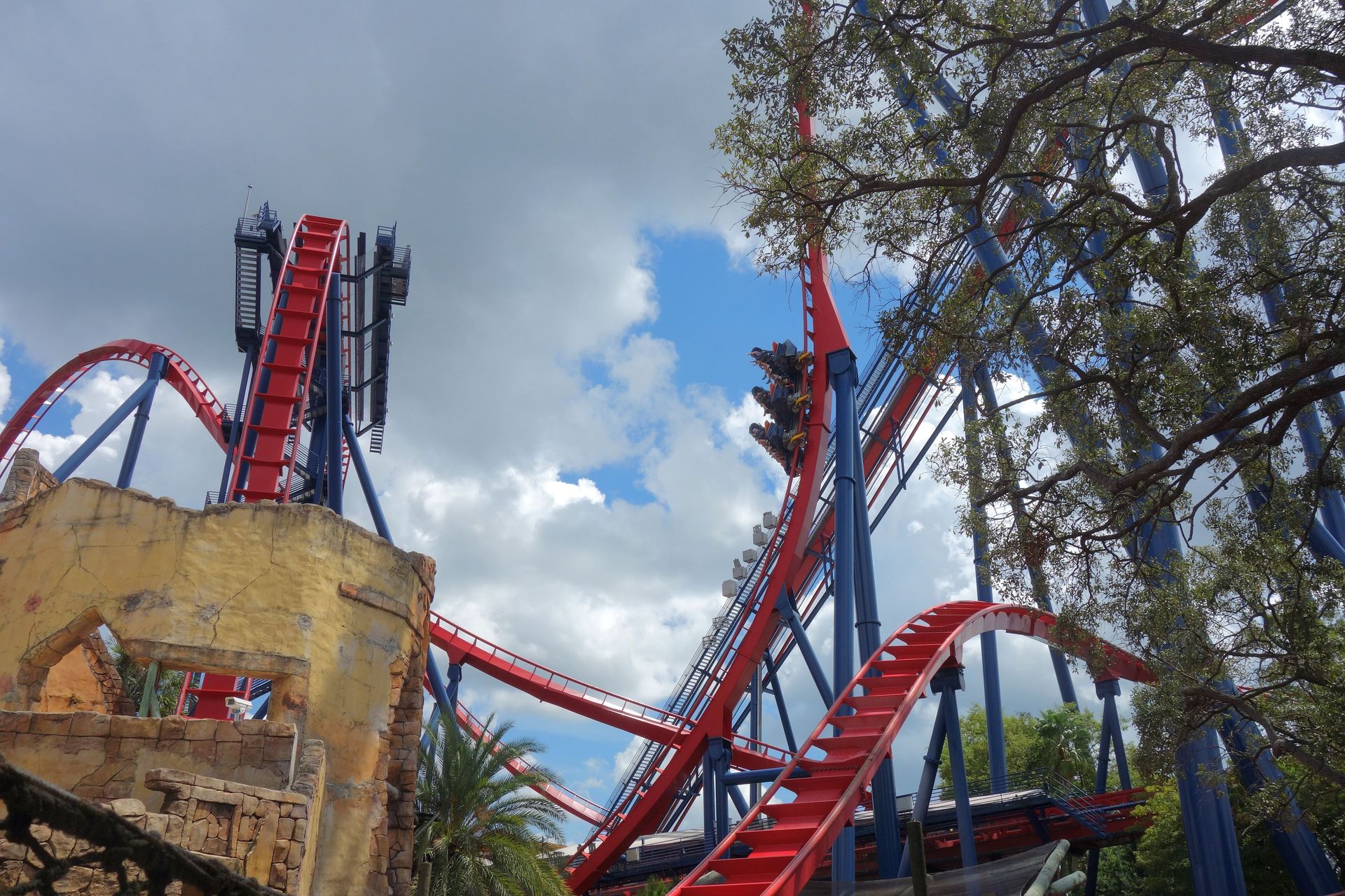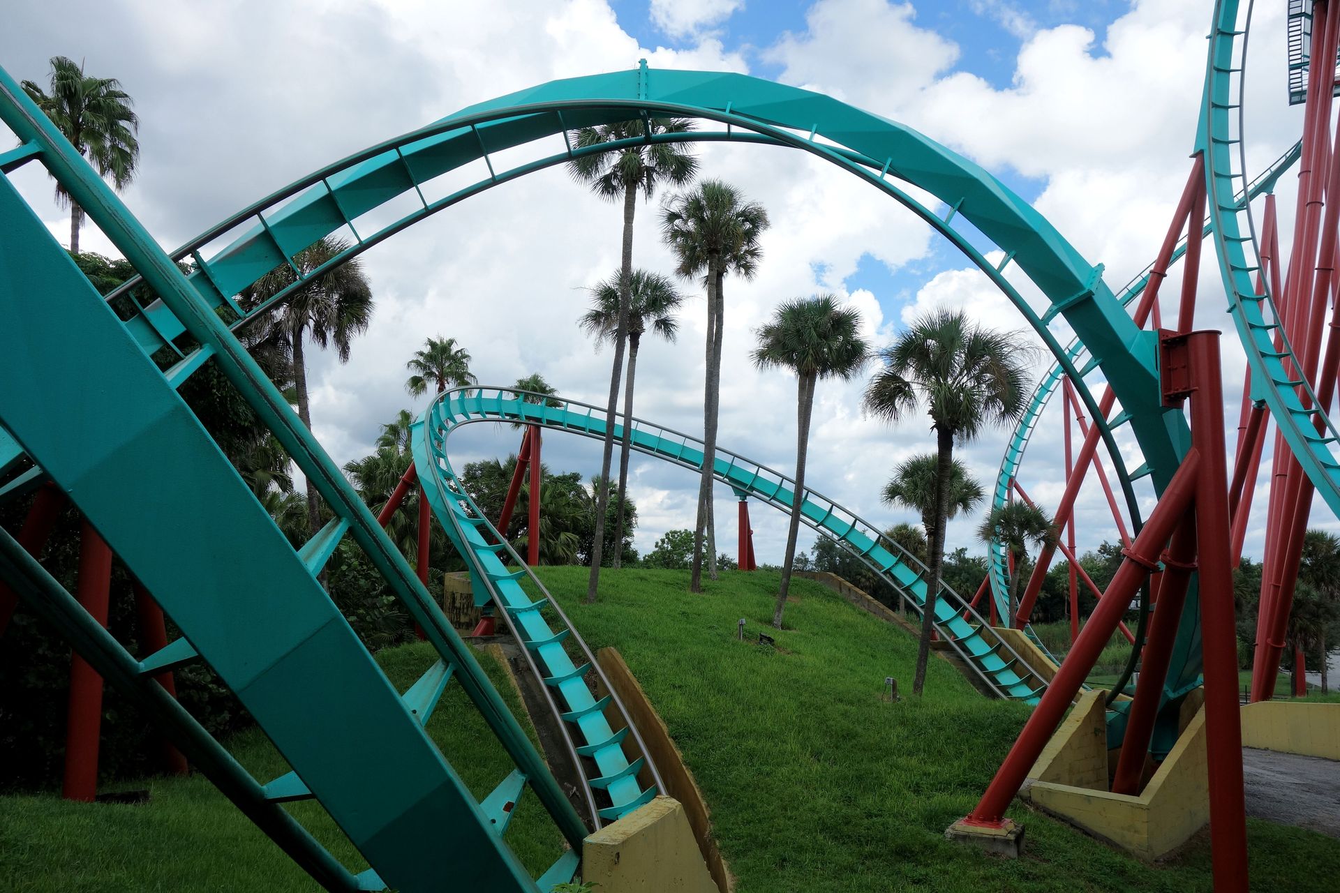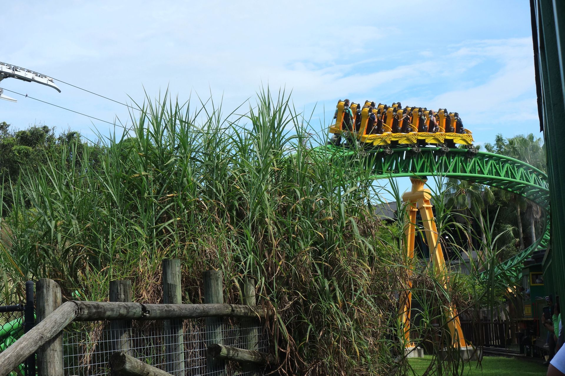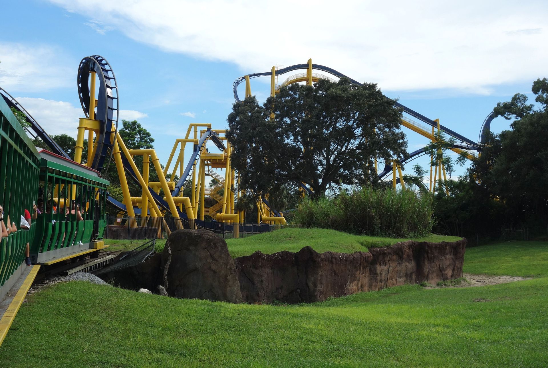 Unter der Cobra Roll von Kumba hindurch startet die Runde durch den Freizeitparkbereich.