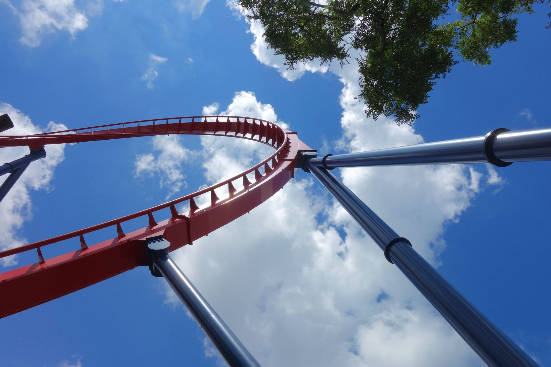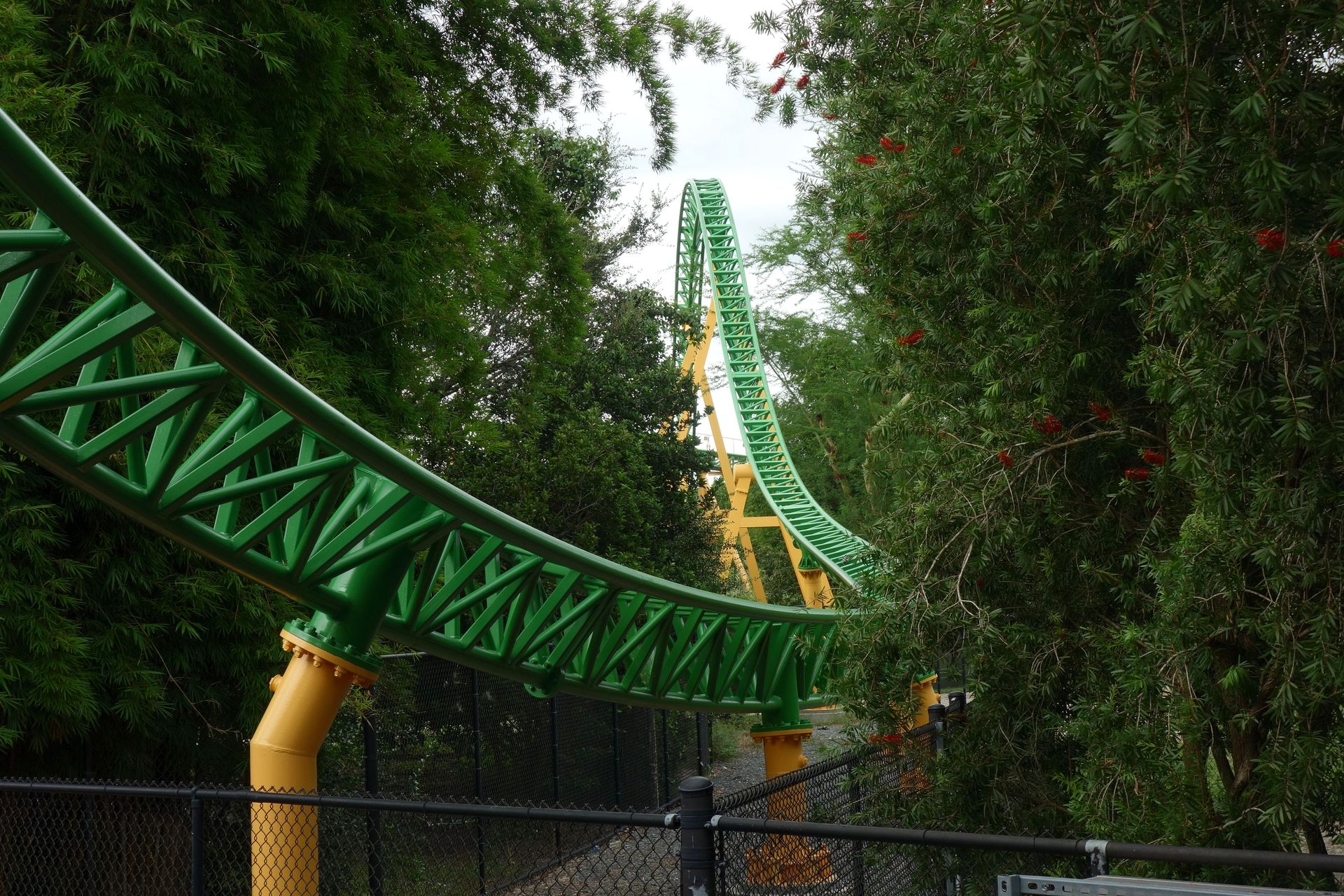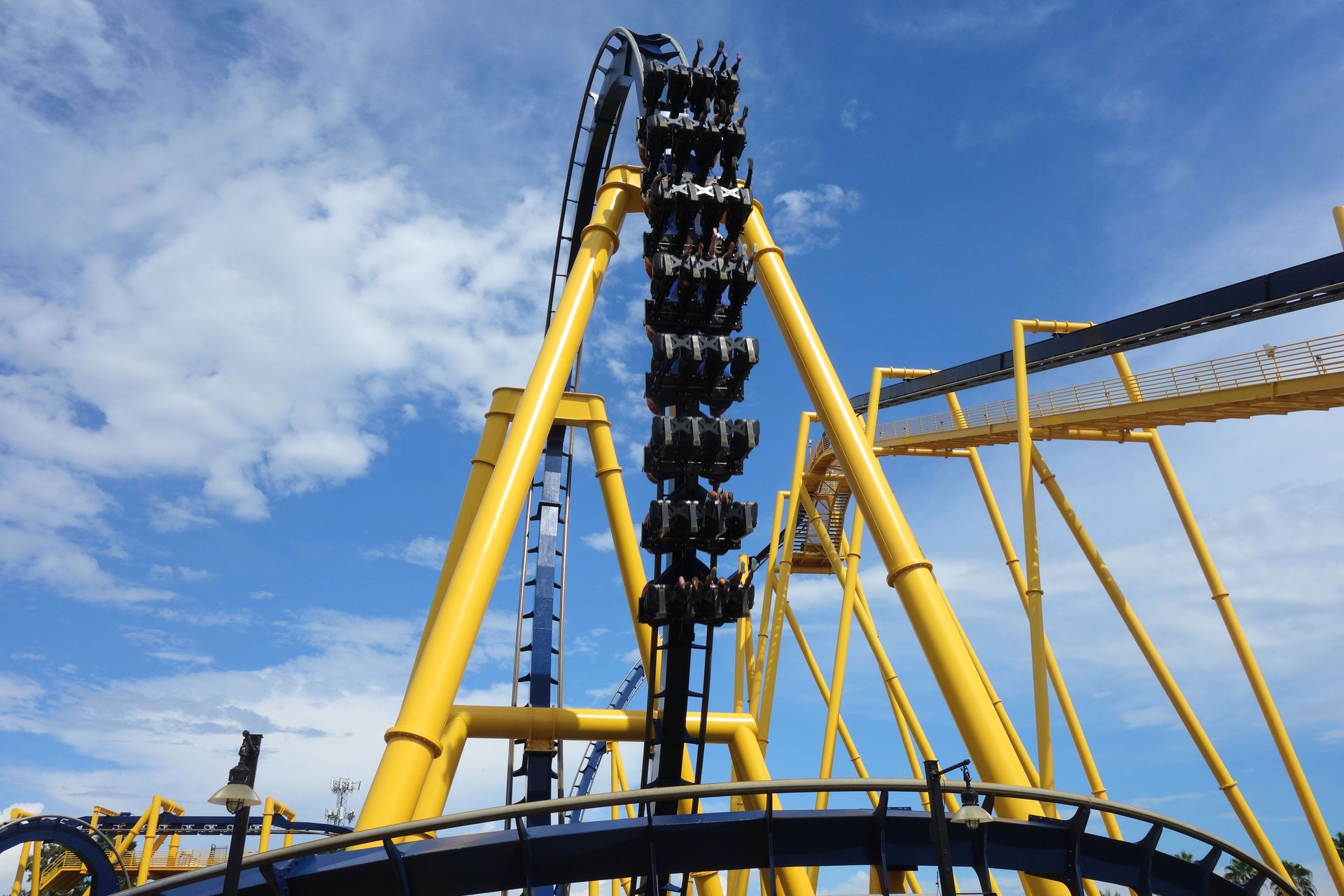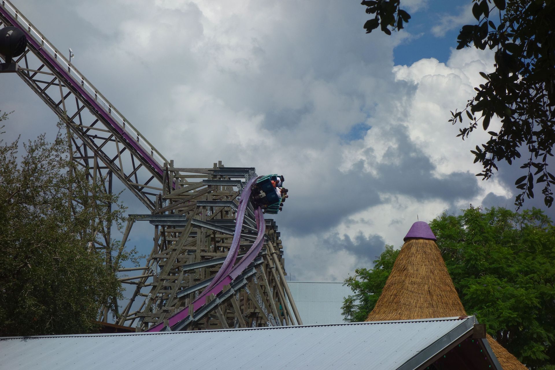 Unter der Cobra Roll von Kumba hindurch startet die Runde durch den Freizeitparkbereich.