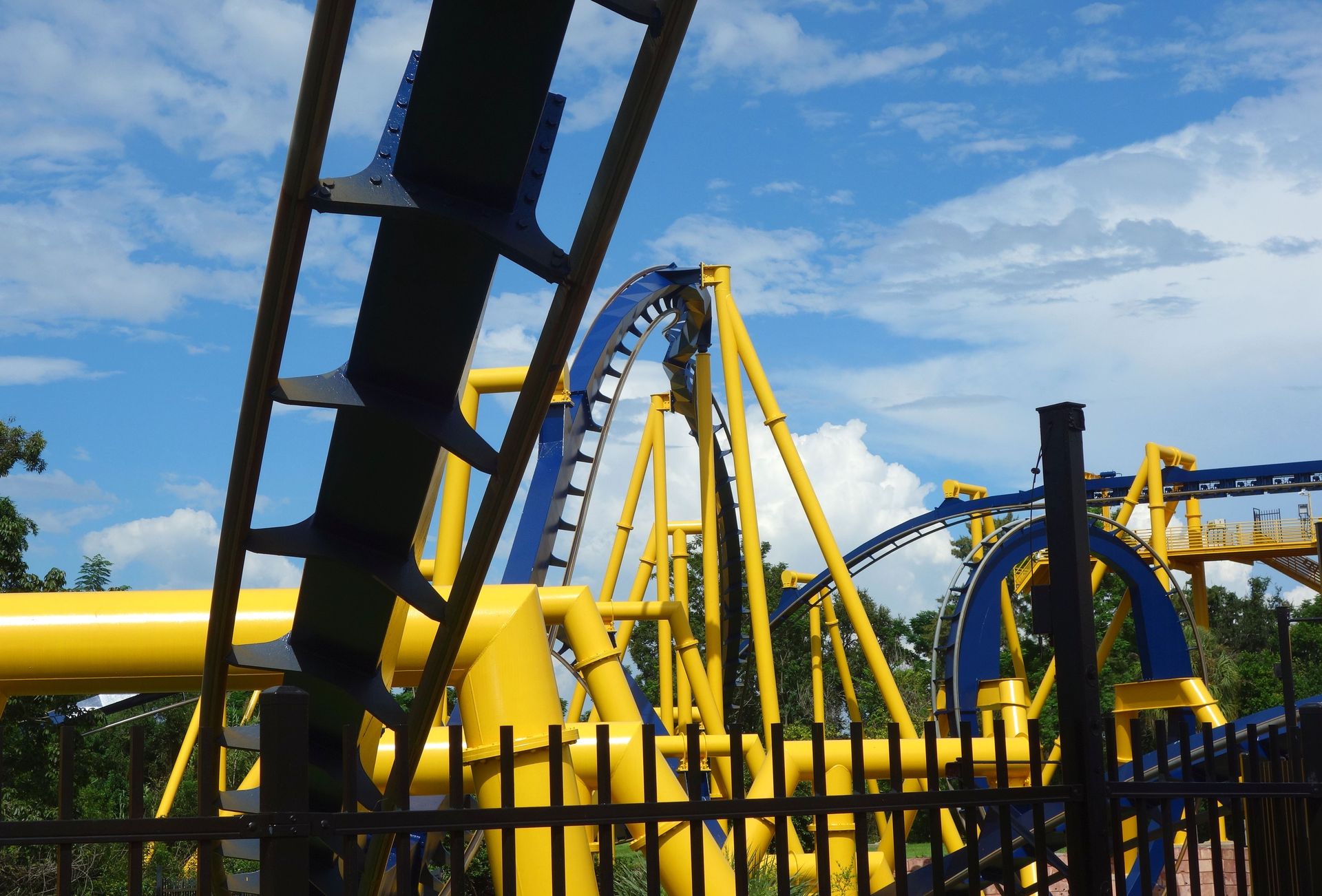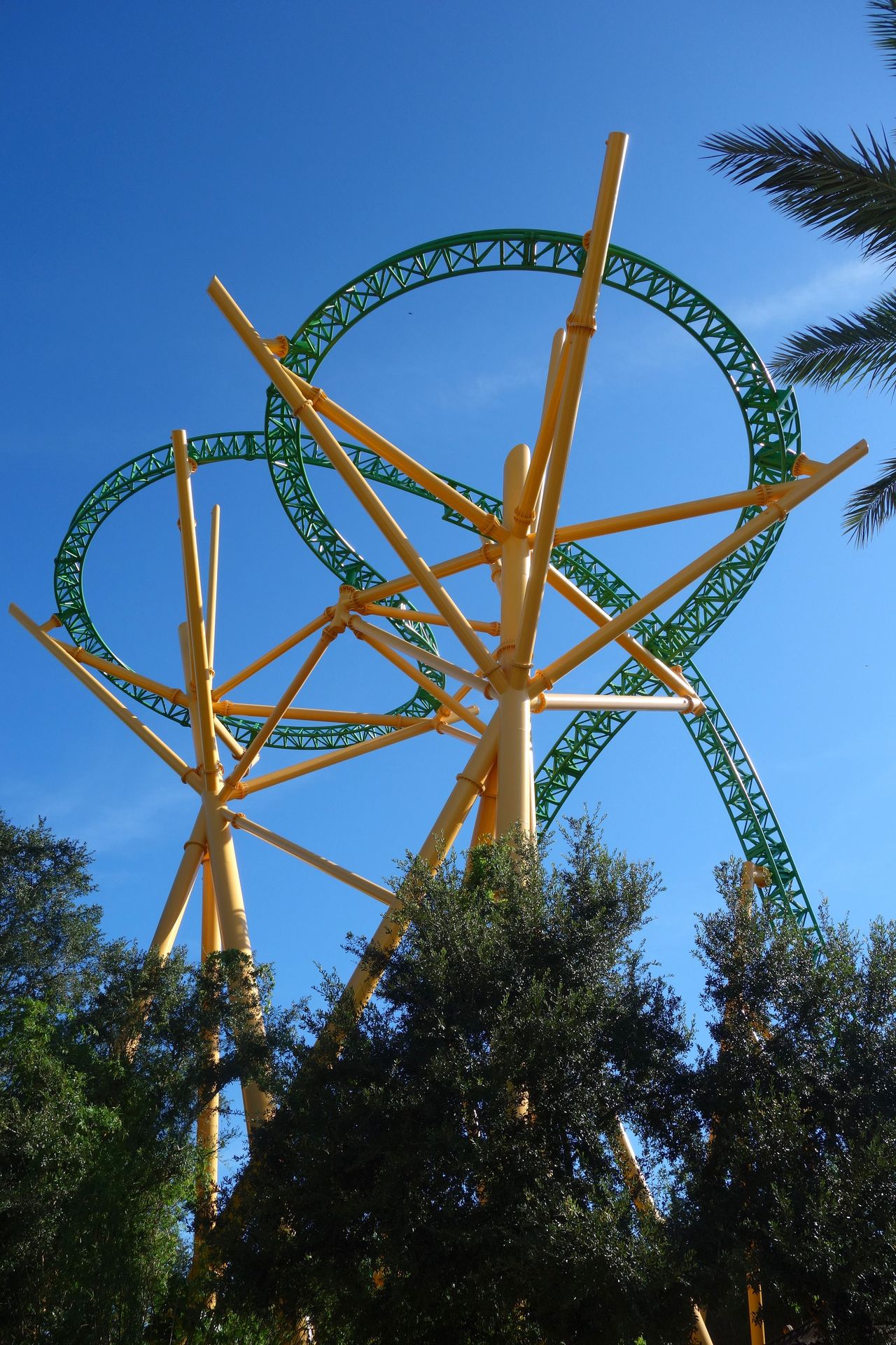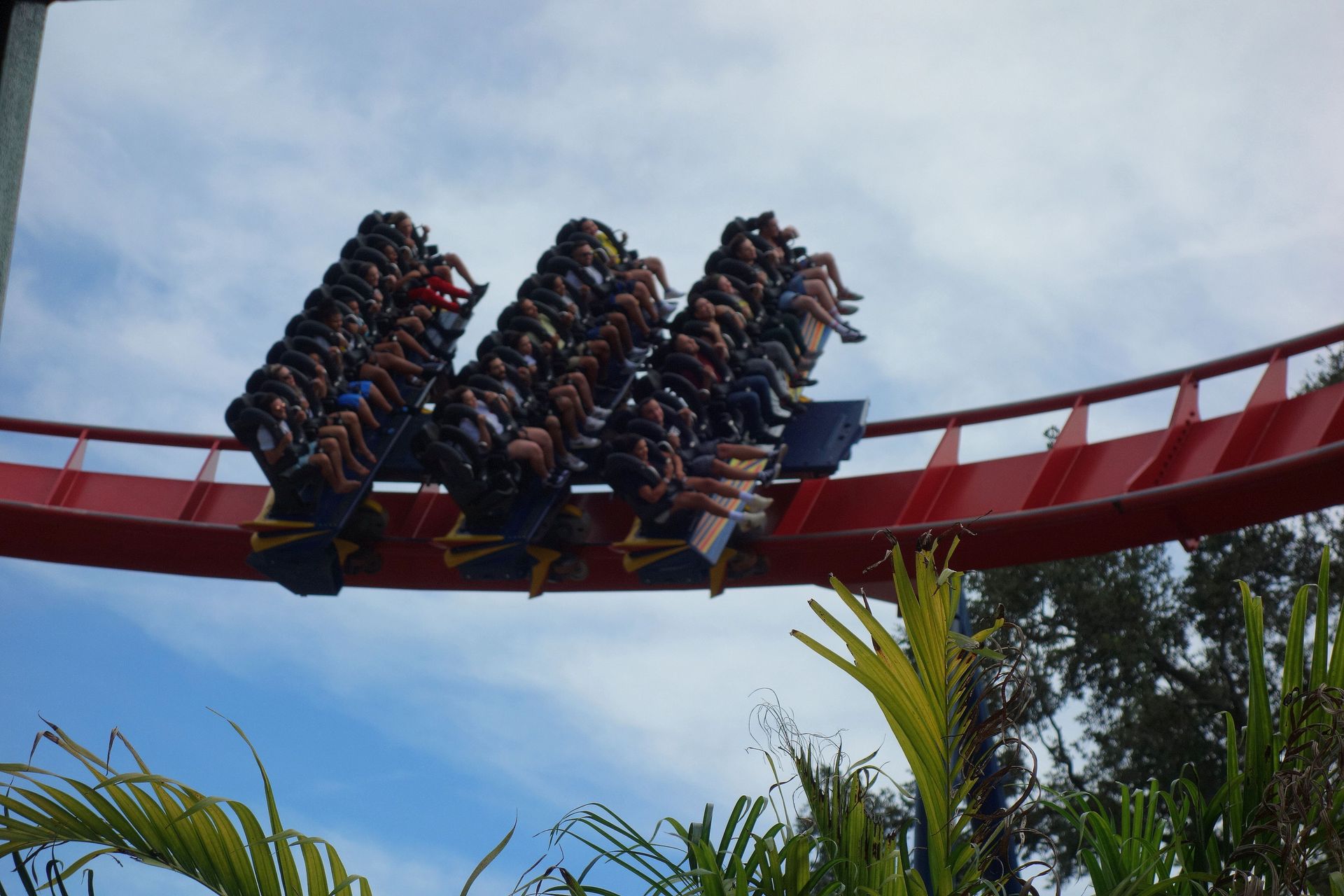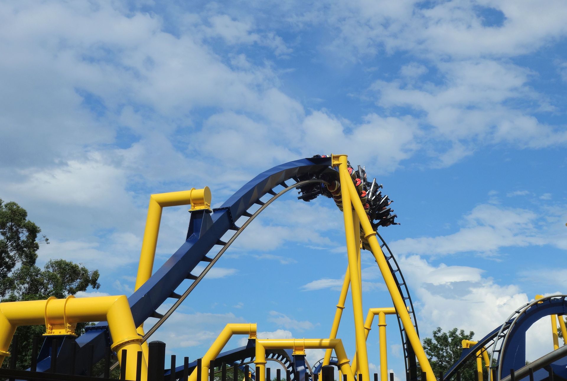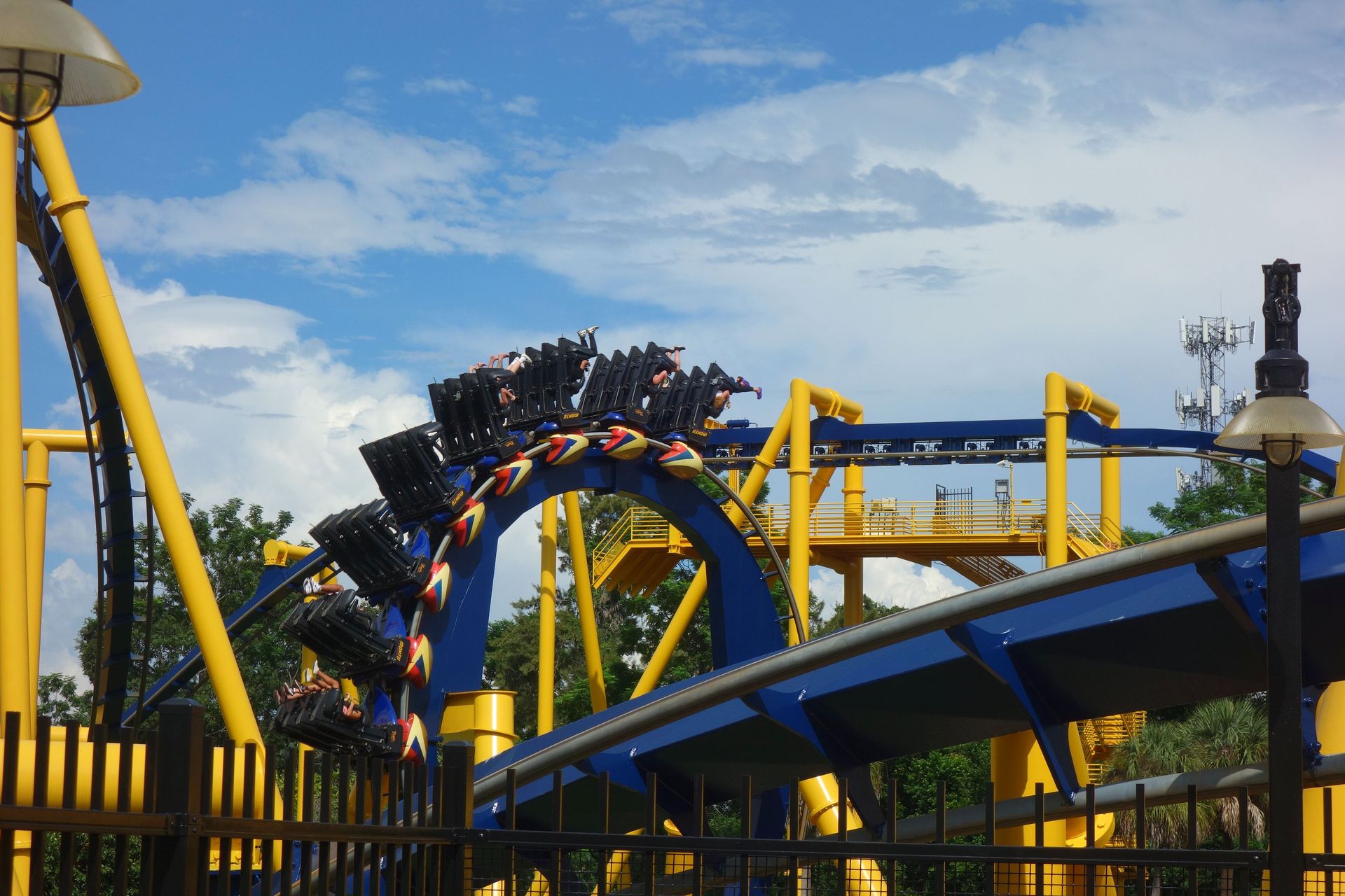 Unter der Cobra Roll von Kumba hindurch startet die Runde durch den Freizeitparkbereich.