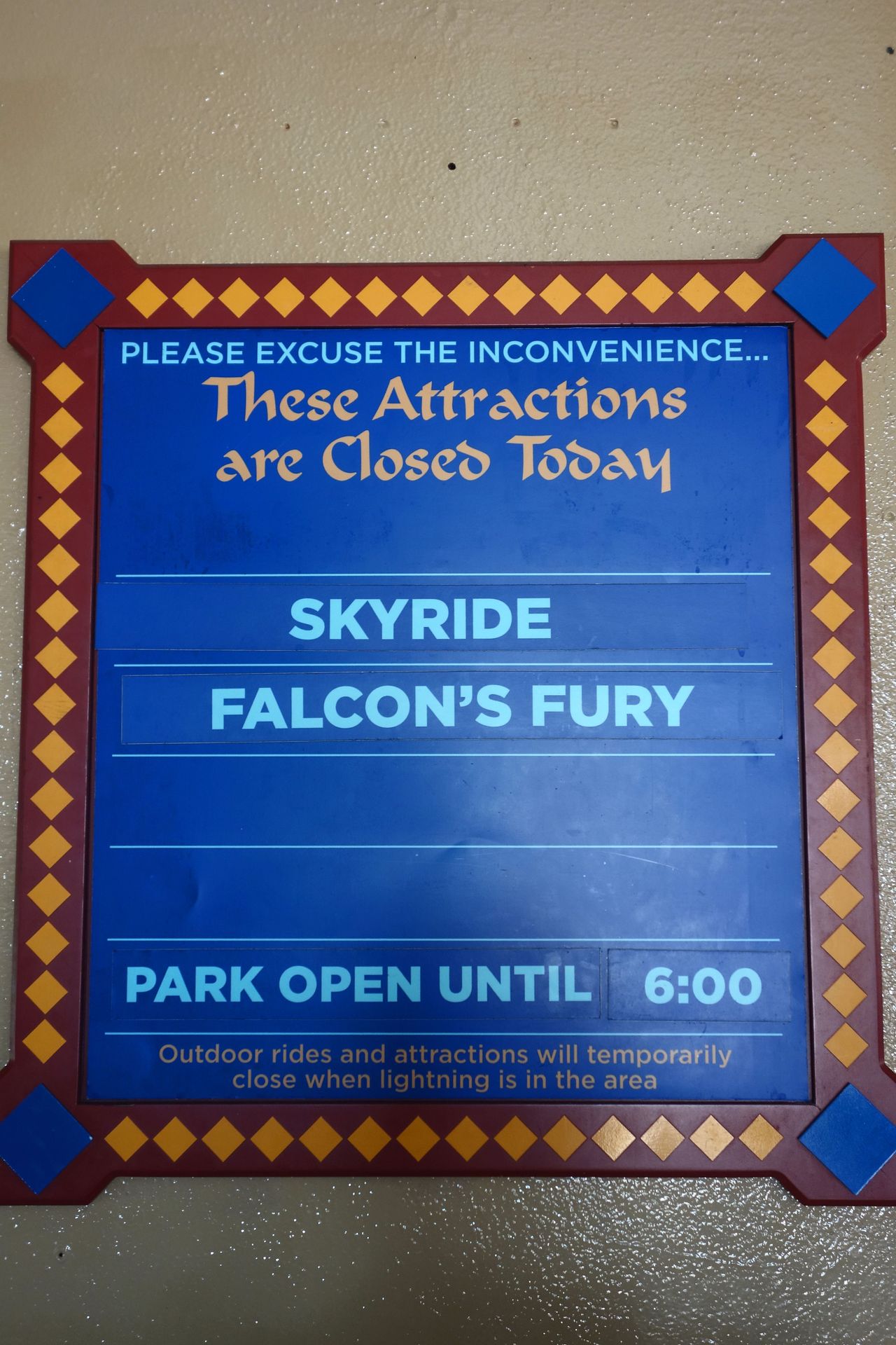 Während wir auf den Einlass warteten, konnten wir uns schonmal darauf einstellen, eine der Hauptattraktionen abseits der Coaster zu verpassen.