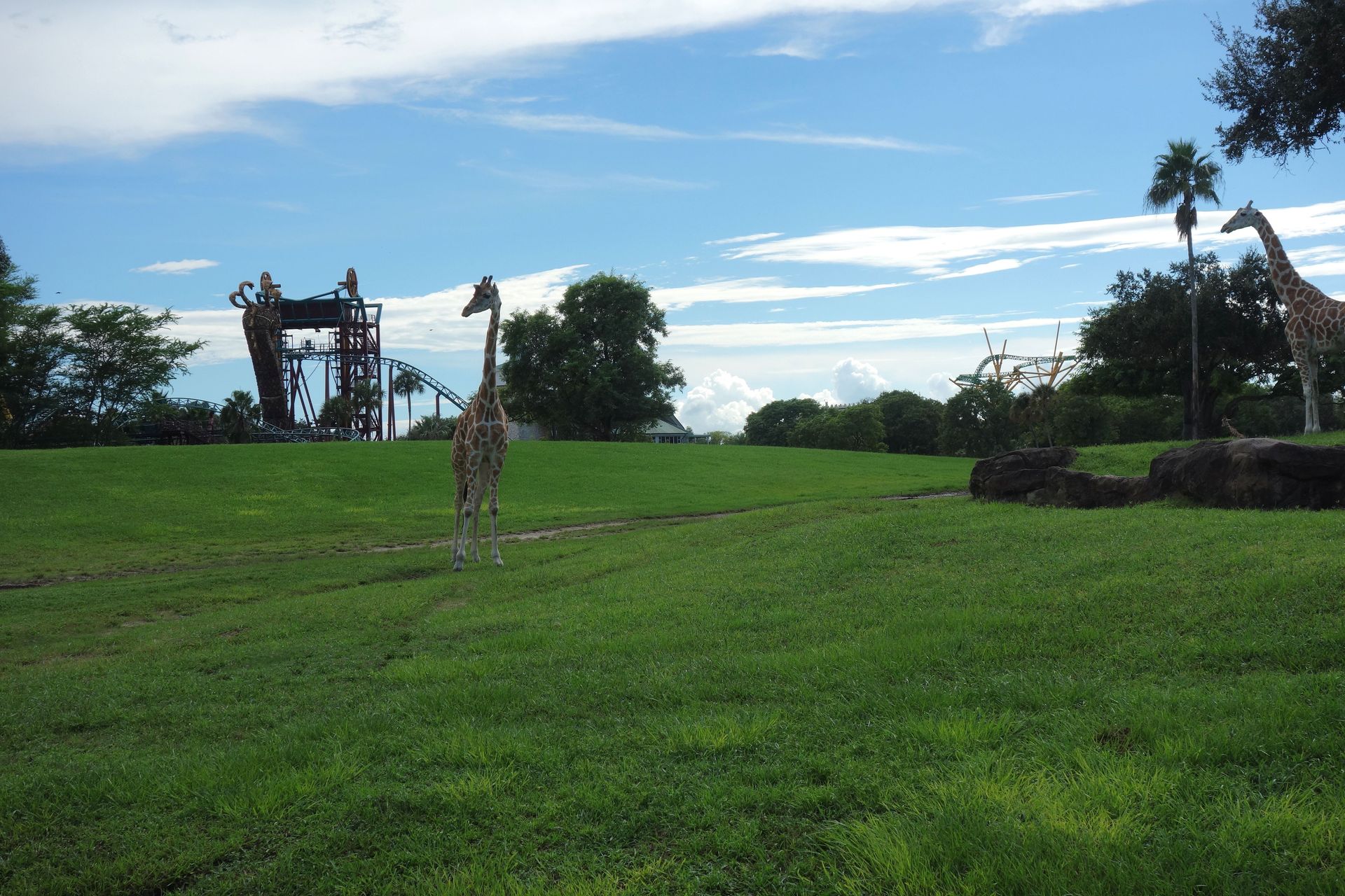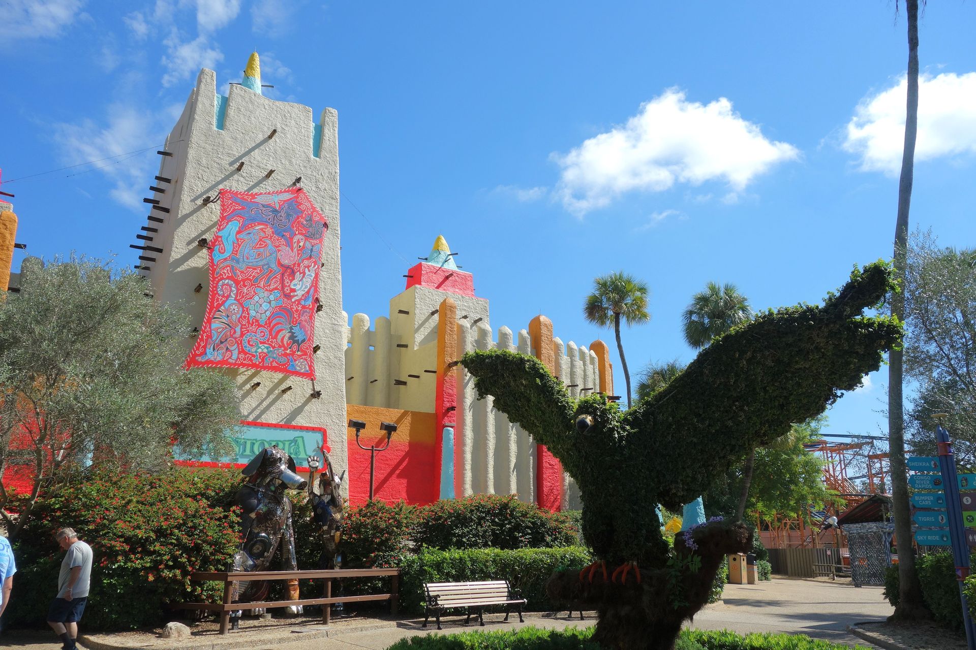 Während der Schwesterpark einem europäischen Thema unterworfen wurde, setzte sich in Tampa die afrikanische Gestaltung durch.