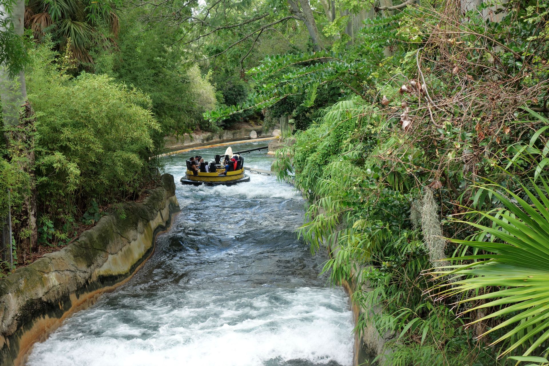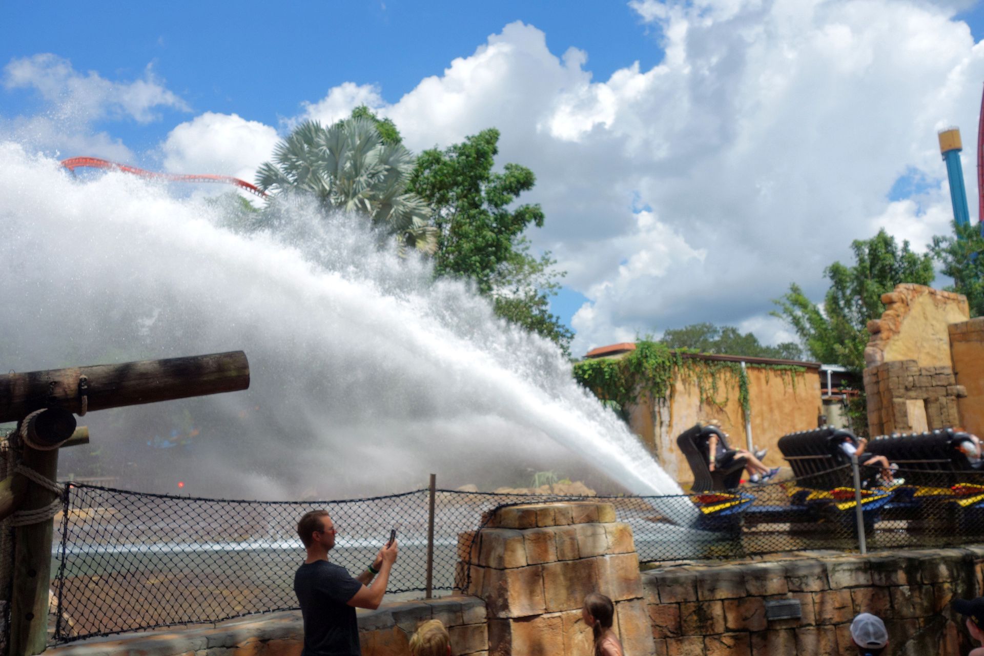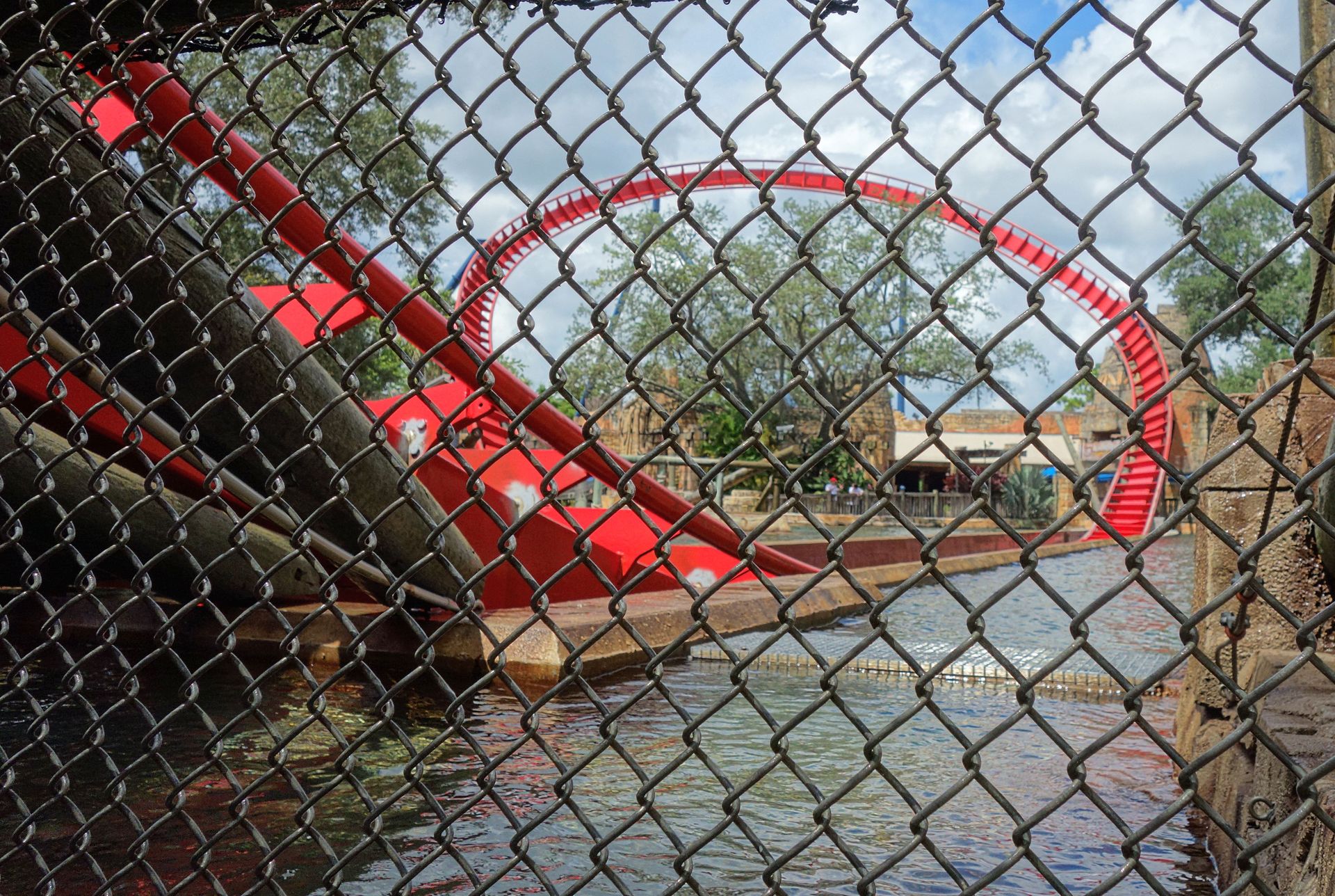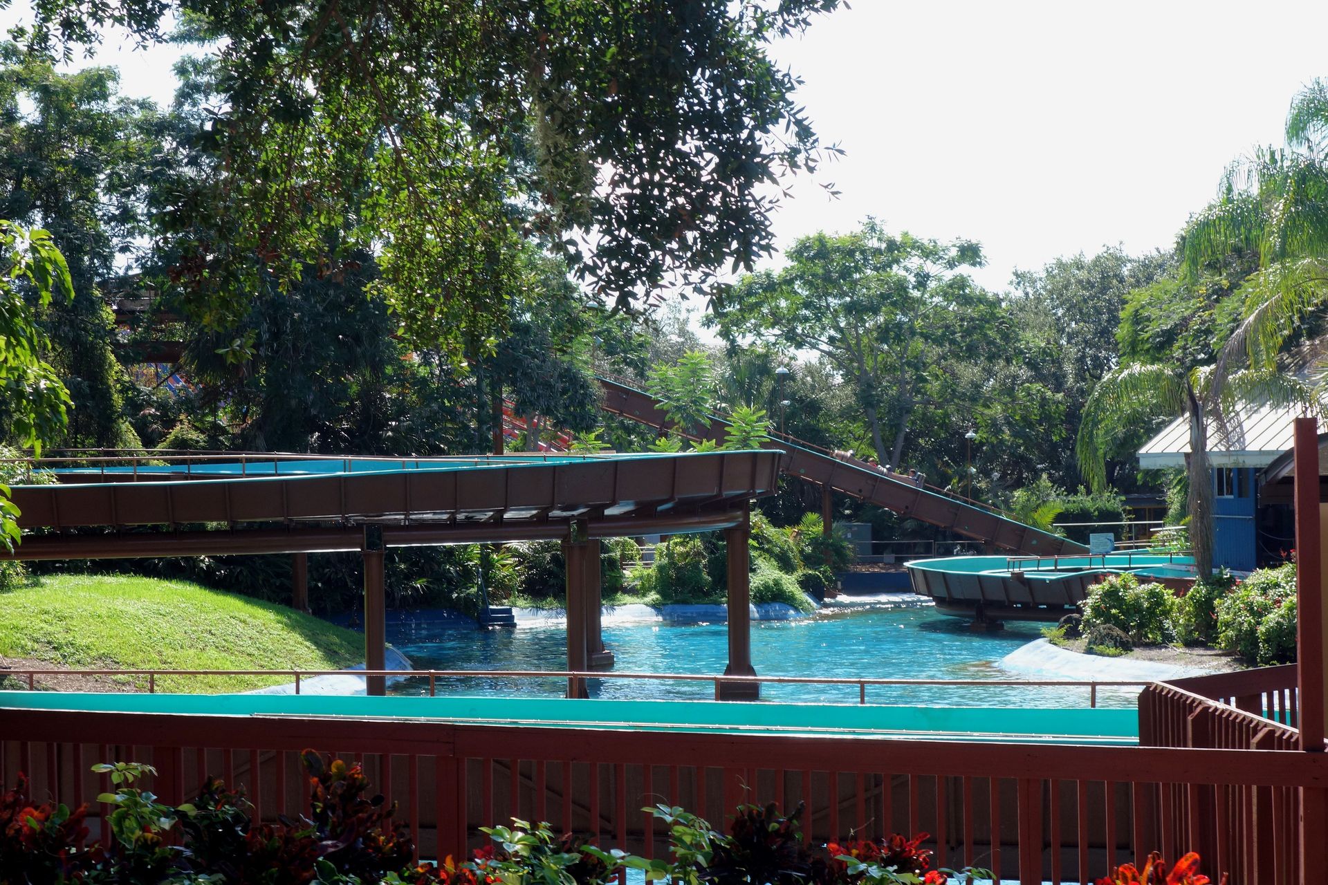 Also um genau zu sein wurde an dieser Stelle zunächst 1972 mit Livingston's Landing eine klassische Bootsfahrt über einen See eröffnet. Für 1977 wurde der See dann zu einem Fluss umgebaut und die Ufer aufwändig thematisiert. Der so entstandene African Queen Boat Ride sollte die Antwort auf Disneys Jungle Cruise sein und hatte das, worauf Walt bei seiner Version letztlich verzichtet hatte: Echte Tiere. 1989 bastelte Arrow dann einen Führungskanal in den bestehenden Fluss. Die erste Schleife des alten Boat Rides wurde dabei wohl abgekürzt, am Ende entstand dafür ein Lifthill samt 16 Meter hohem Drop. Fertig war Tanganyika Tidal Wave, wobei eben der bestehende Flusslauf samt Theming größtenteils beibehalten wurden. Doch auch damit war 2016 Schluss. Die Anlage stand noch zwei Jahre herum, ehe sie schließlich abgerissen wurde, um Platz für Tigris zu schaffen.