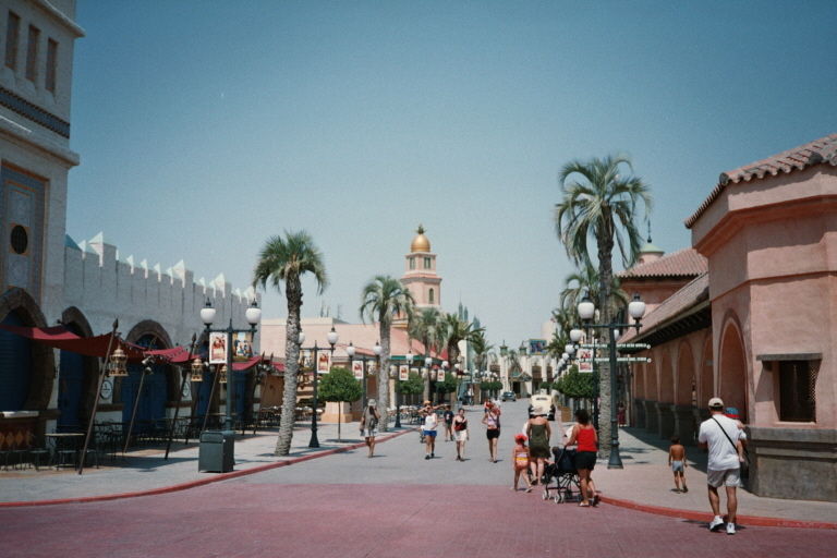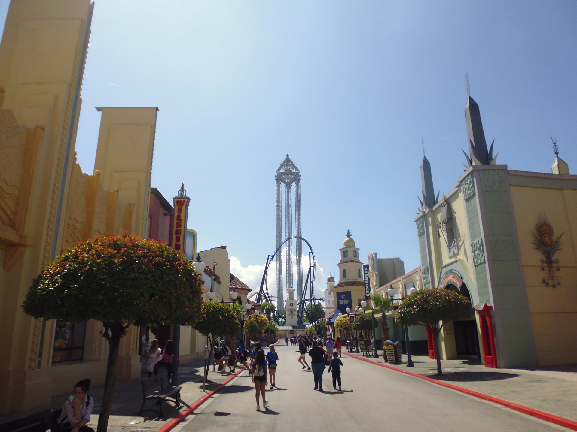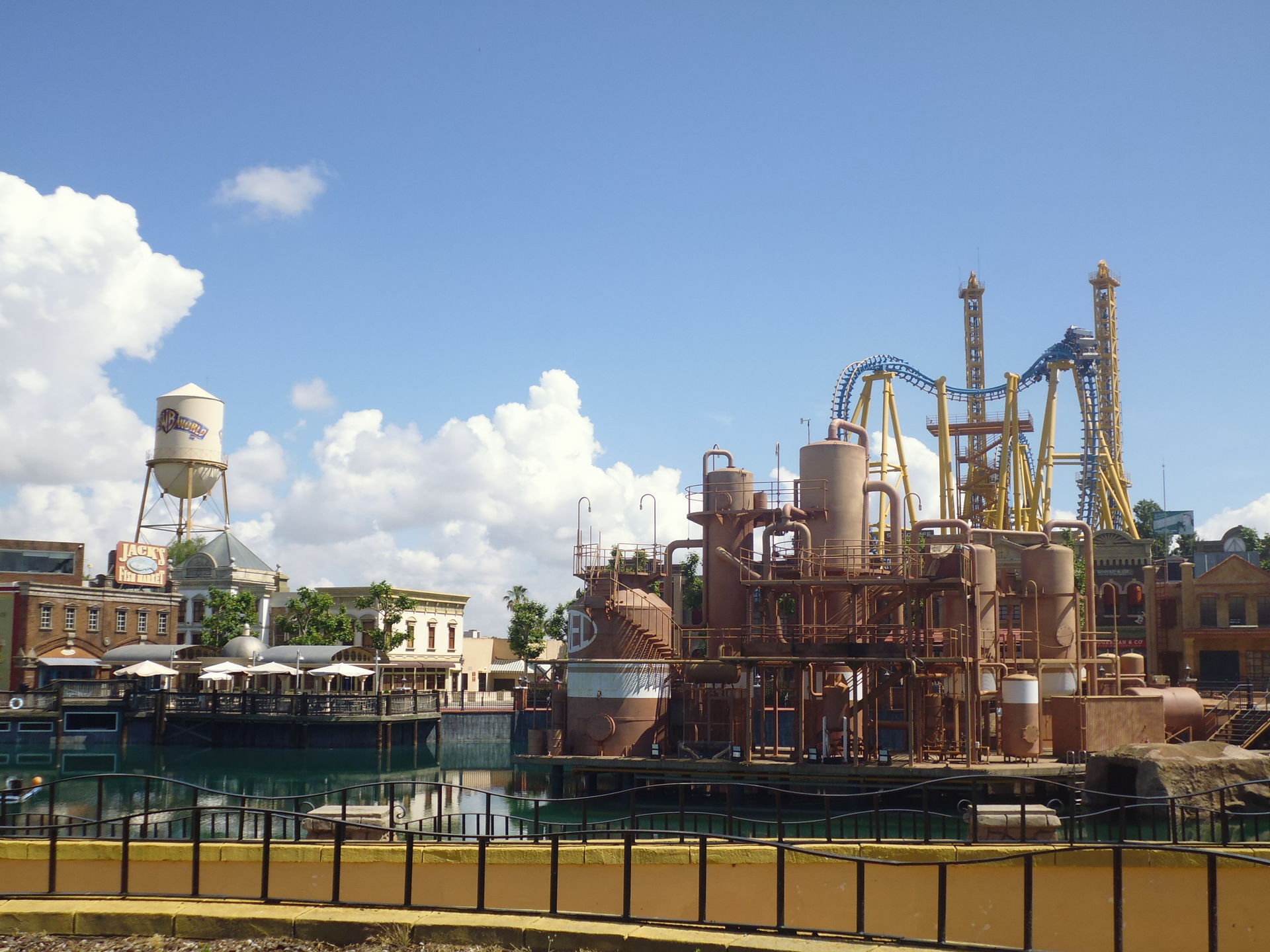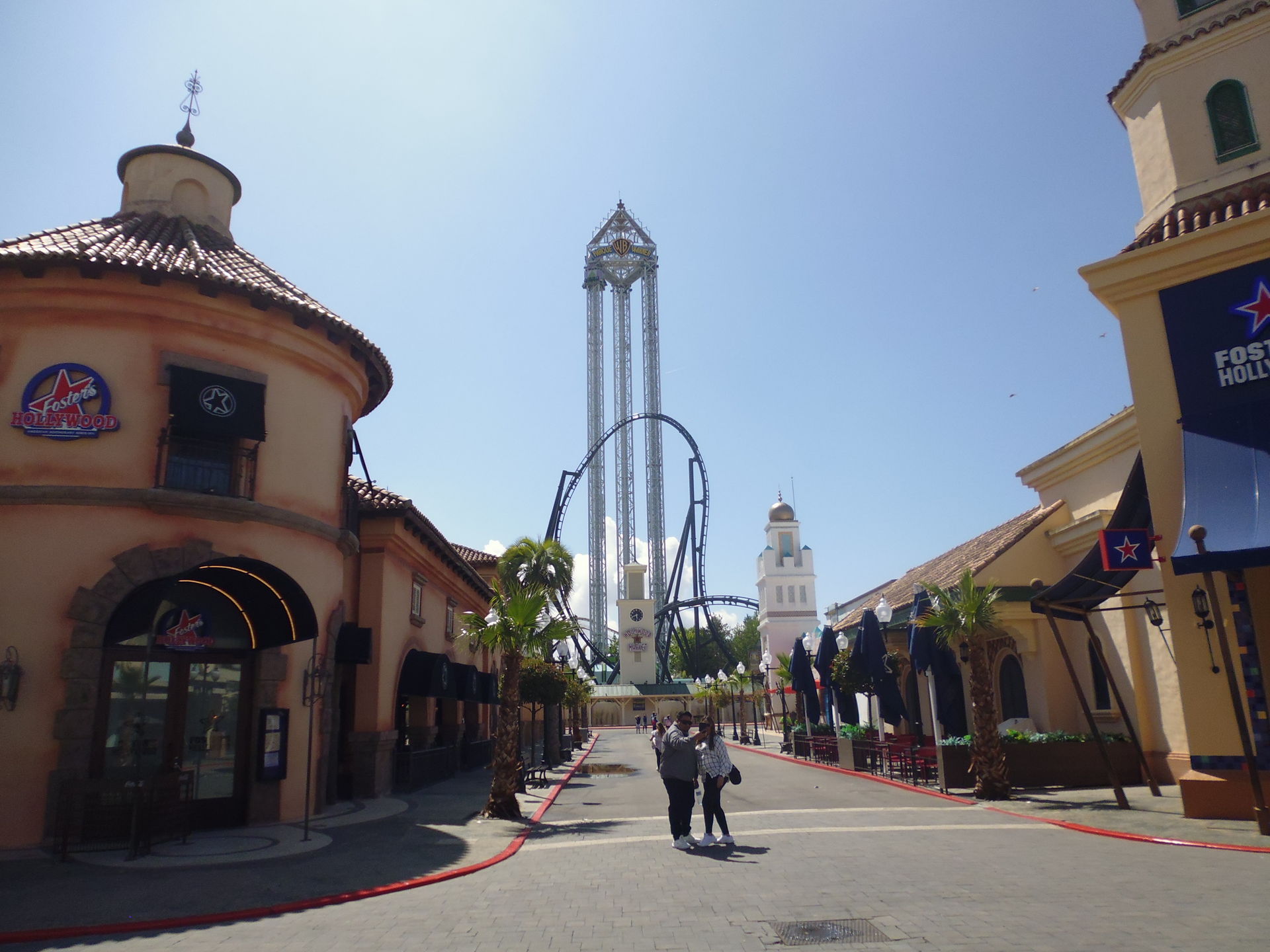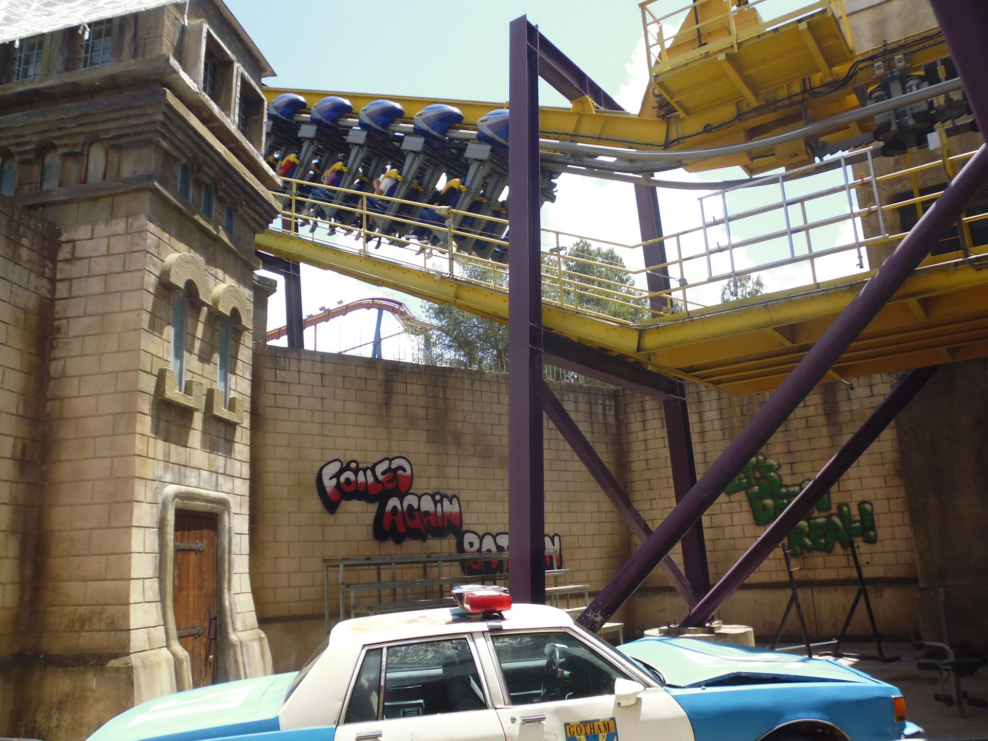 Inzwischen war es etwa 15.00 Uhr und beim Fotografieren des Roadrunner-Coasters und dem anschliessenden Flanieren zurück nach Gotham City fiel mir auf, dass sämtliche Restaurants und Essensstände aus allen Nähten platzten. Es schien tatsächlich so zu sein, dass die ganzen Schulklassen, die mir bis dahin so viel Mühsal bereitet und mich so manchen Nerv gekostet haben, sich einfach mal alle gleichzeitig und gemeinsam zum Mittagessen getroffen und zurückgezogen haben.