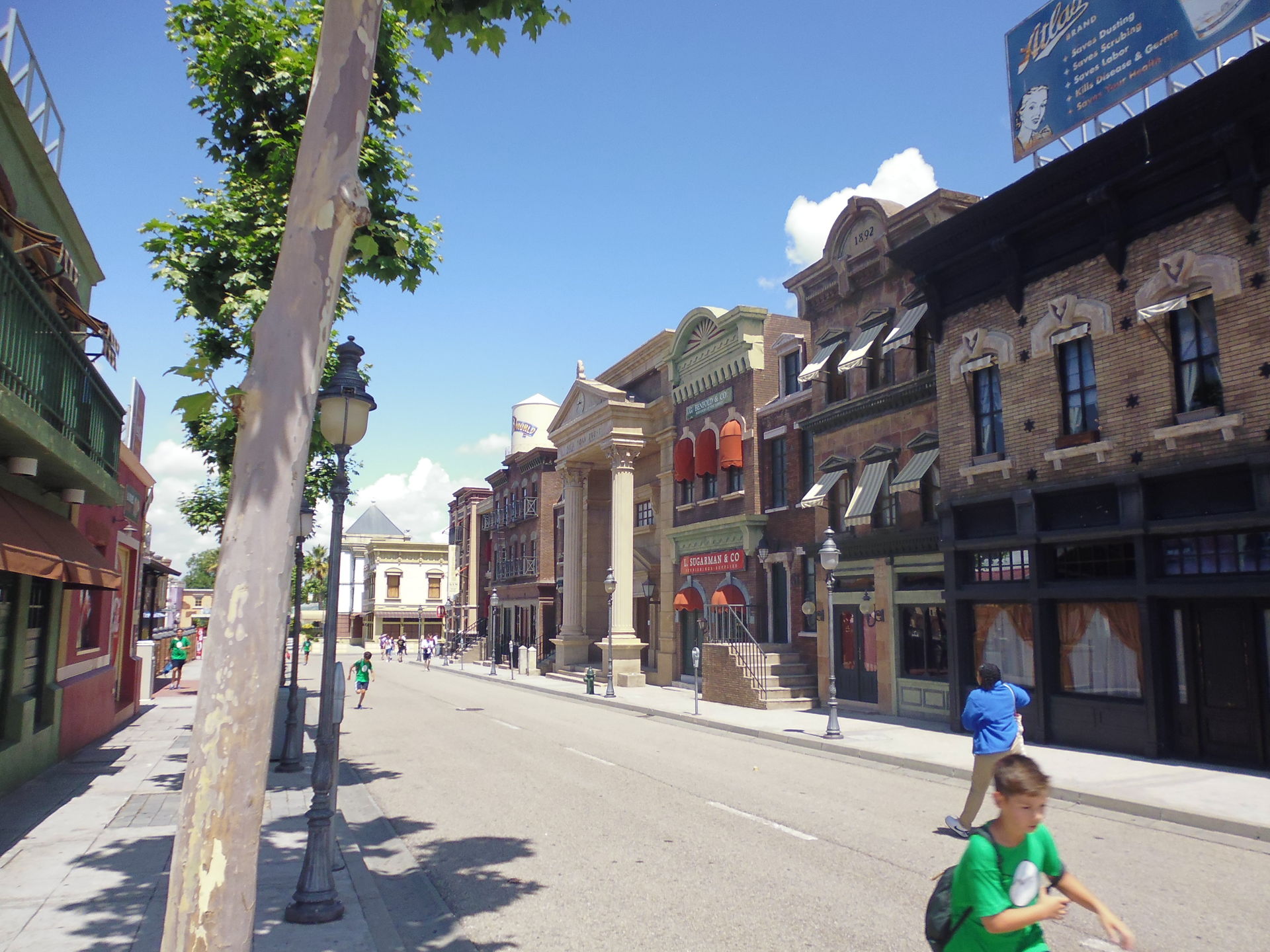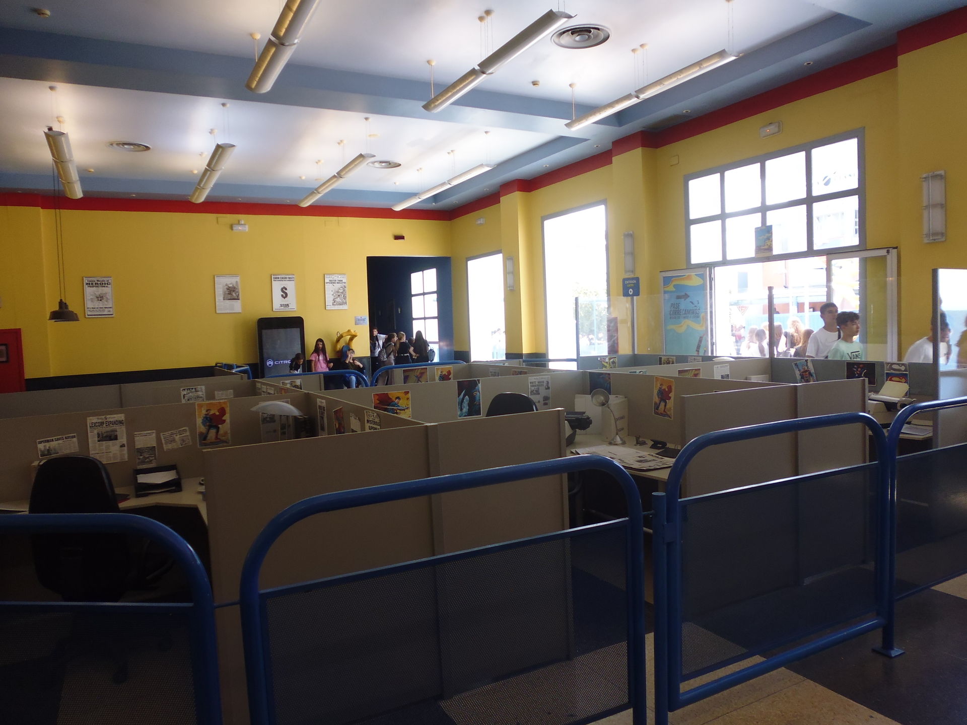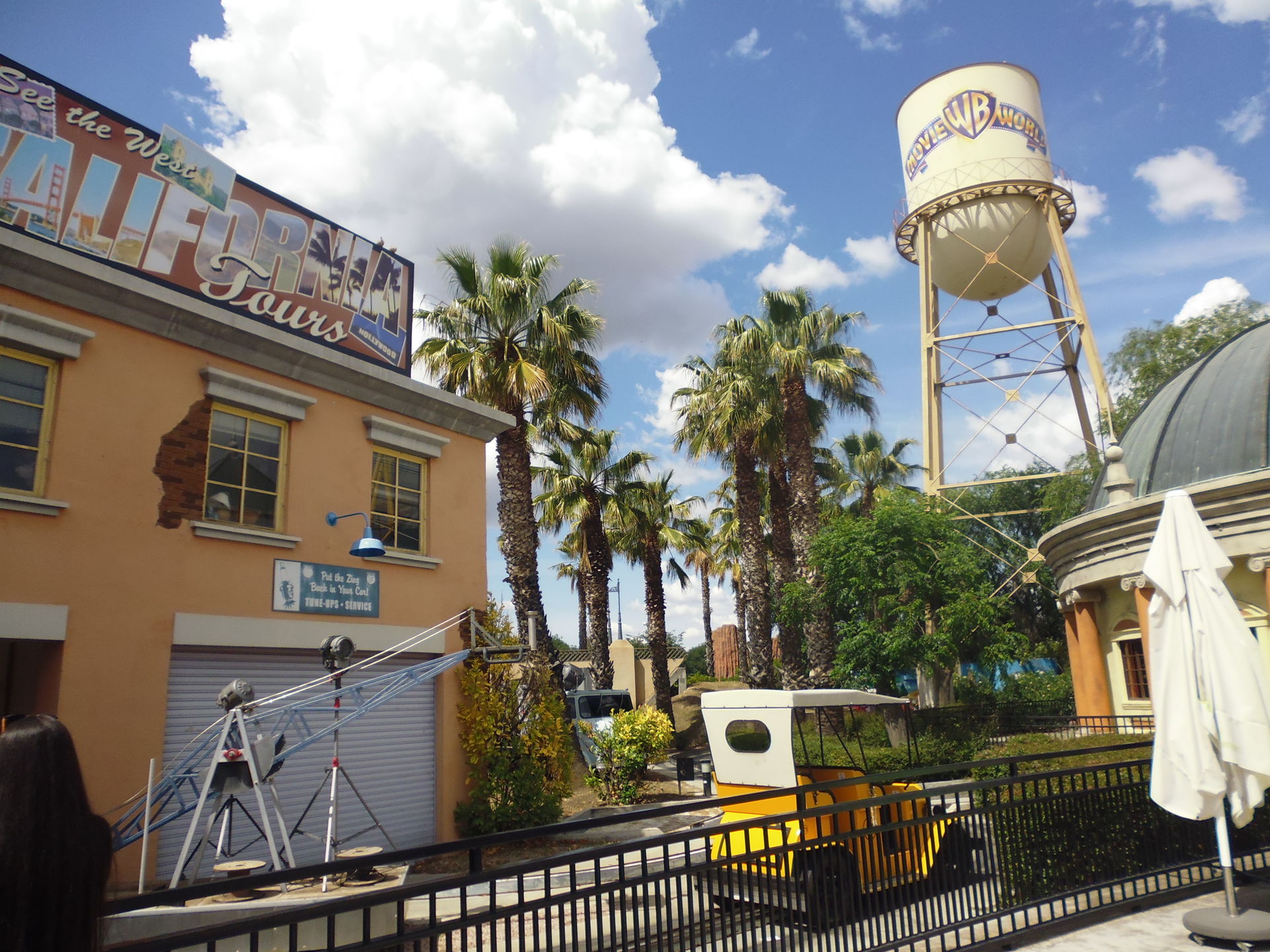 Die nächste halbe Stunde habe ich eigentlich nur mit Fotografieren, Umherwandern und Wieder-Umkehren nach entsetztem Blick auf vorherrschende Schlangen und Abfertigungstakte verbracht. Der Park war schlicht unangenehm voll. Wartezeitanzeigen gab es zwar, aber die waren bis auf eine Ausnahme alle einfach abgeschaltet, so dass man eben selber einschätzen musste, ob man sich das jetzt antun will oder nicht. Bei Superman stand man z.B. bis in die Zickzacks nach den Daily-Planet-Büros, und obschon beide Züge im Einsatz waren, verliess nur etwa alle fünf Minuten einer die Station... Beim Batman-Klon (muss man inzwischen ja so betonen
