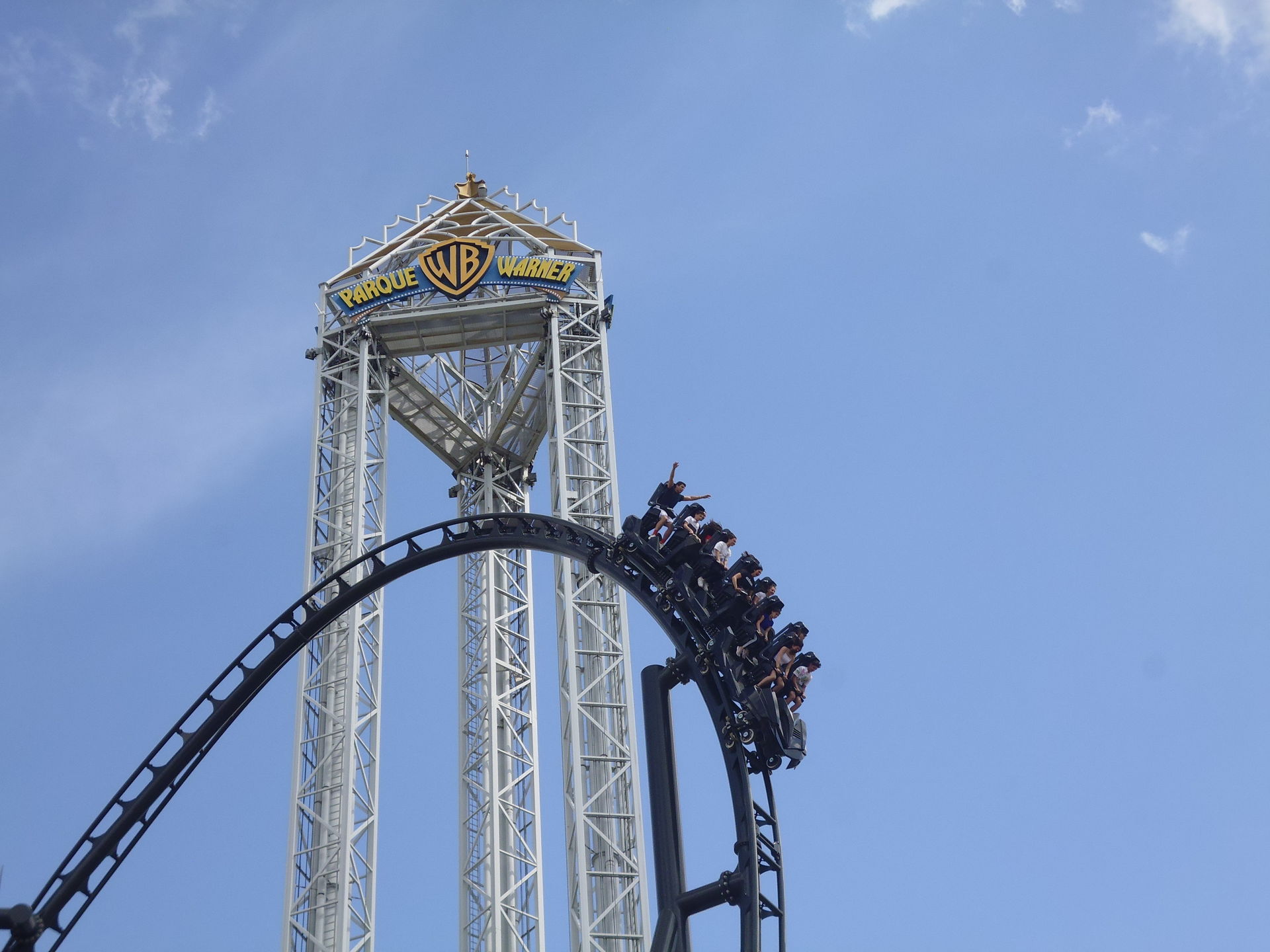 Ja, warum denn nicht gleich, ihr Schulgören und Verantwortlichen von Parques Reunidos?! Hier kam mir jetzt mein auf Freizeitpark-Trips antrainierter Kamelmodus wieder zugute, bei dem mir ein reichhaltiges Frühstück oftmals bis in den Abend hinein reicht. Und die Tatsache, dass die Spanier ihre Mittagsruhe offenbar auch bei einem Parkbesuch heilig halten. Ihr könnt euch sicher denken, dass ich diese glücklichen Umstände nun bis zum Umkippen ausgenutzt habe und in den folgenden etwa eineinhalb Stunden dreimal mit Superman, zweimal mit dem Batman-Klon und viermal Stunt Fall gefahren bin. Oder als eben erfundenes lateinisches Bonmot ausgedrückt: