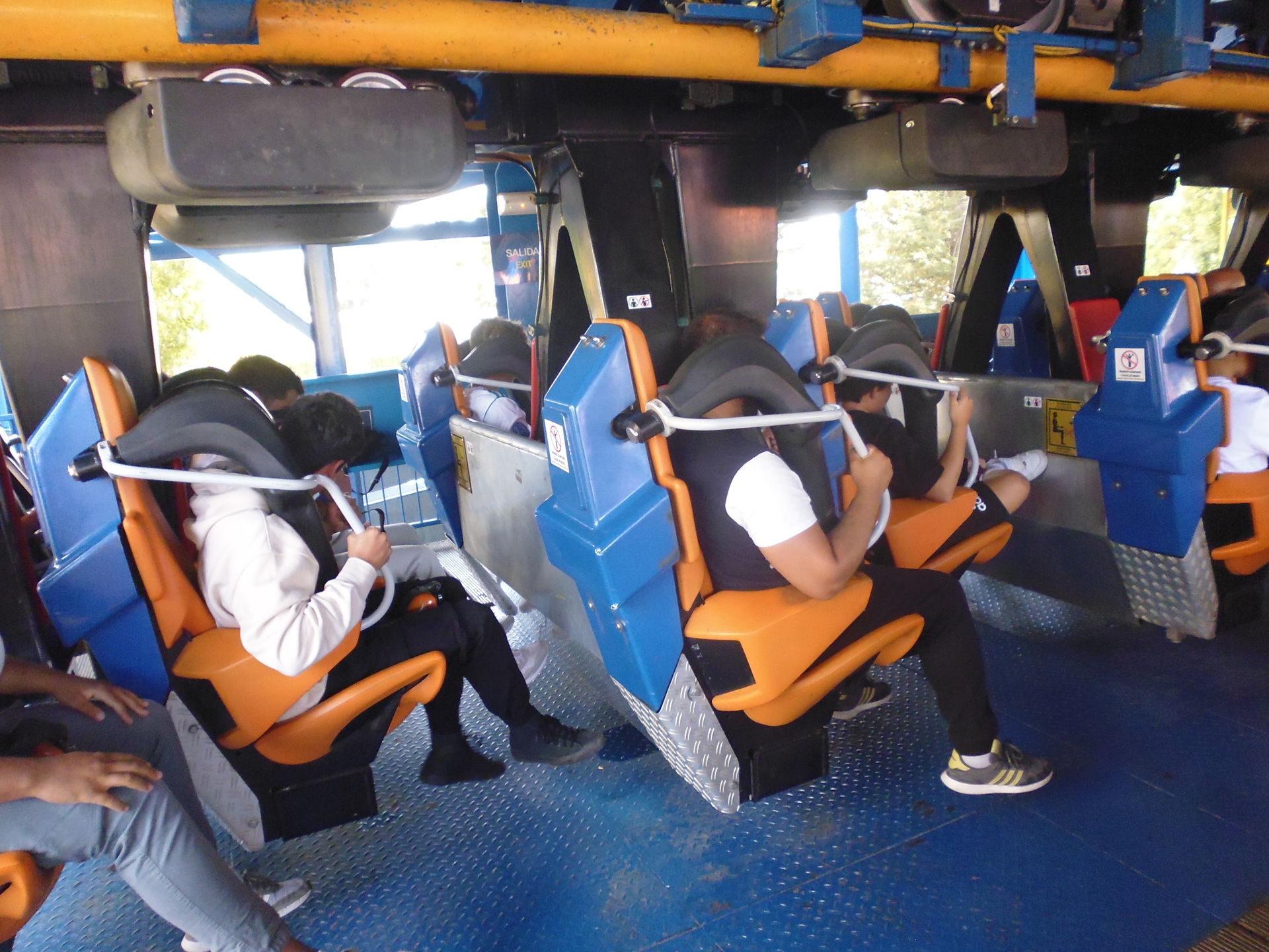 Technische Randnotiz: die Beckengurte sind auf diesem Exemplar zwischenzeitlich verschwunden. Ähnlich wie beim furchtbaren Premier-Zug in Six Flags New England reicht hier inzwischen der Schulterbügel, der mit einem Klickgurt vorn an die eigentliche Sitzschale getackert wird. Das hat die eh guten Abfertigungen im Vergleich zum Erstbesuch tatsächlich noch ein wenig beschleunigt.