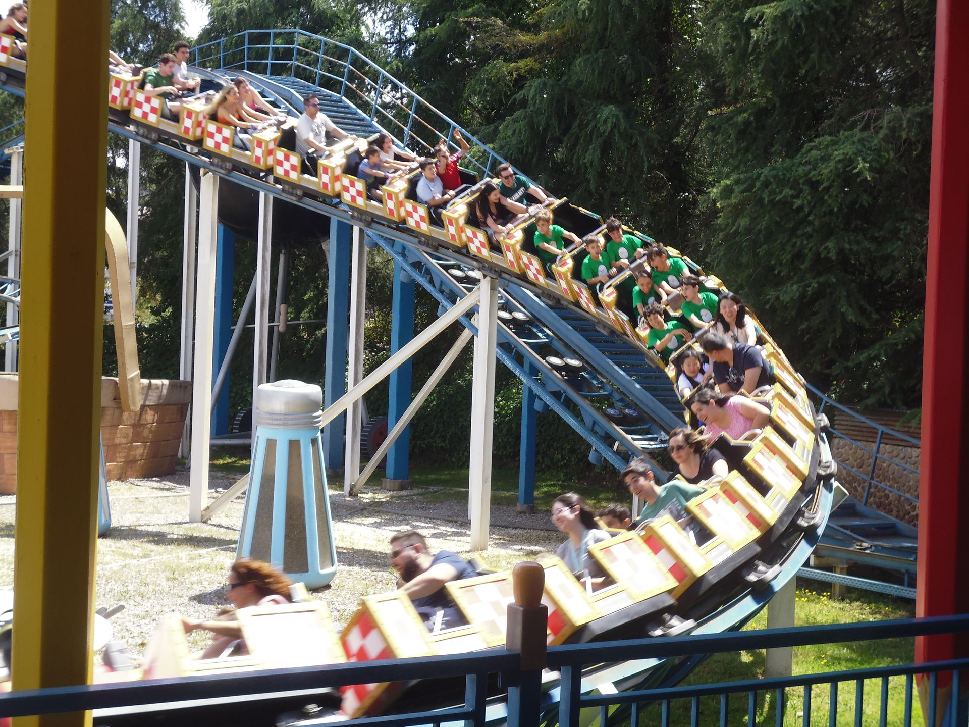 Airtime, einigen Headchoppern und hier sogar schöner Geländeeinbettung in einer eigenen kleinen Talmulde. Allerdings noch mit einer Zusatzhelix (laut RCDB ist dies ein Klon von Götterblitz im Familypark Neusiedlersee) und ohne die Höhenbeschränkung für Personen über 1.80 Meter in den hinteren Reihen der Viererwaggons. Schickes Teil.