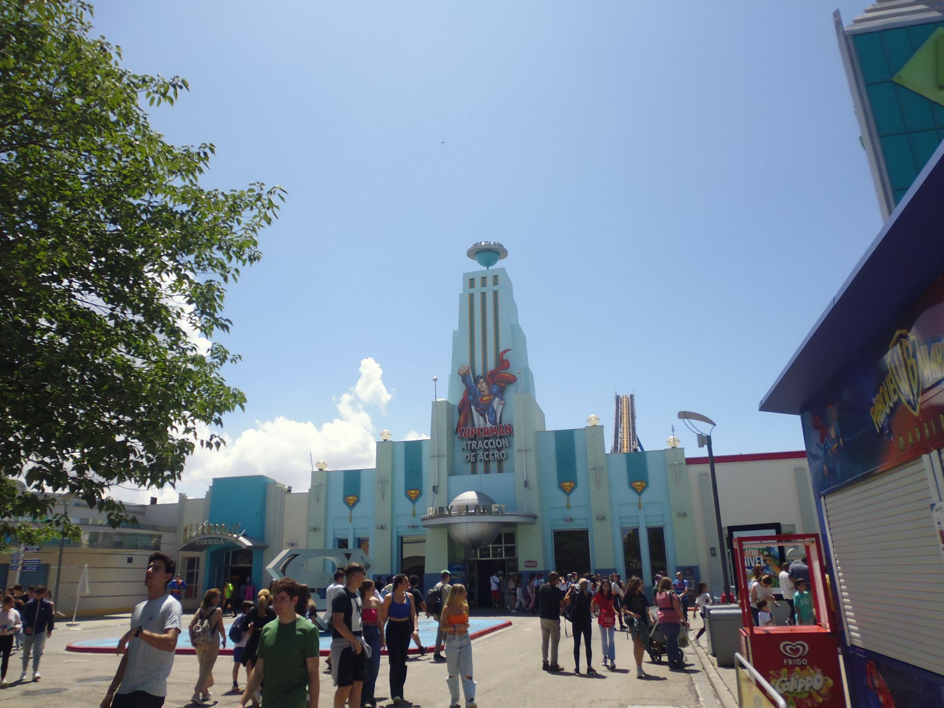 Leider käme man aus der ganzen Geschichte nur noch mit riesigem Geld- und Punkteverlust raus. Schlussendlich heisst das: nach Möglichkeit berückichtigt unser ganzer erweiterter Familienkreis bei Reiseplanungen seit vielen Jahren stets Destinationen und Hotels des Clubs, zur reinen Schadens- und Verlustbegrenzung sozusagen. Da der Club seinen Sitz in Mexiko hat, befinden sich diese Optionen demnach vorrangig in spanischsprachigen Teilen der Welt. Was uns nun zu Madrid bringt. Im Hitzesommer 2003, am Sonntag nach der Zürcher Street Parade, sind wir also im Clubrahmen für eine Woche in die wie leergefegte spanische Hauptstadt gereist. Meiner Erinnerung nach war dies auch unser erster Flug mit der damals noch blutjungen Swiss, nur spärlich besetzt mit einigen ganz verrückten hitzerestistenten Touristen, von Madrid aus Weiterreisenden und noch verstrahlten Ravern - ein ganz spezielles Erlebnis, da ich bis dahin nur komplett ausgebuchte Flüge gekannt habe. Selbstverständlich bestand ich vor Ort dann darauf, einer ebenfalls noch recht taufrischen Attraktion einen Besuch abzustatten: dem Parque Warner, damals noch als Movie World Madrid bekannt. Ich habe nur allerbeste Erinnerungen daran. Und tatsächlich war dies der Parkbesuch, der mich vor bald 20 Jahren hier ins Forum brachte, als ich nach unserer Reise POVs der Madrider Bahnen gesucht und bei