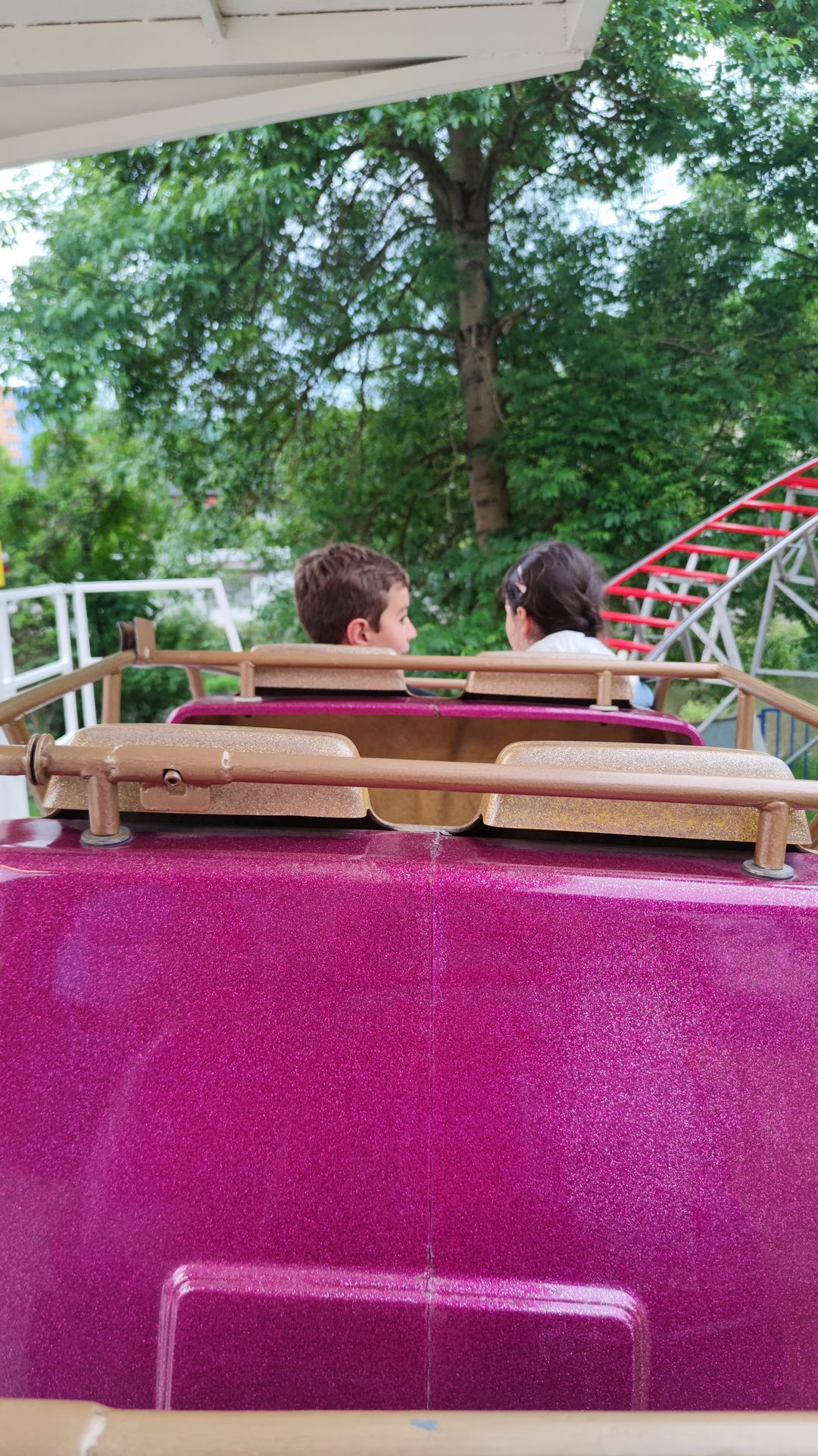 Dies ist tatsächlich ein "Fahr"foto. Musik lief, Bügel wurden geschlossen, ein klassisches "Attention" ertönte a la jetzt geht's los, Mitarbeiter lief in den sicheren Bereich und zack: Musik aus, Rekommandeur schaute gespannt auf sein Smartphone und die Fahrgäste schauten sichtlich irritiert, weil dies einfach fast 2 Minuten andauerte.